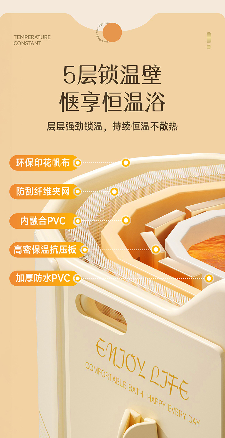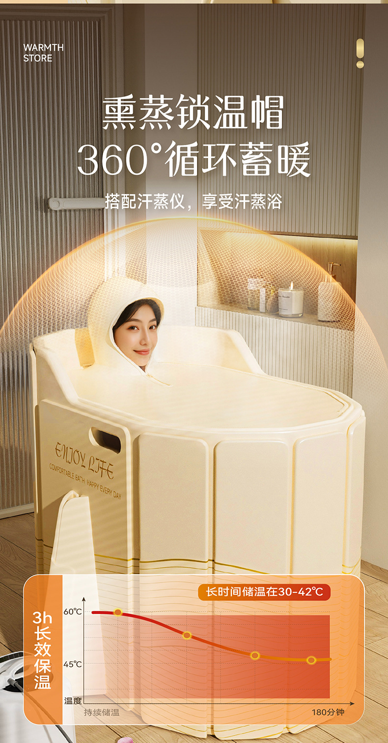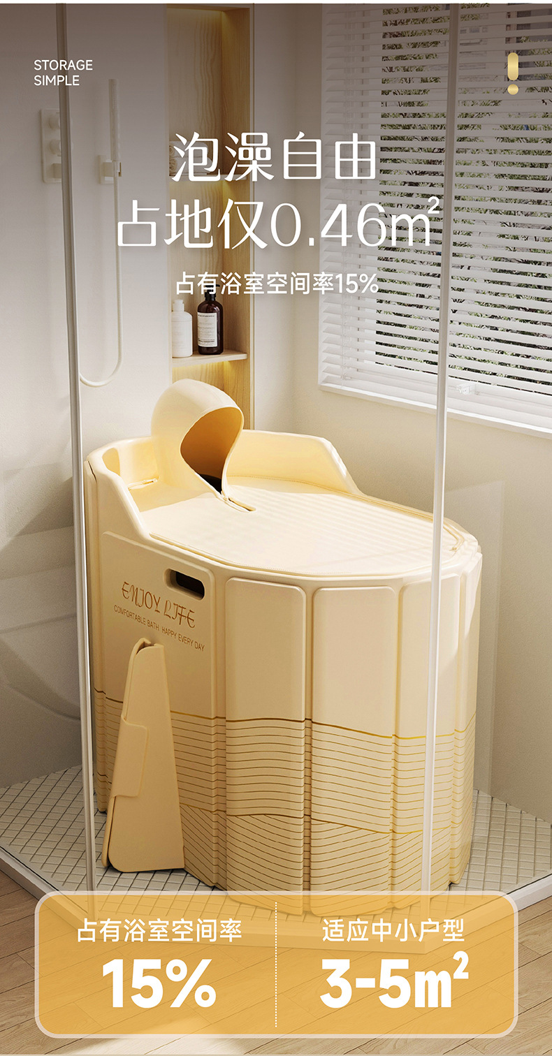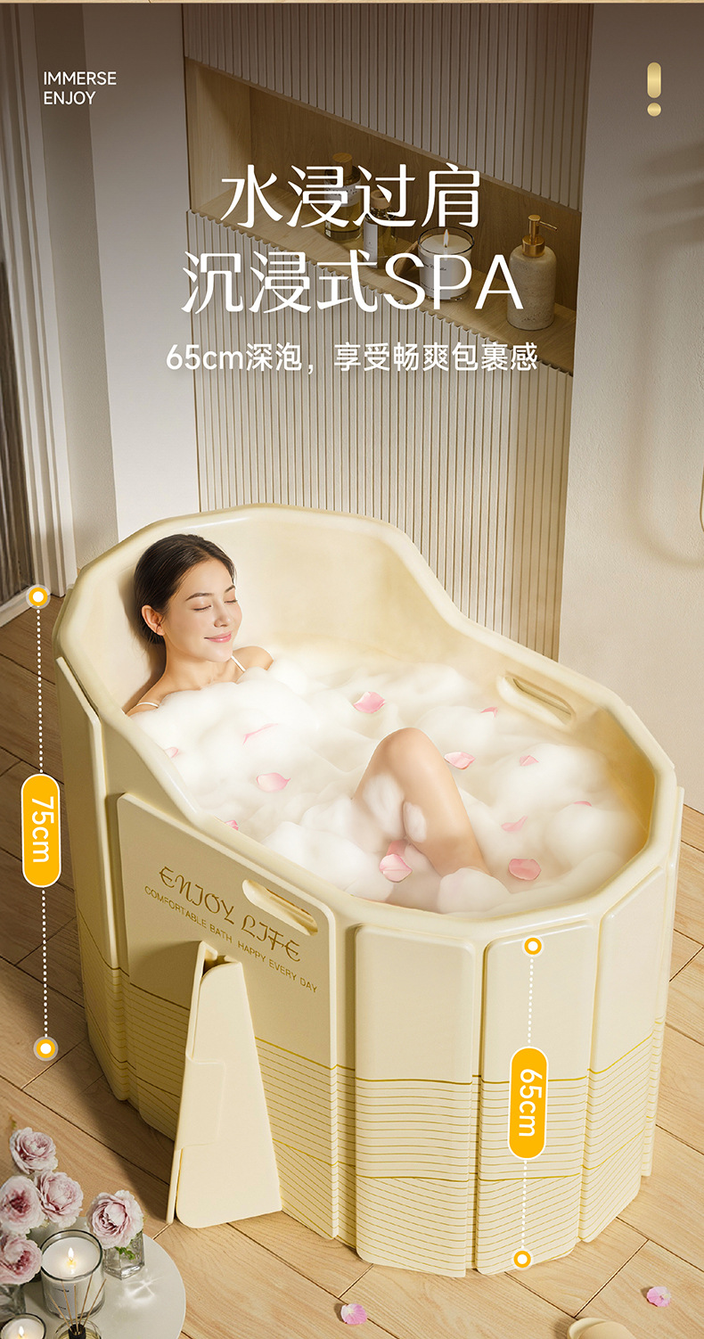 圈奇折叠泡澡桶加高沐浴桶折叠大人免安装新款浴缸家用成人高深桶