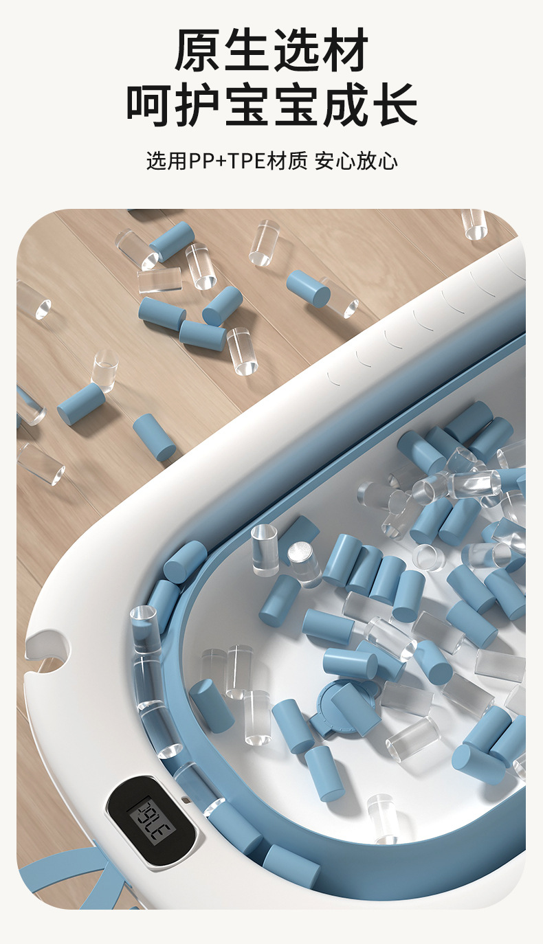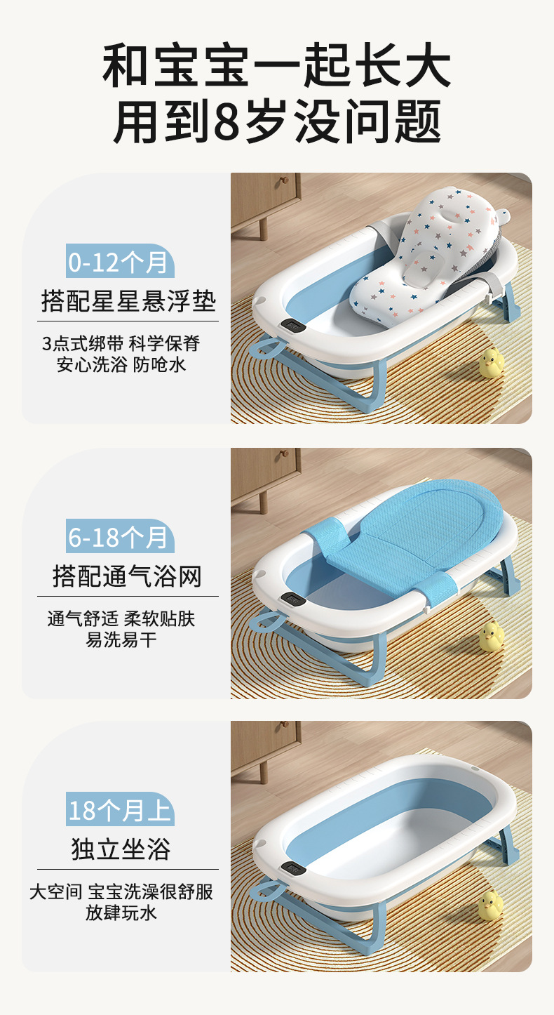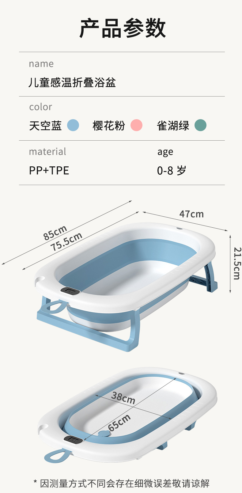 婴儿感温浴盆家用折叠可坐躺 加大加厚儿童洗澡盆 宝宝泡澡桶