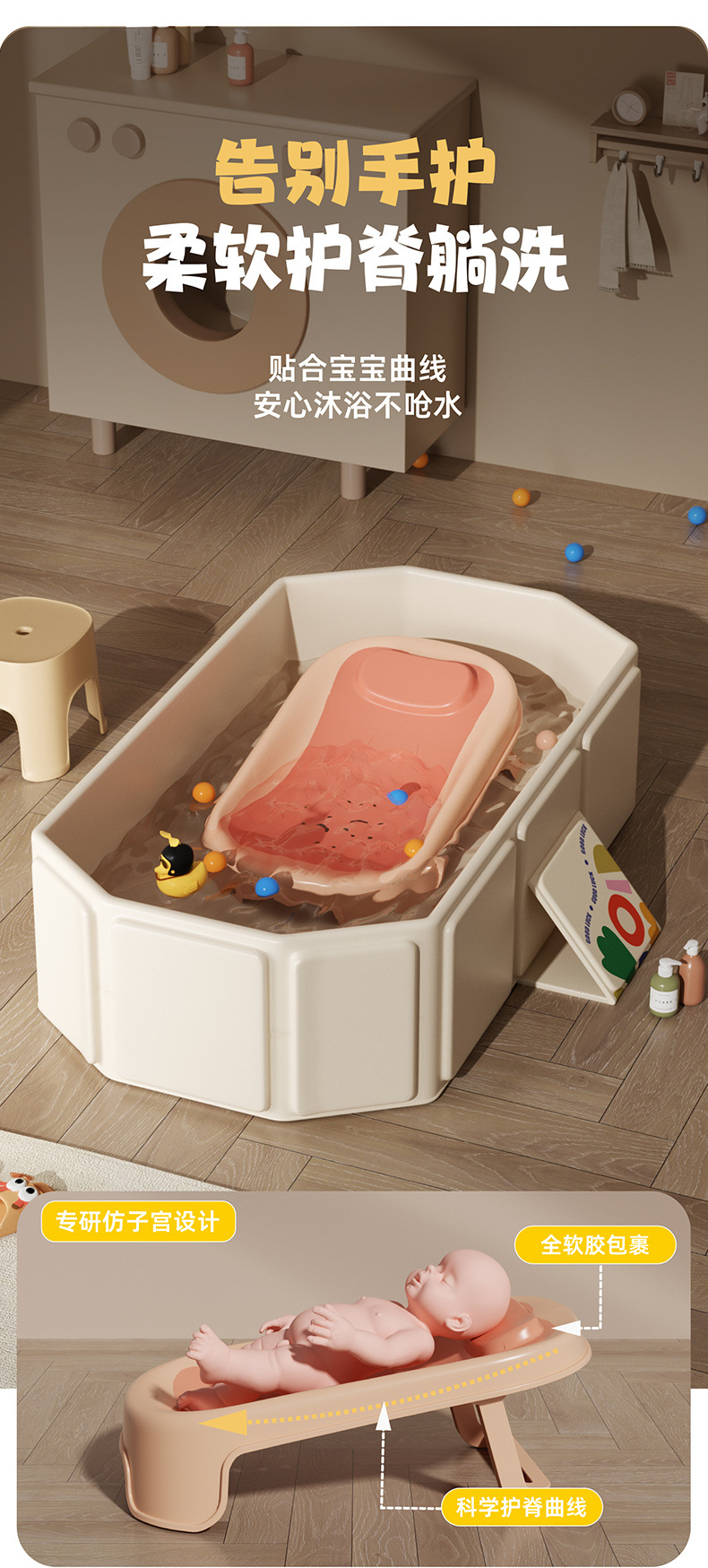 圈奇婴儿浴盆大号0-5岁儿童折叠浴桶宝宝可坐躺新生儿一体洗澡盆