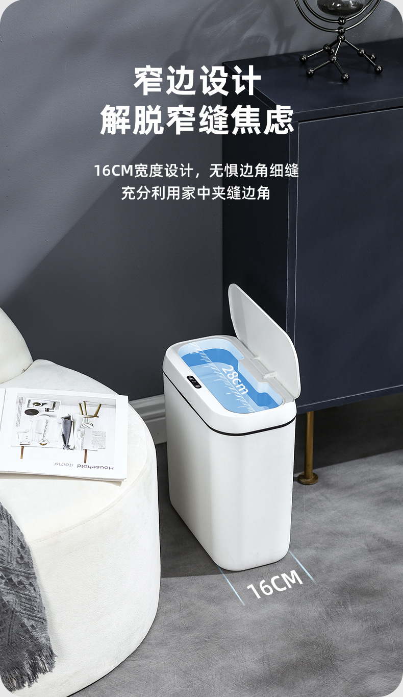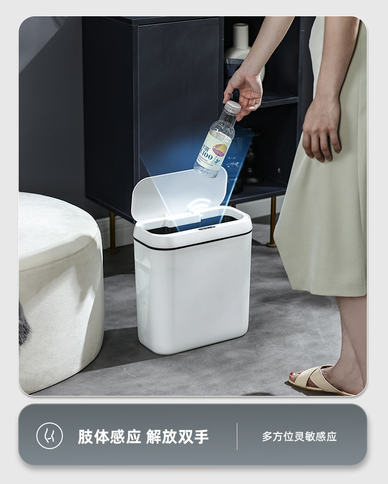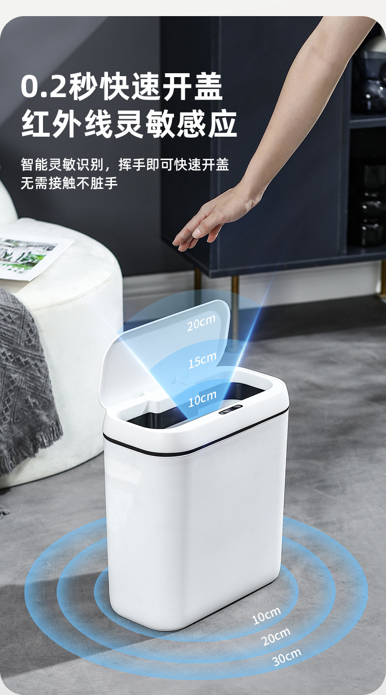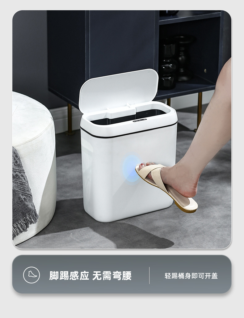 简约智能感应垃圾桶家用卧室静音收纳桶卫生间防臭纸桶客厅踢踢桶