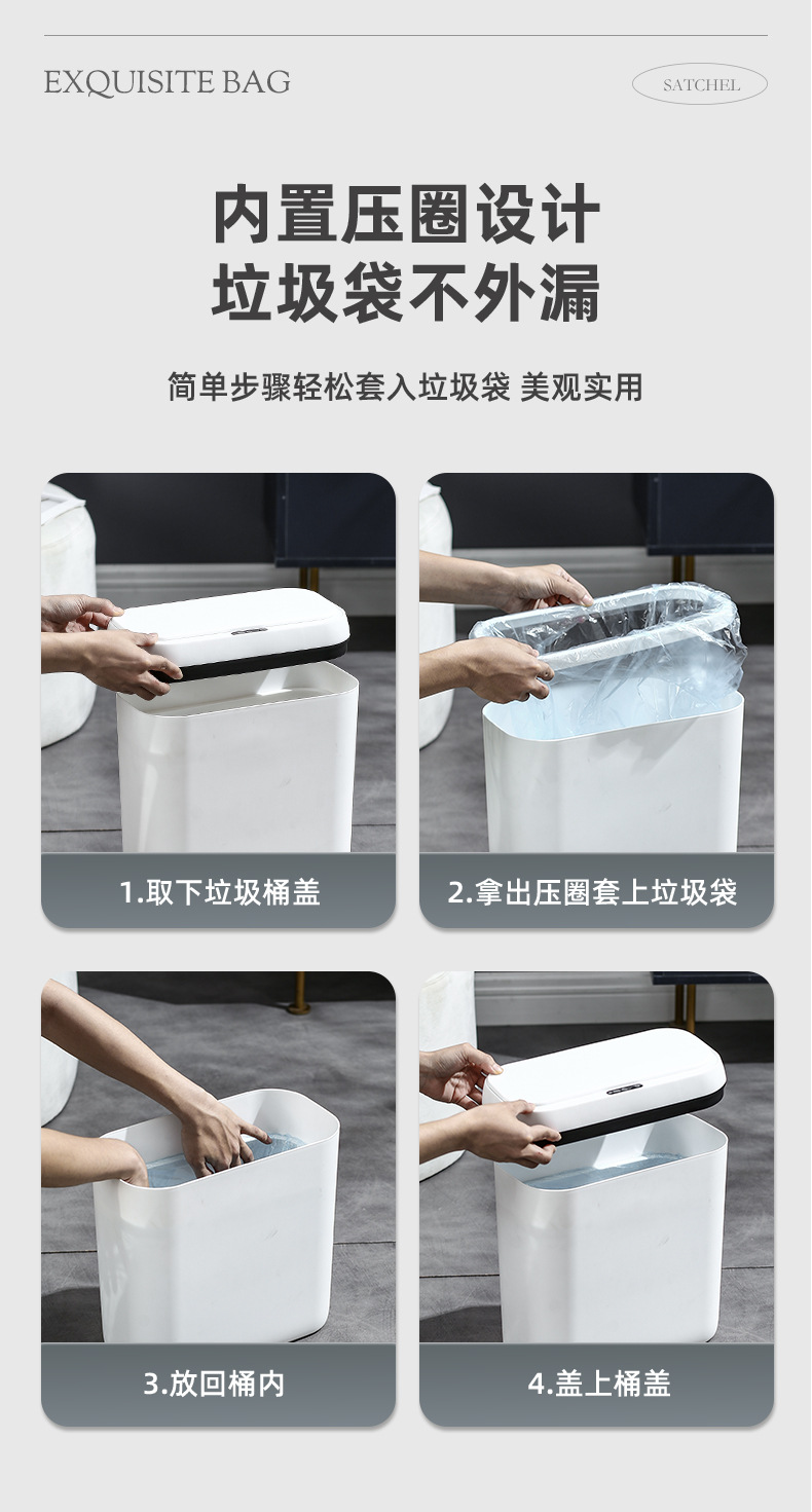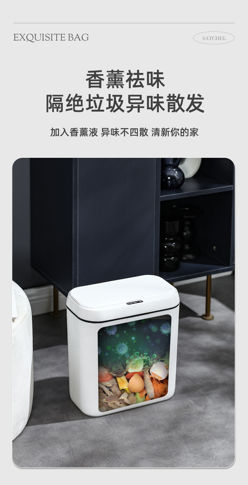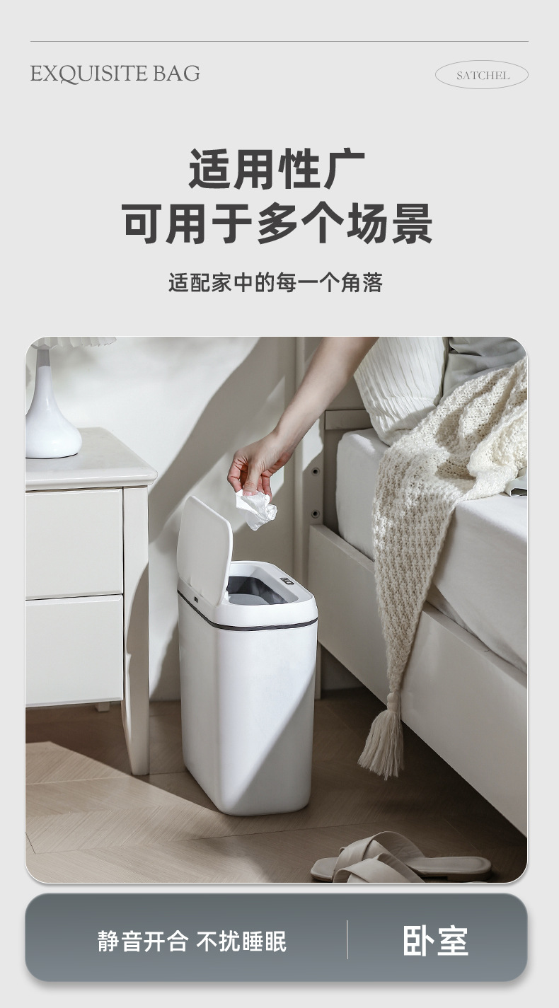 简约智能感应垃圾桶家用卧室静音收纳桶卫生间防臭纸桶客厅踢踢桶