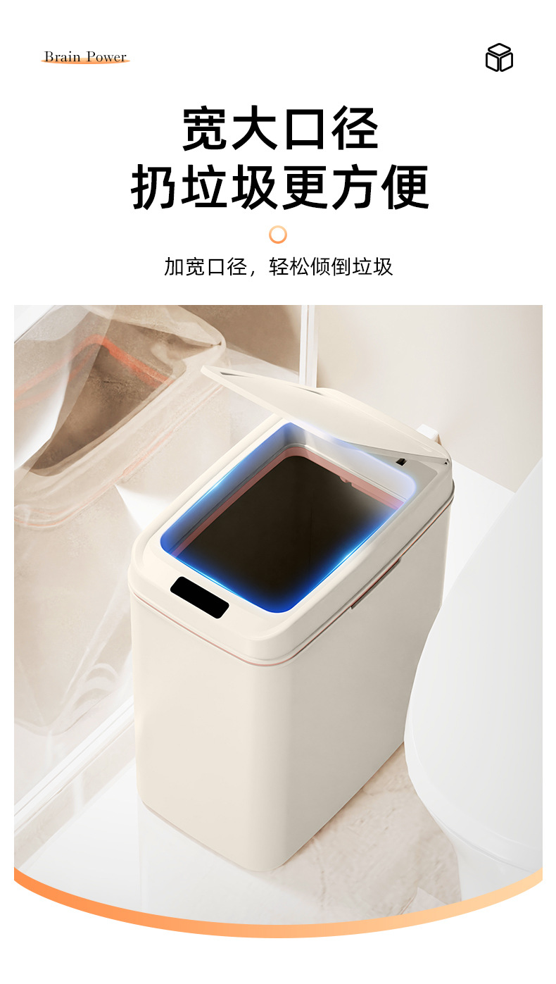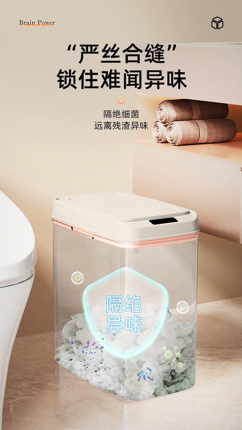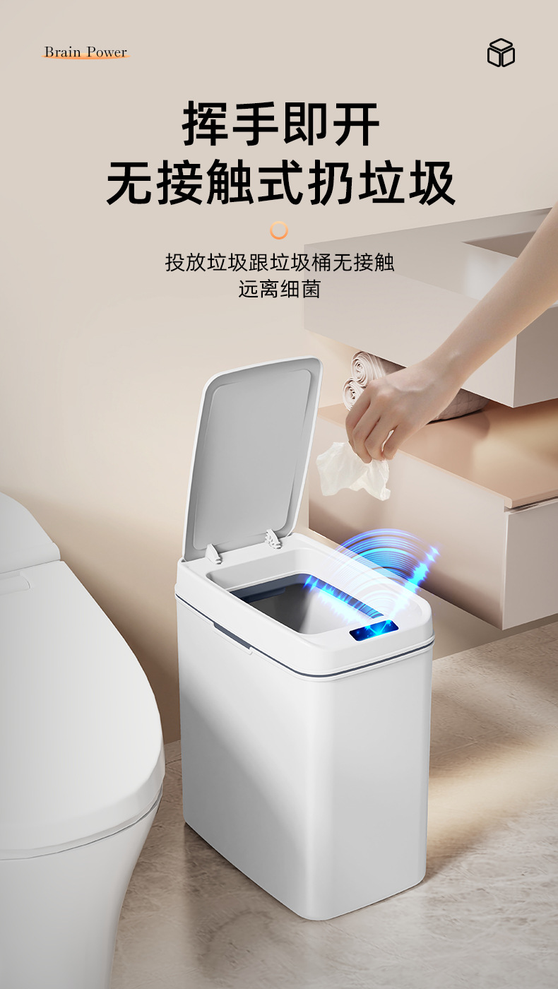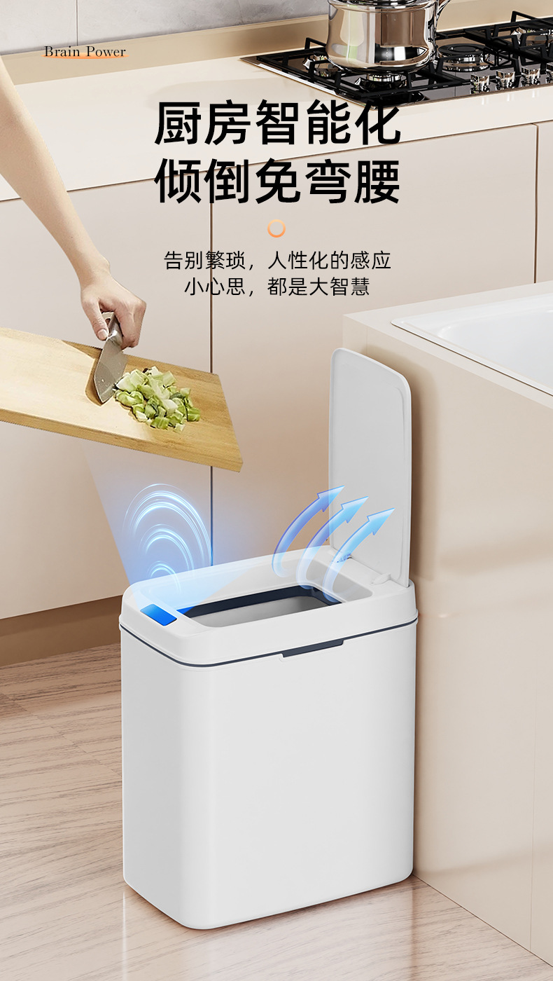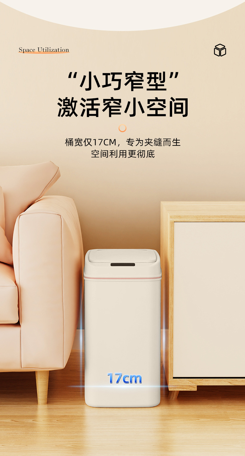 智能垃圾桶窄缝家用免触碰自动开盖垃圾桶厕所卫生间扁形垃圾桶