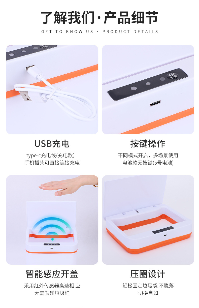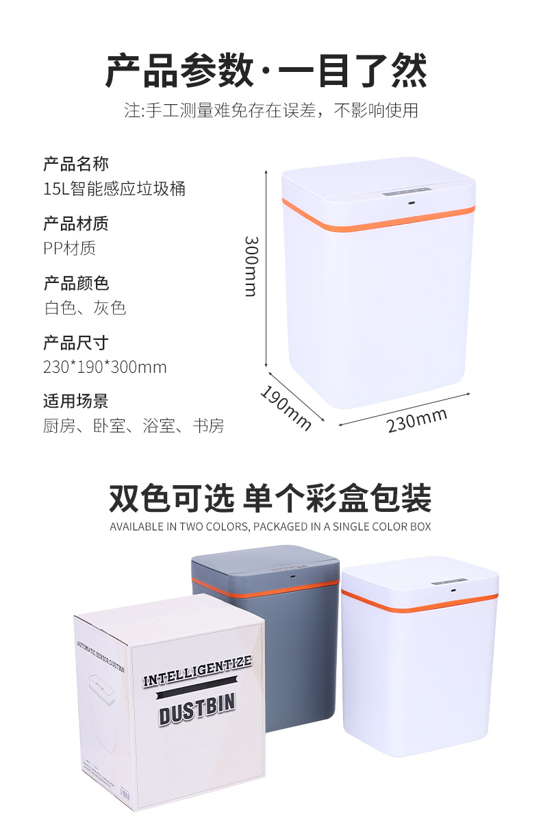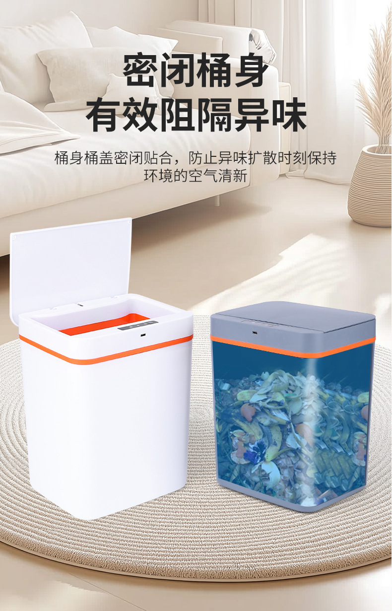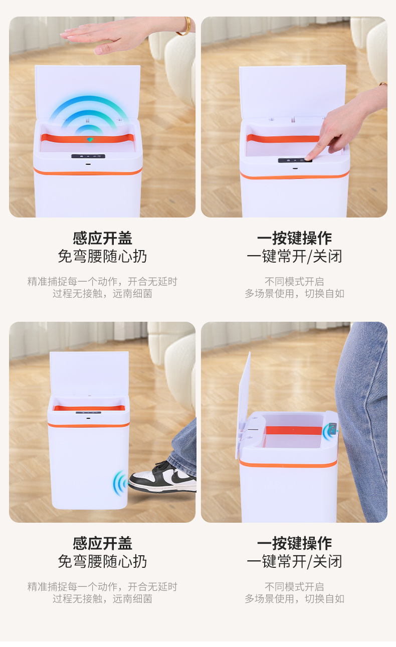 智能感应垃圾桶家用厨房卫生间分类垃圾筒便携方形塑料垃圾桶批发