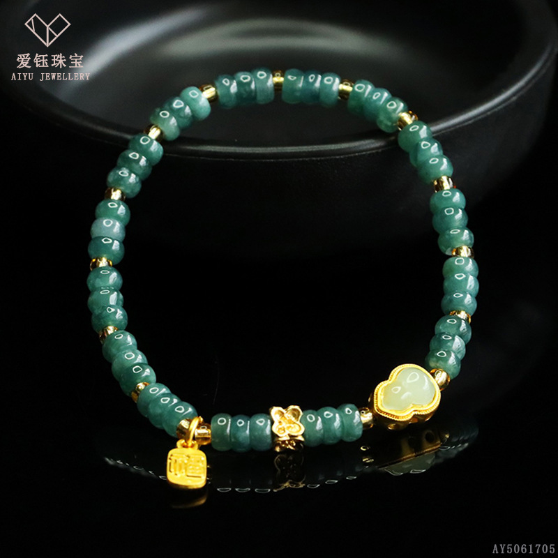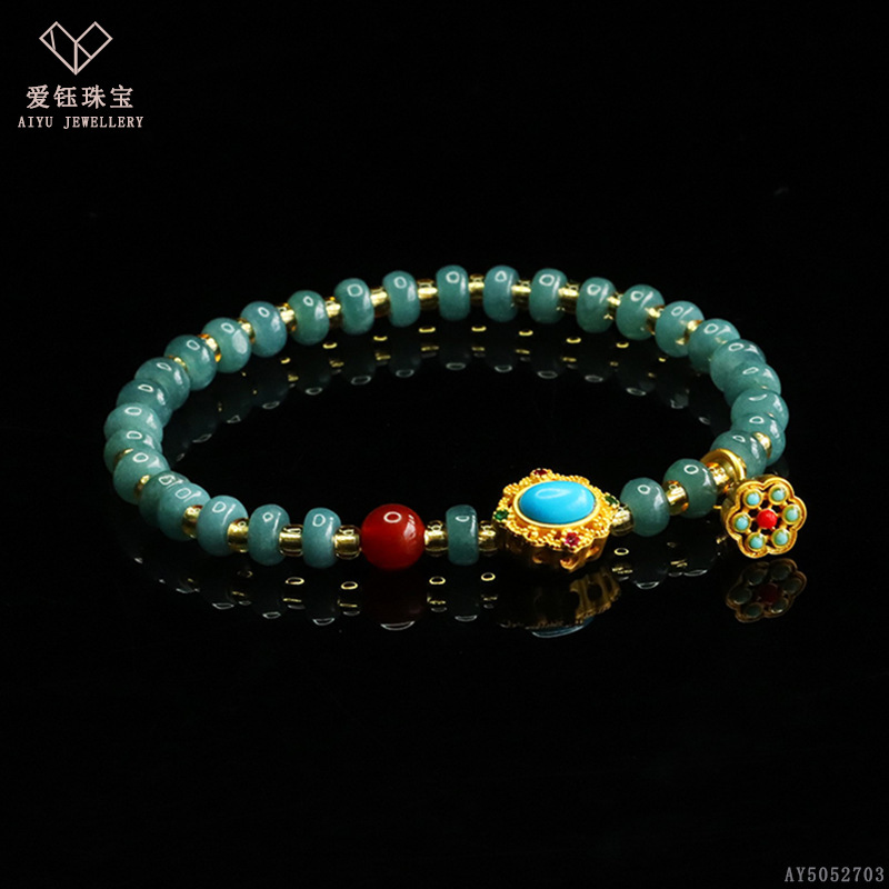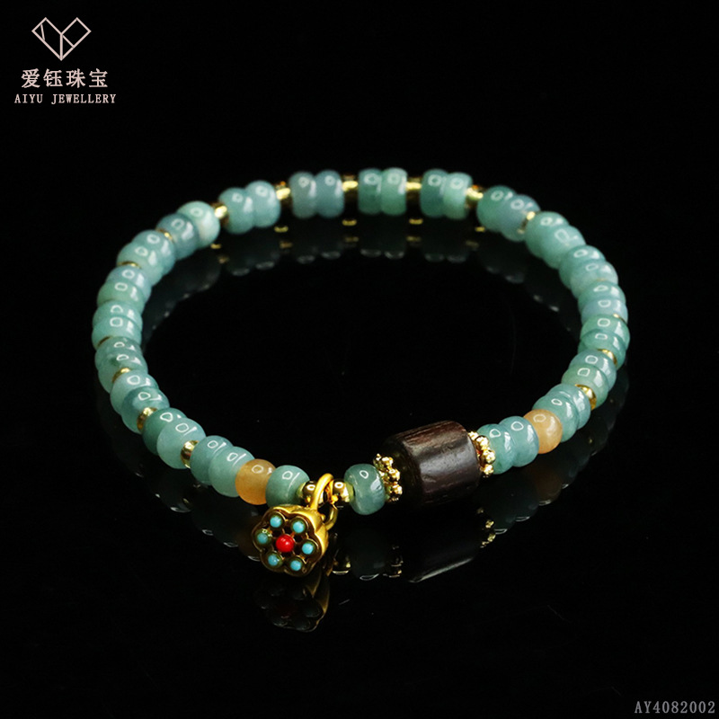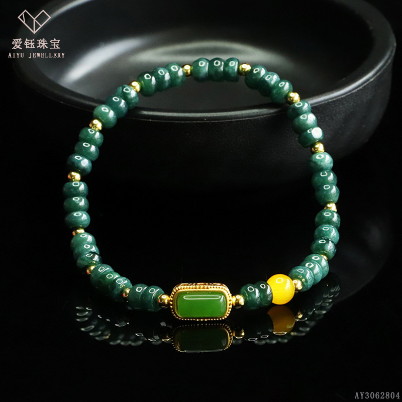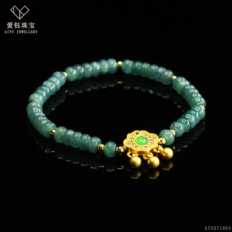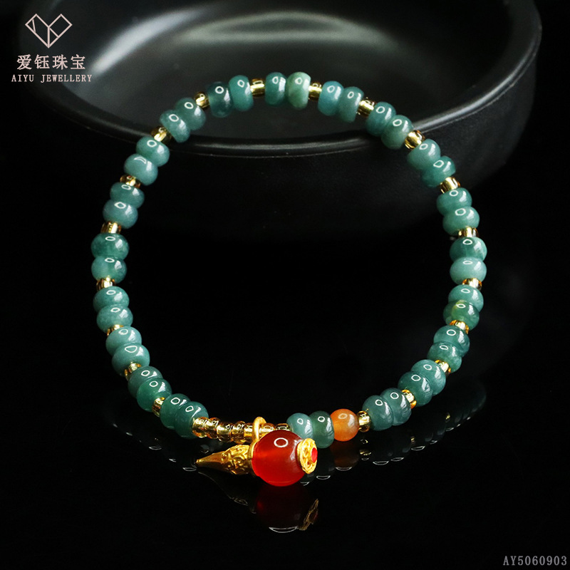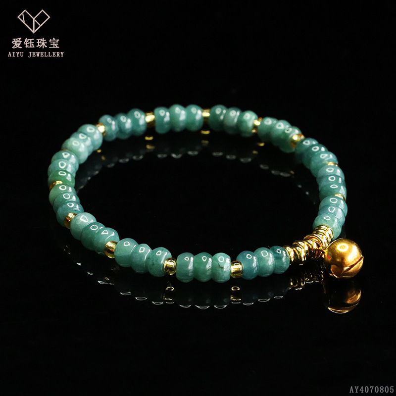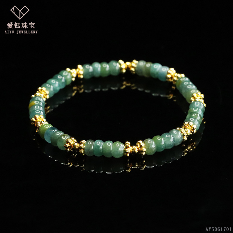 爱钰 天然A货翡翠算盘珠手串蓝水玉石DIY设计款手链电商直播批发
