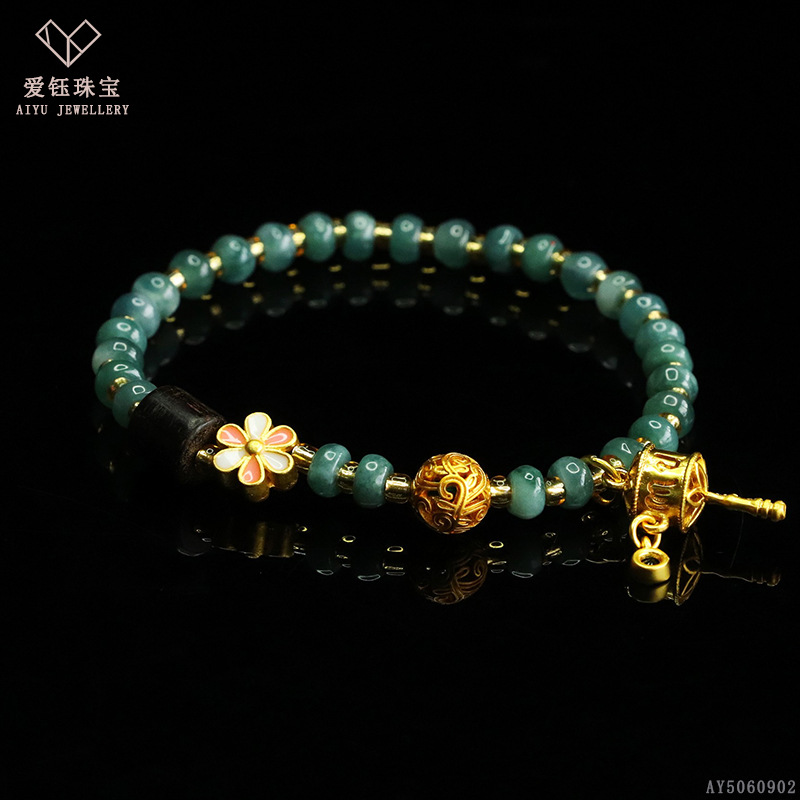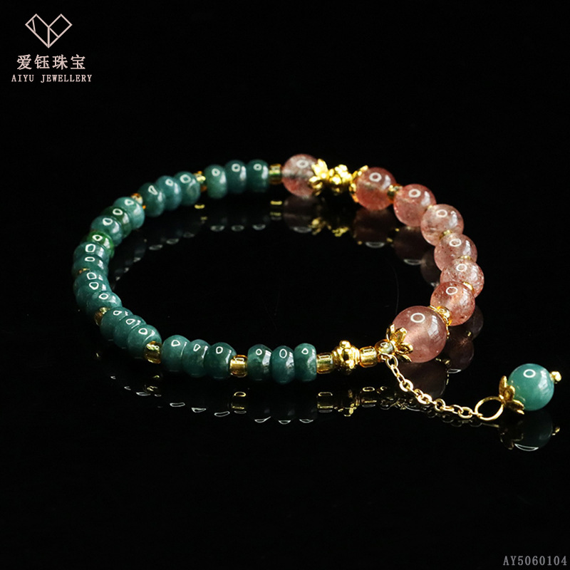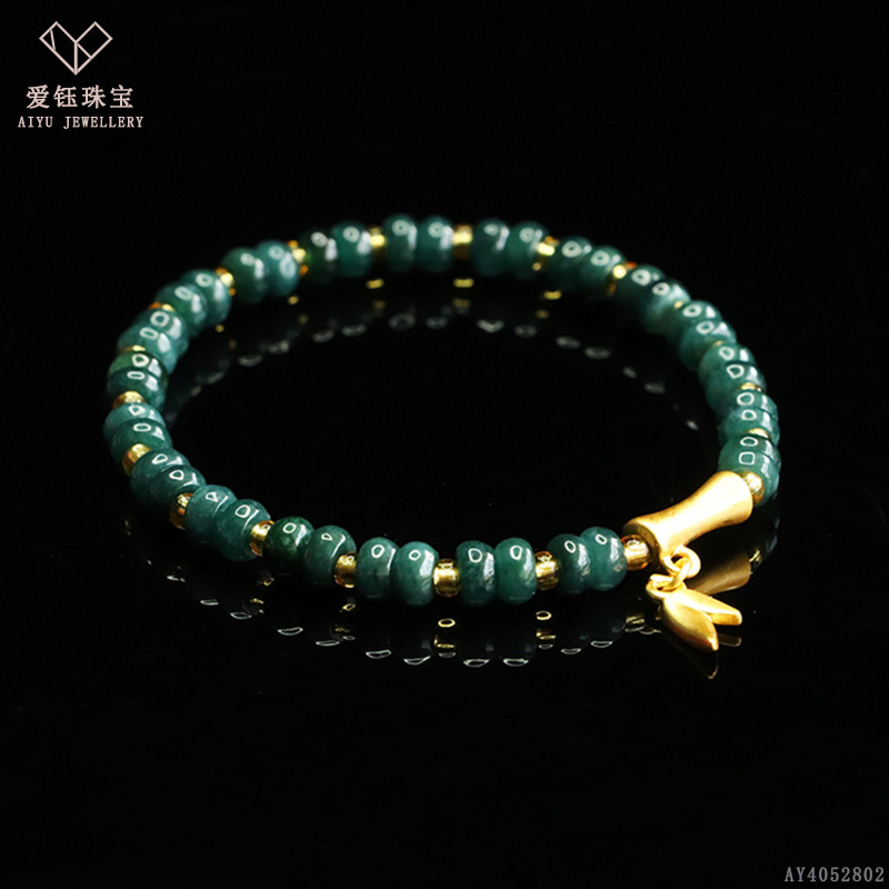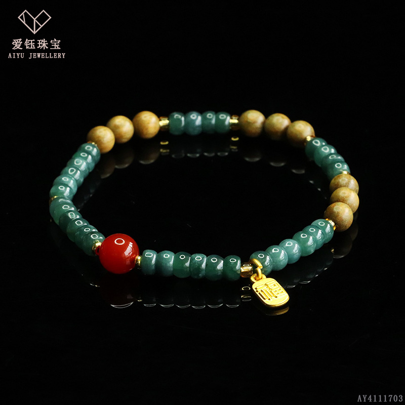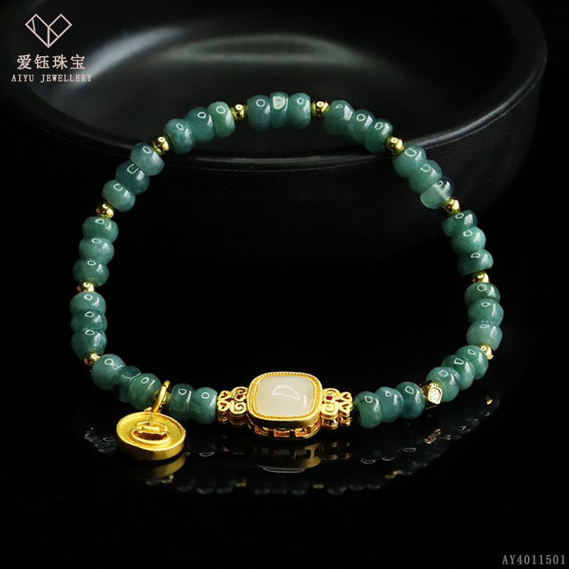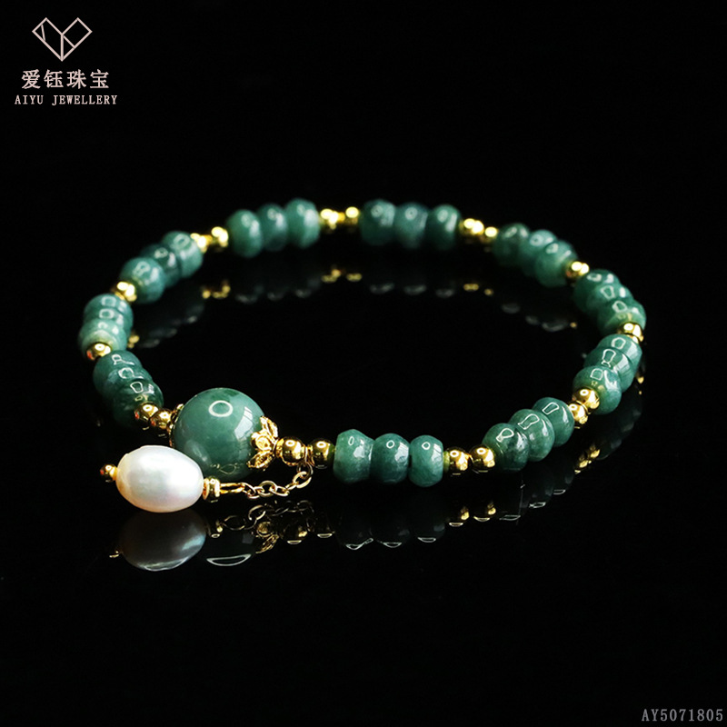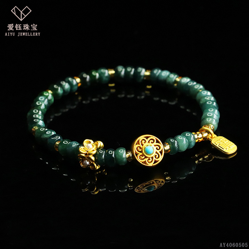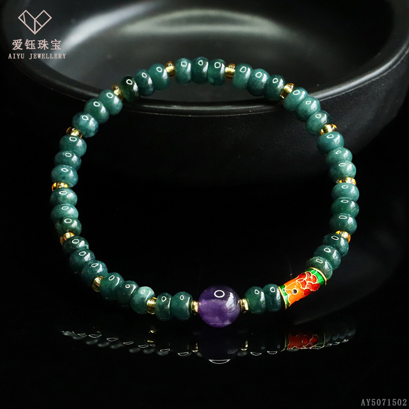 爱钰 天然A货翡翠算盘珠手串蓝水玉石DIY设计款手链电商直播批发