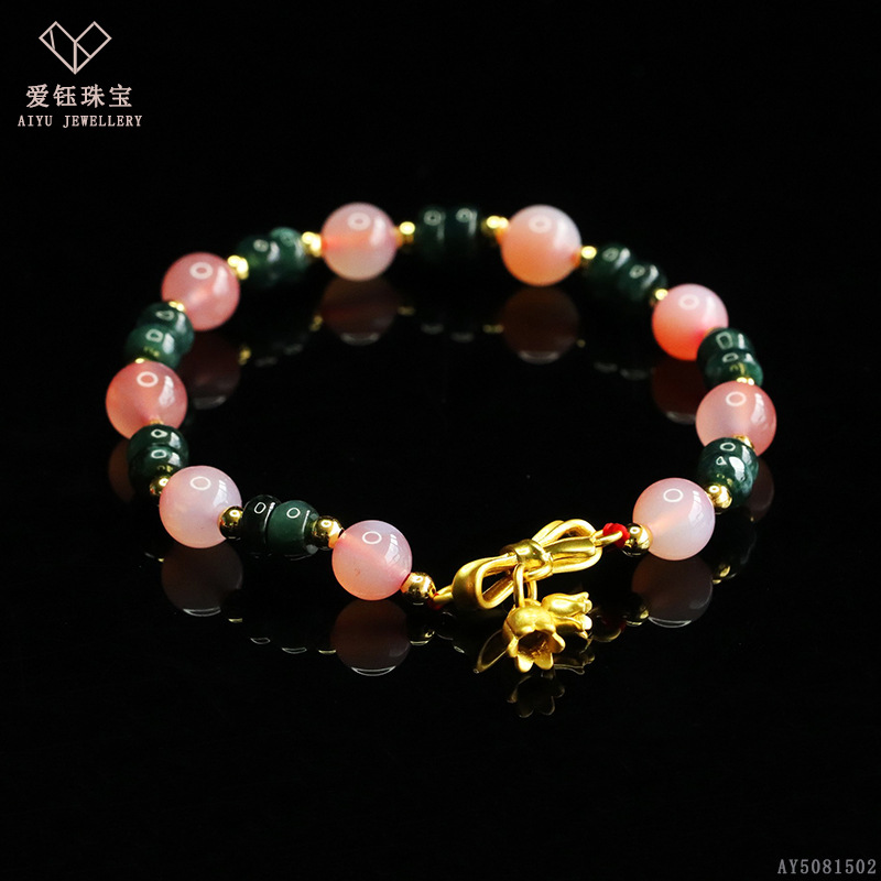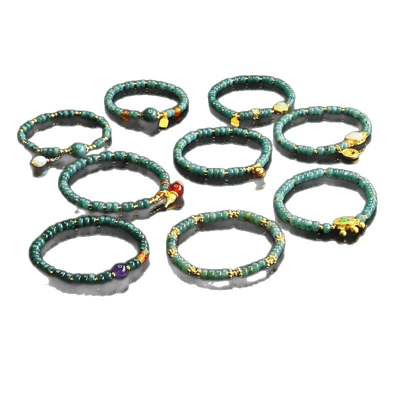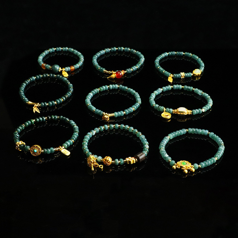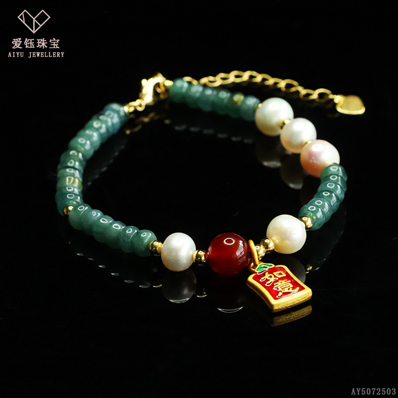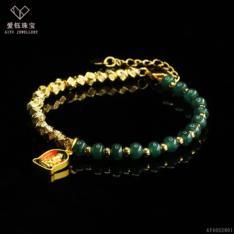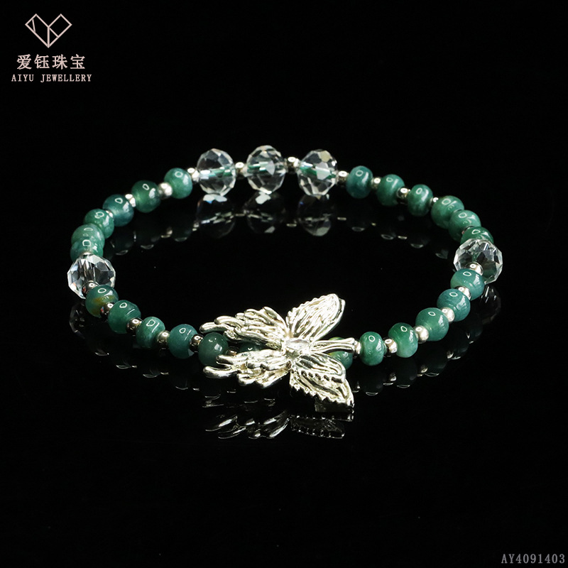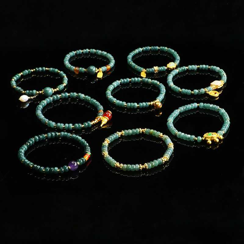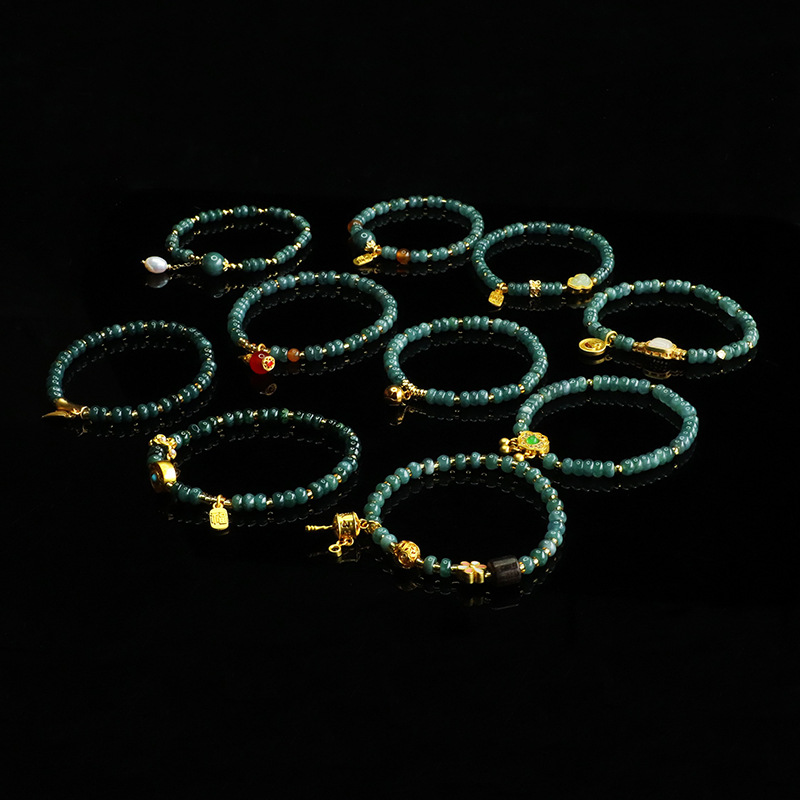 爱钰 天然A货翡翠算盘珠手串蓝水玉石DIY设计款手链电商直播批发