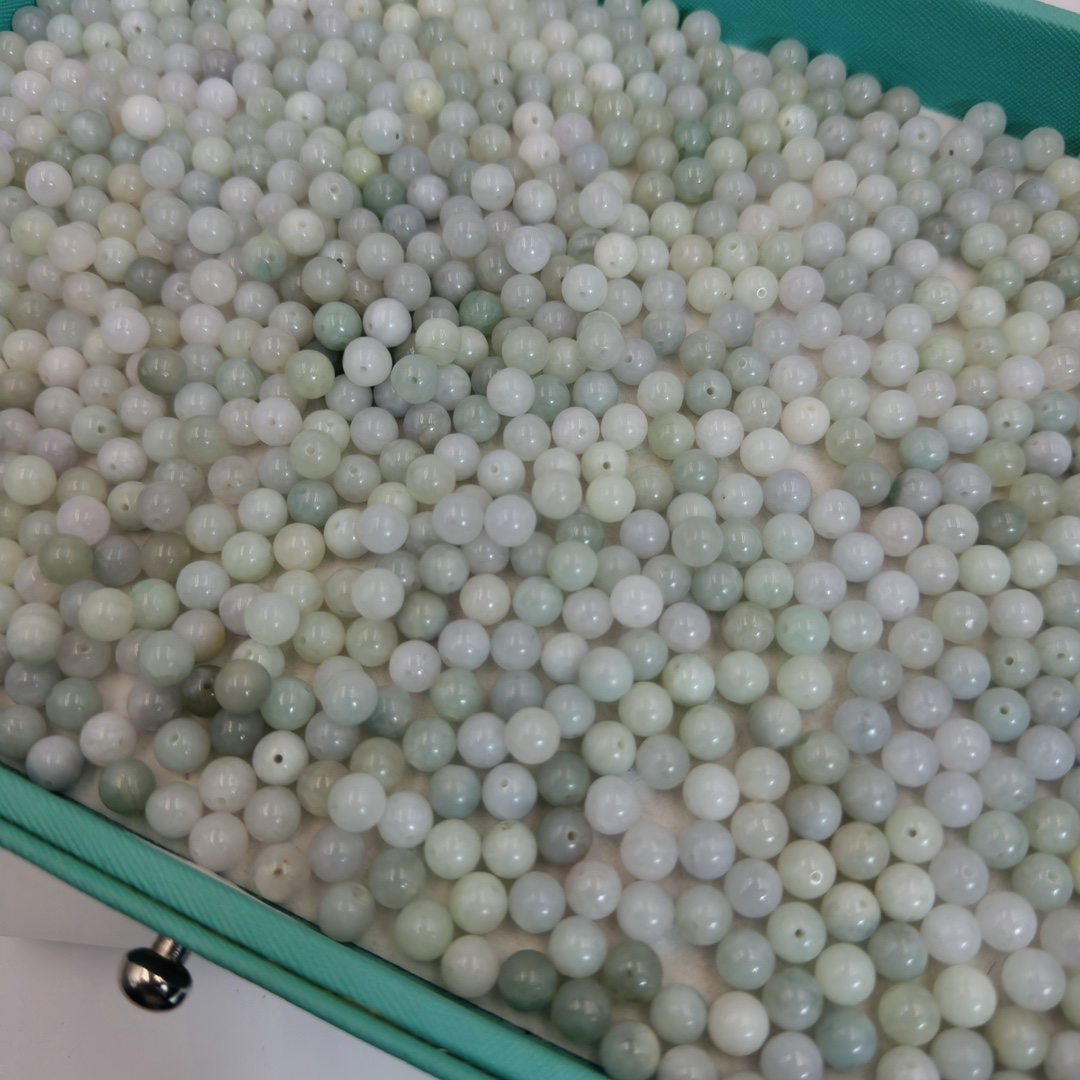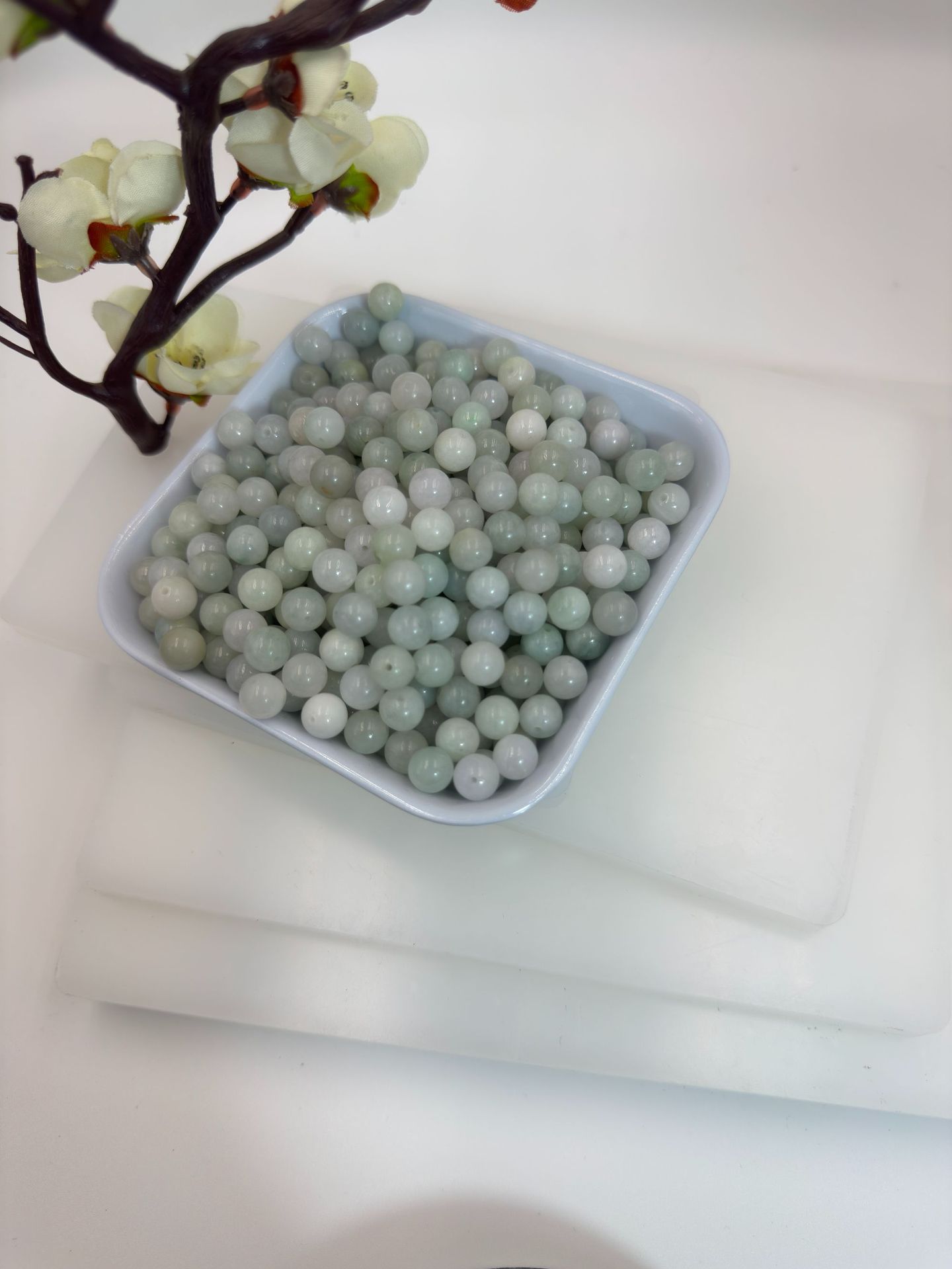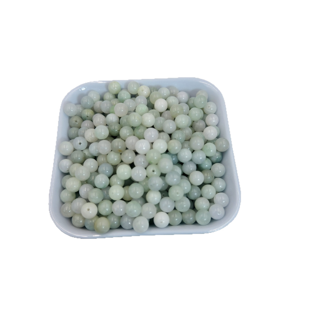翡翠绿散珠冰糯种玉圆珠缅甸a8mm手工手串饰品手链项链珠子配件