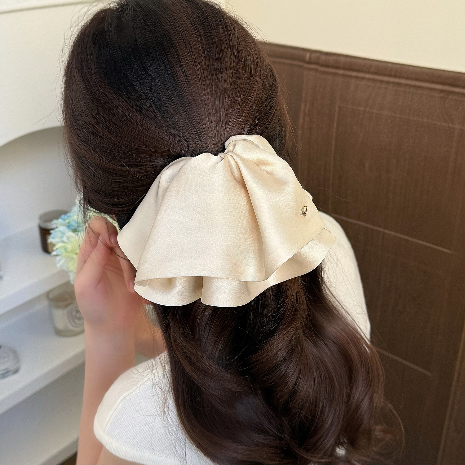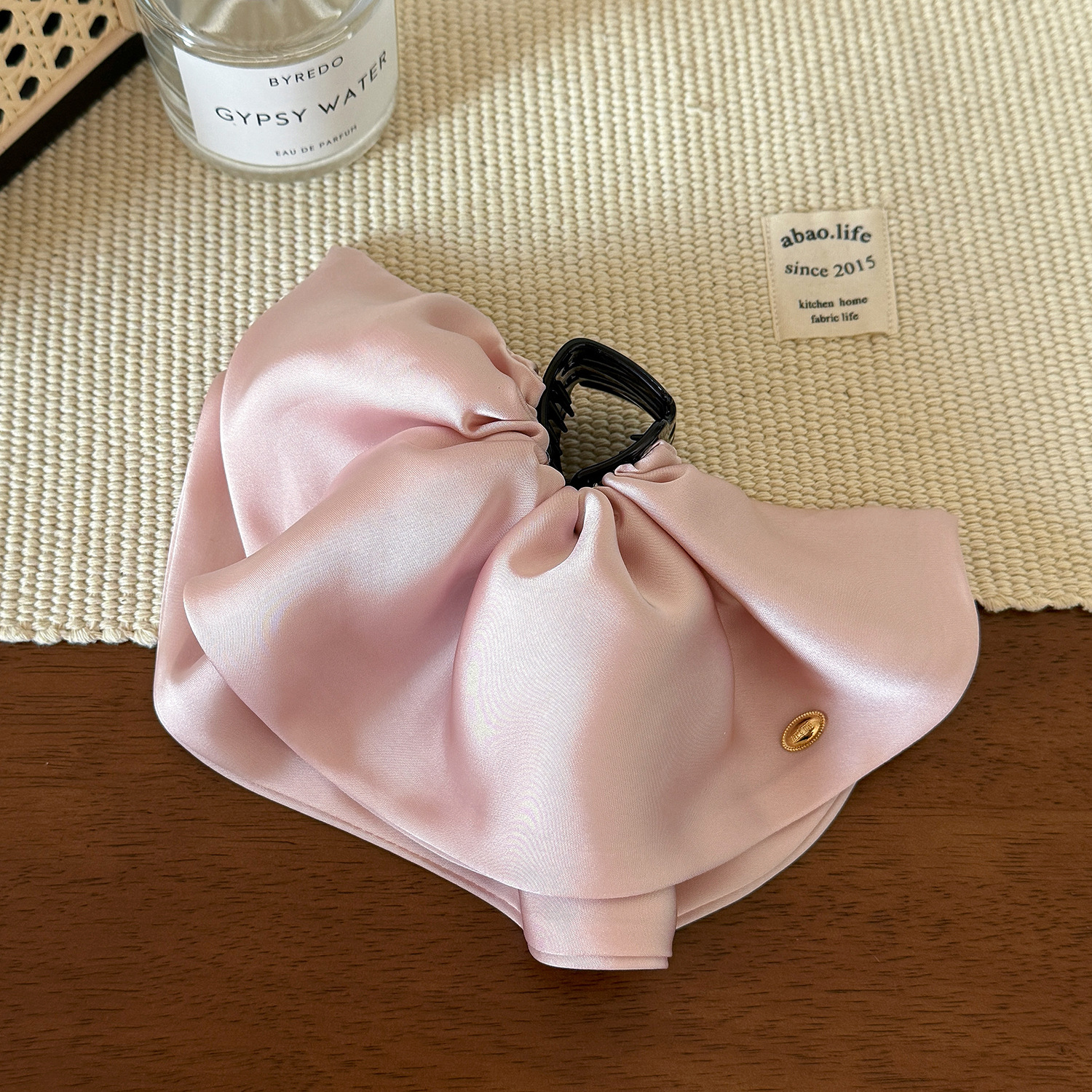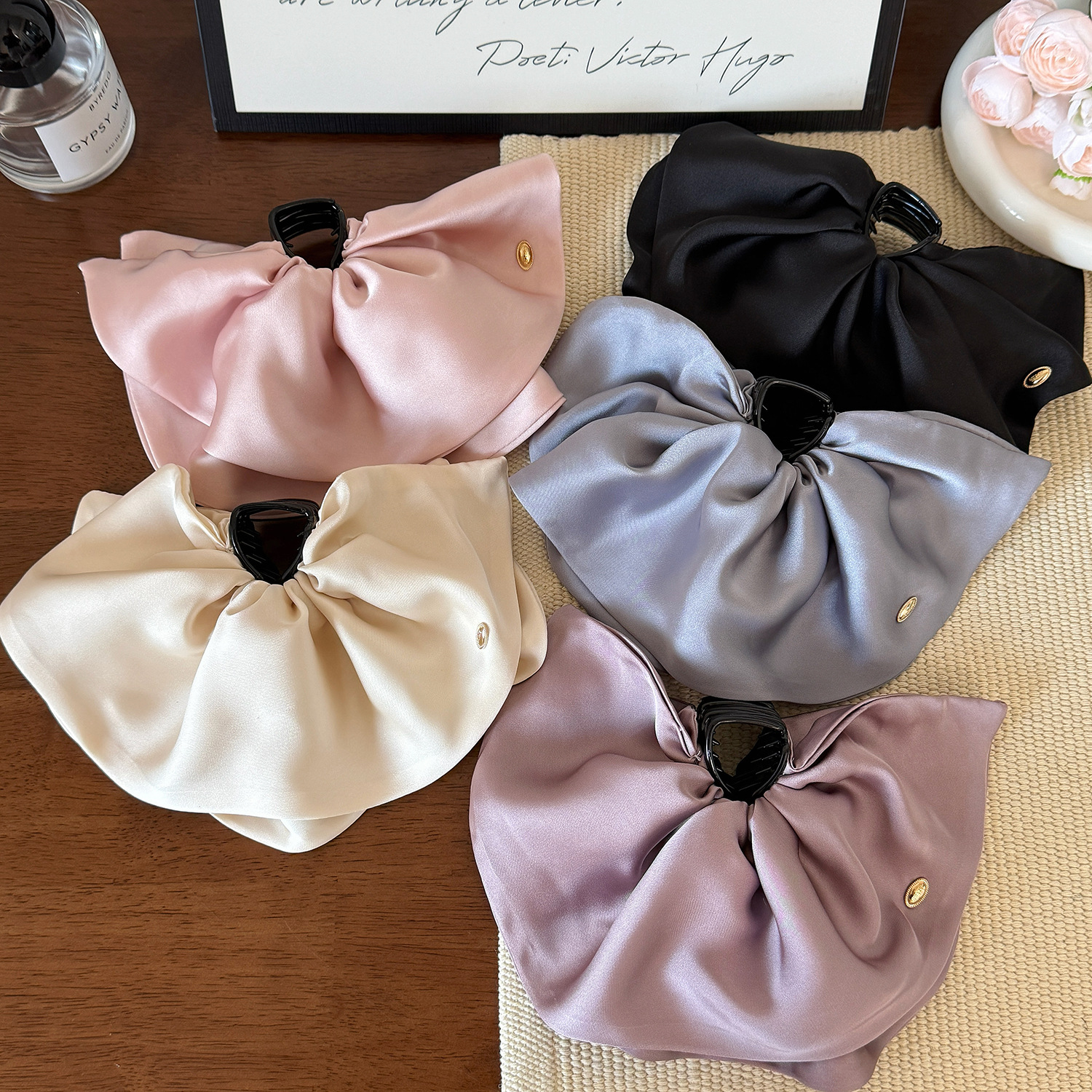 纯色缎面蝴蝶结后脑勺发夹超仙轻奢洋气时尚马尾夹甜美可爱抓夹女