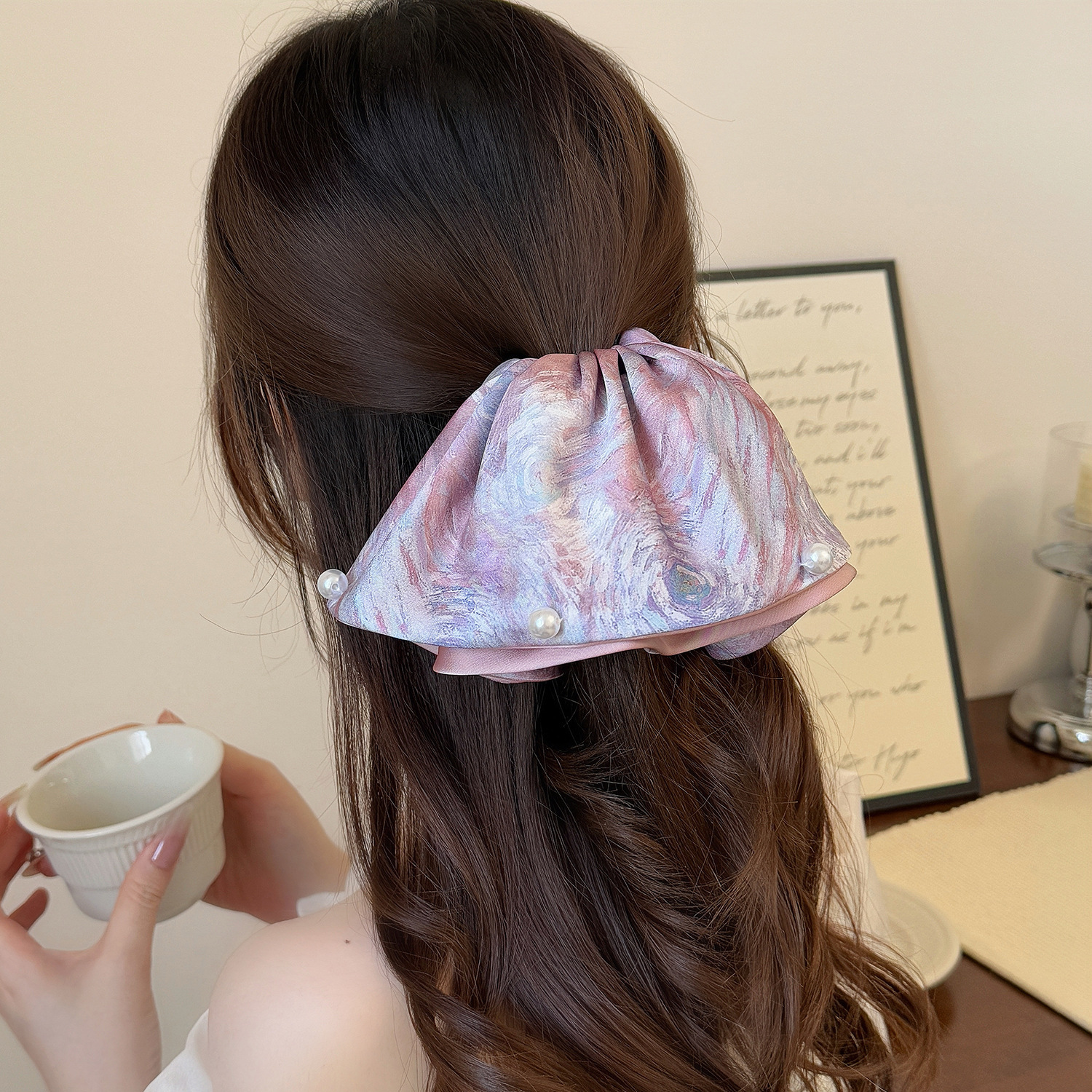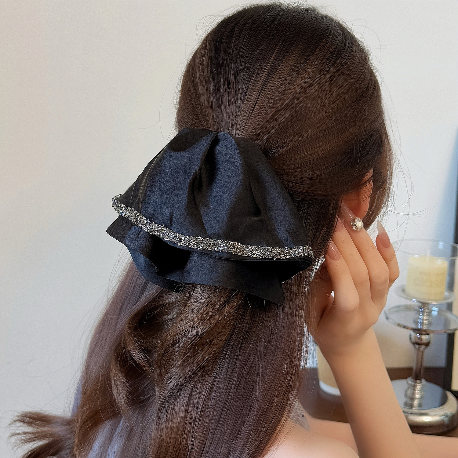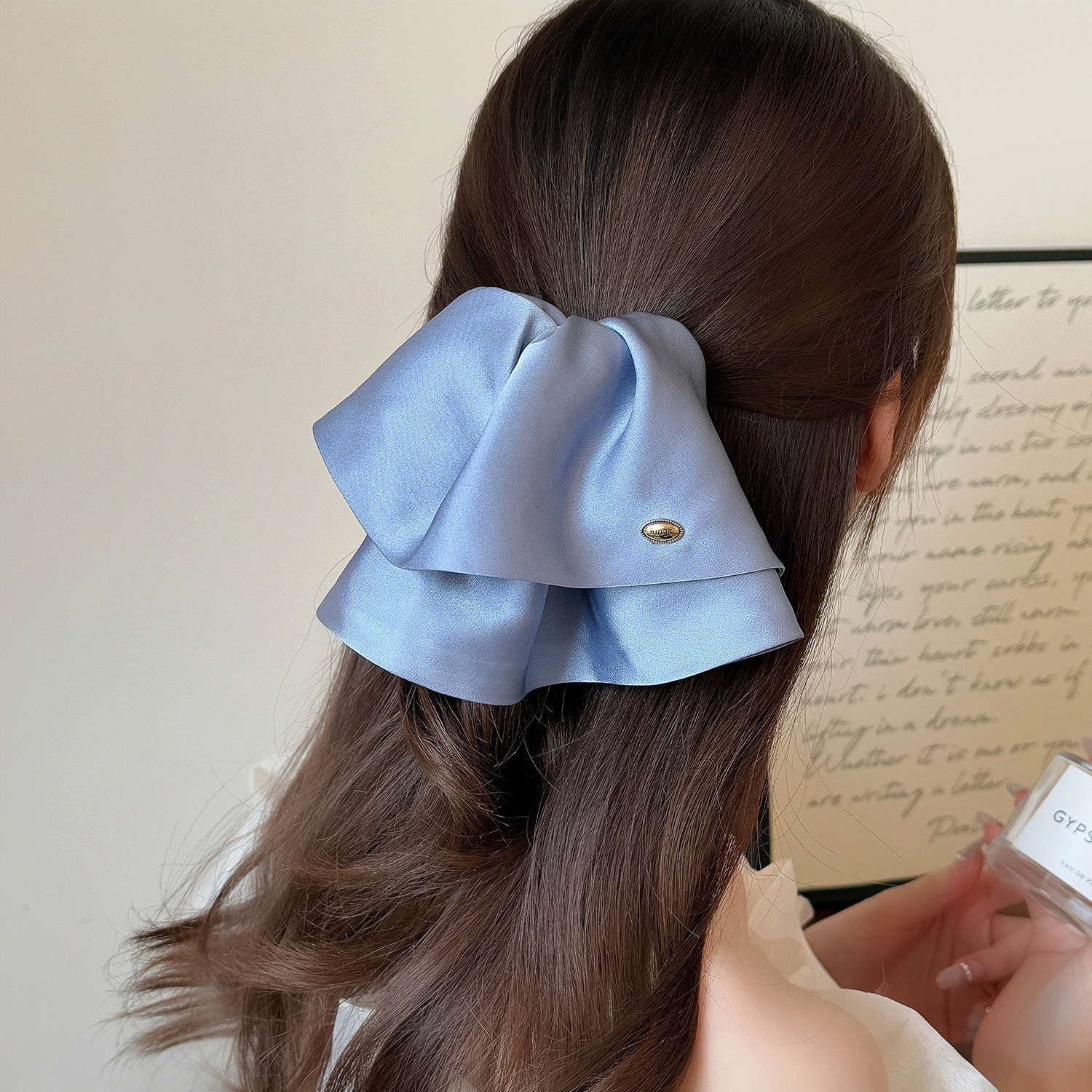 纯色缎面蝴蝶结后脑勺发夹超仙轻奢洋气时尚马尾夹甜美可爱抓夹女