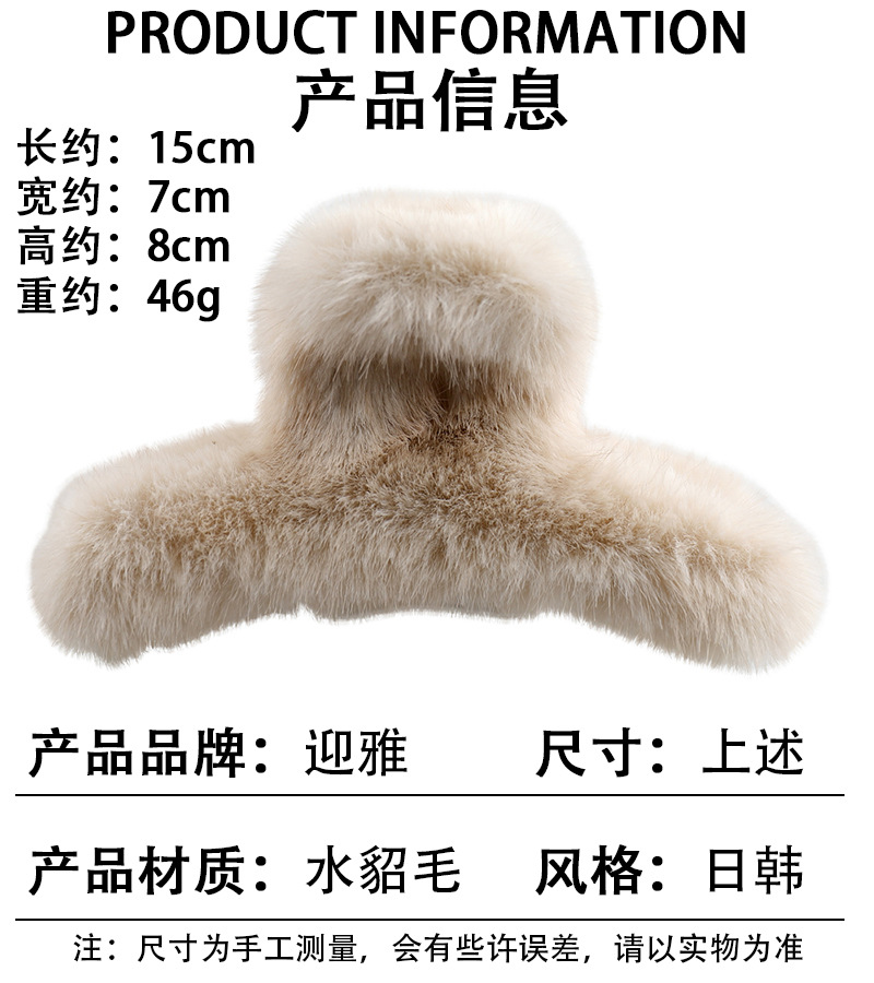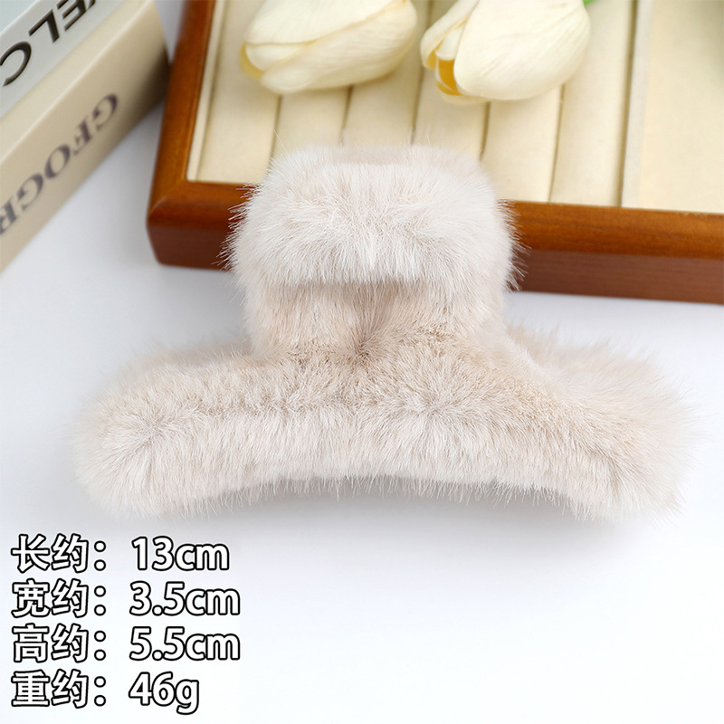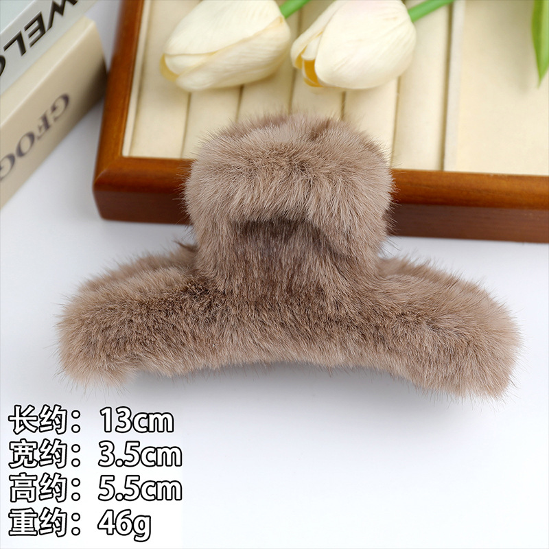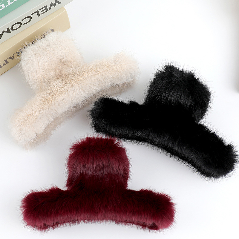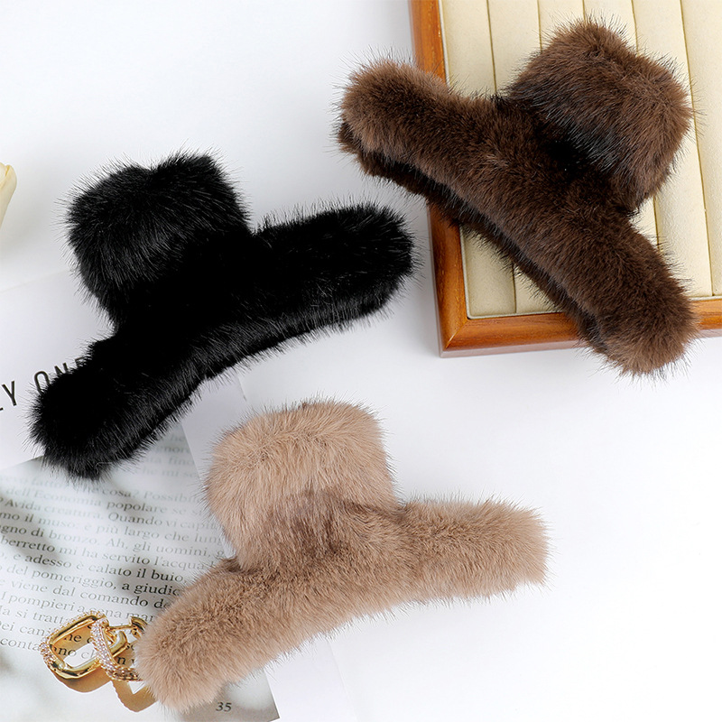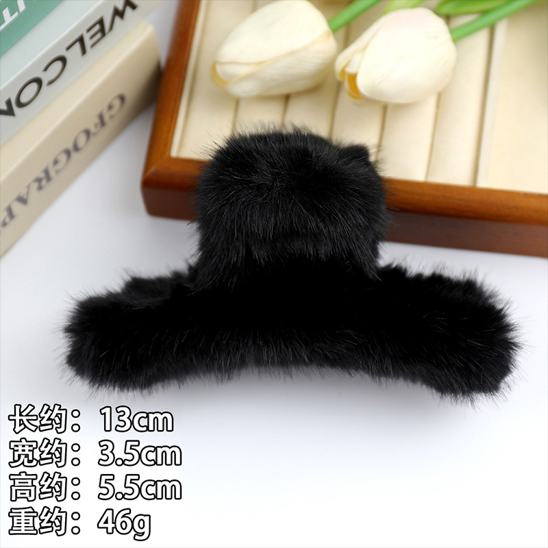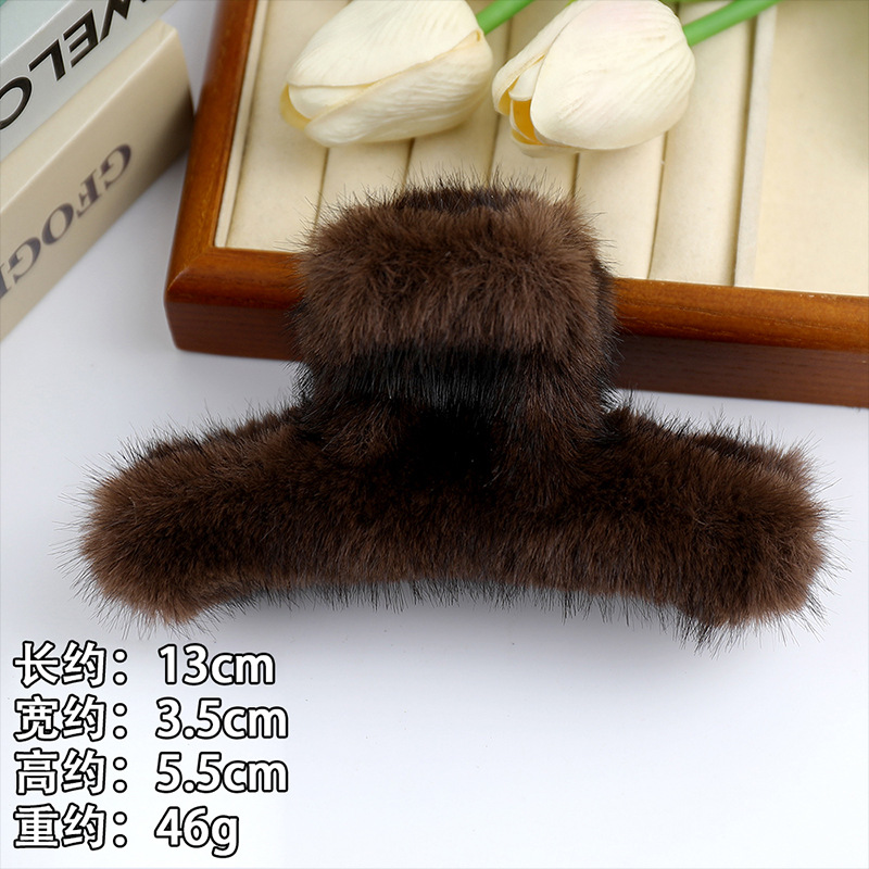秋冬水貂毛大号抓夹新款韩国网红毛绒发夹女后脑勺高级感鲨鱼夹女