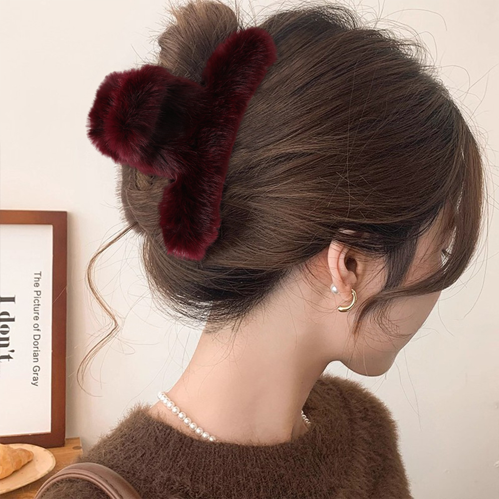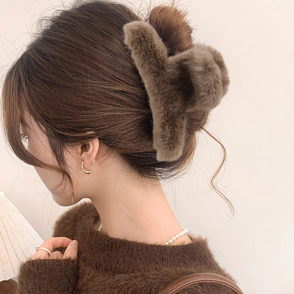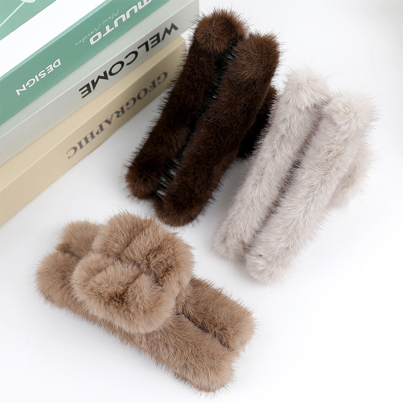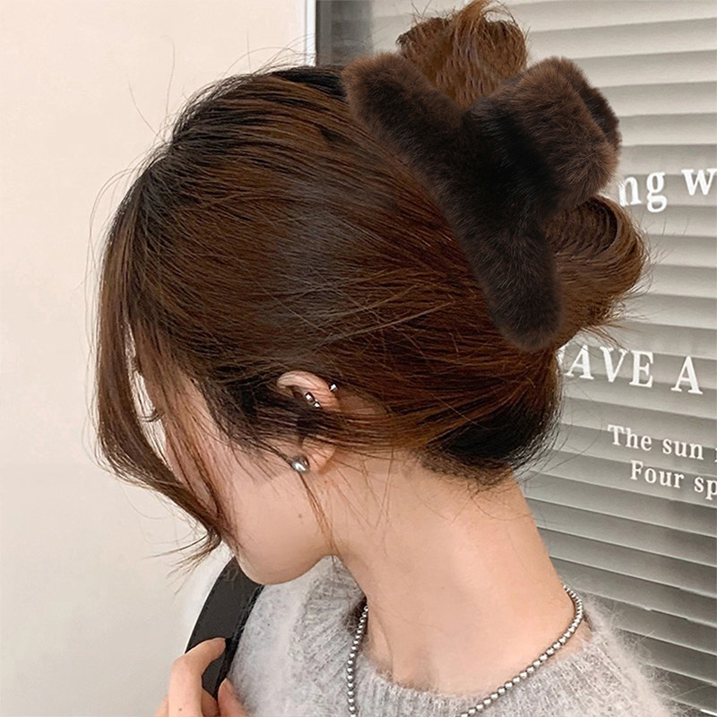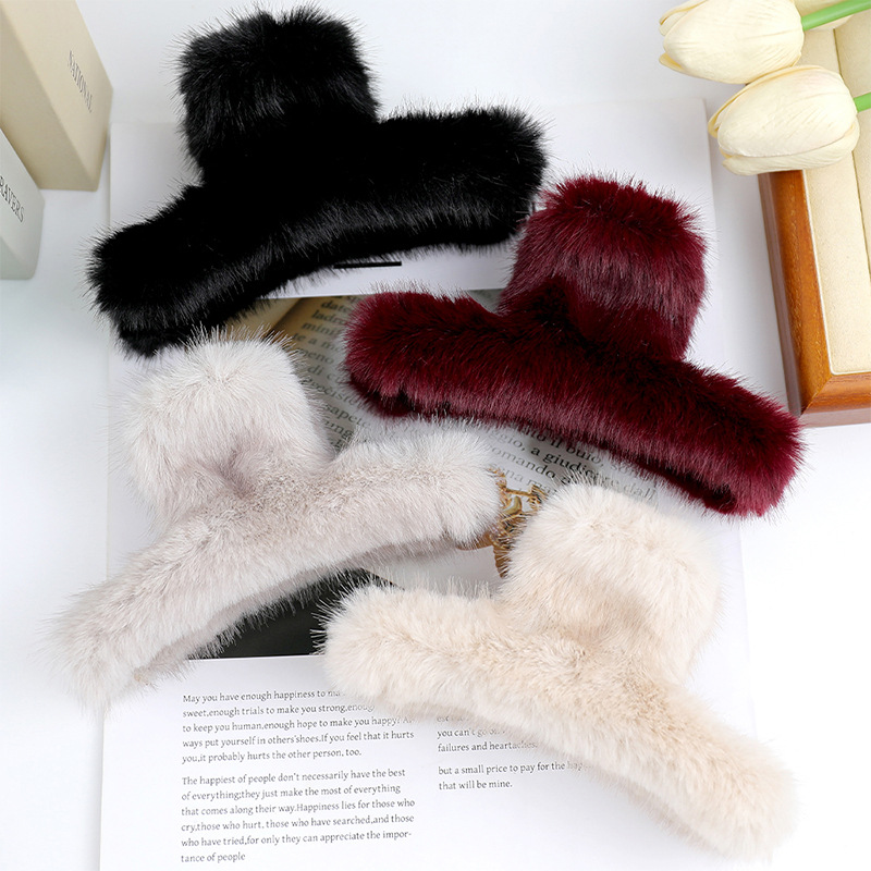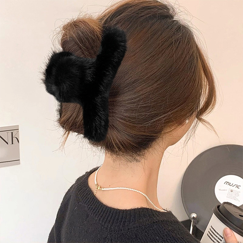 秋冬水貂毛大号抓夹新款韩国网红毛绒发夹女后脑勺高级感鲨鱼夹女
