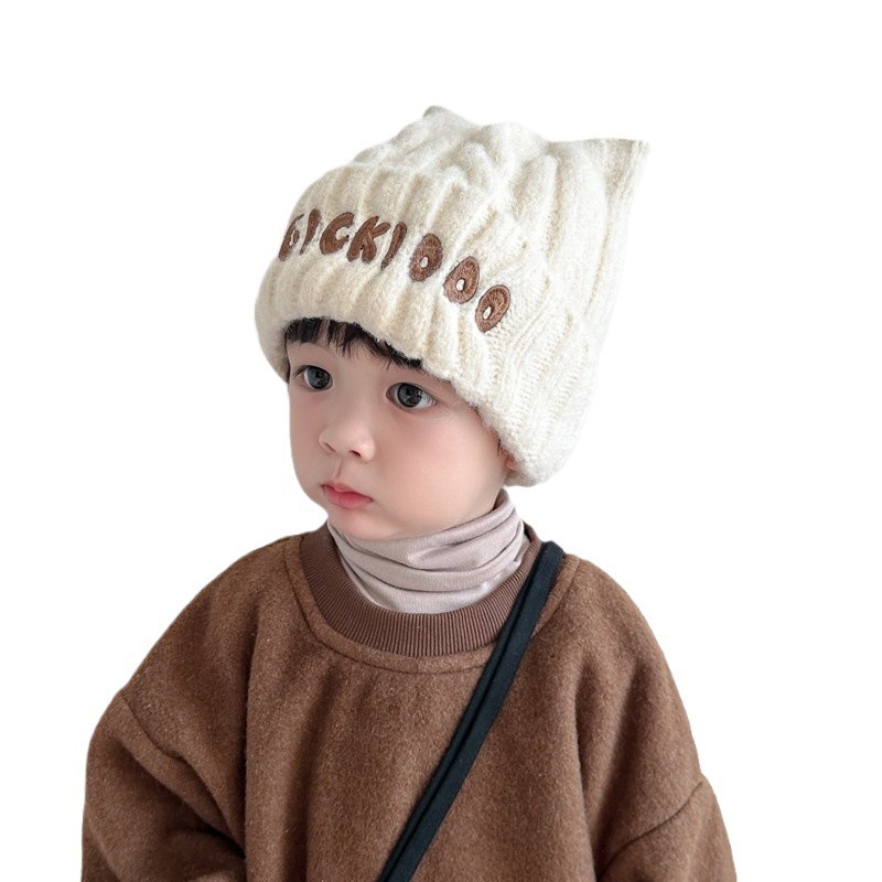 儿童帽子刺绣字母耳朵可爱毛线帽花纹护耳防风保暖宝宝学生针织帽