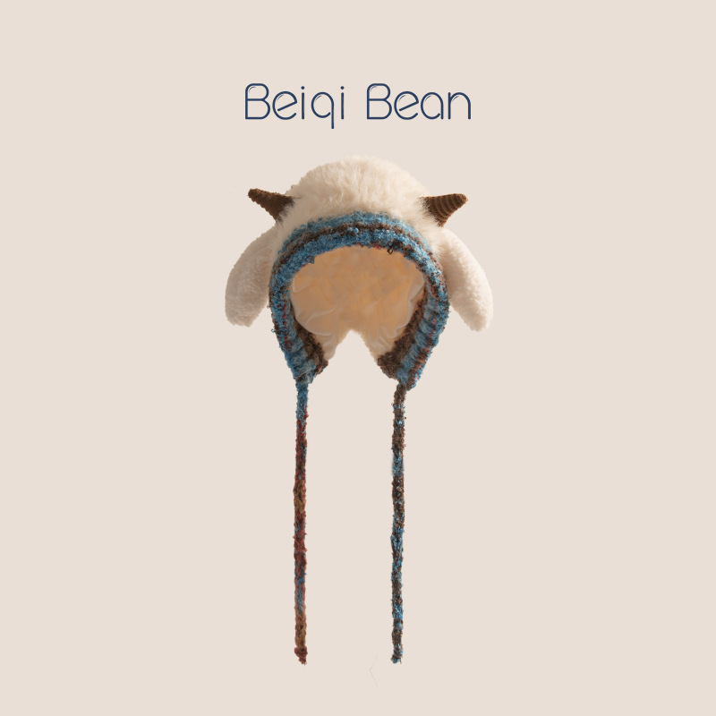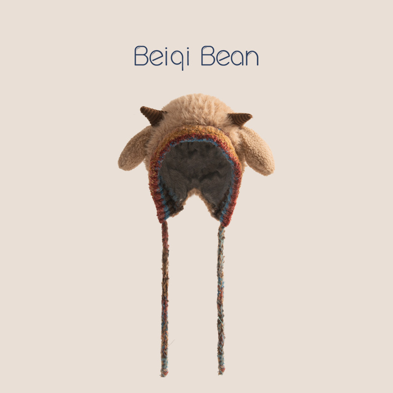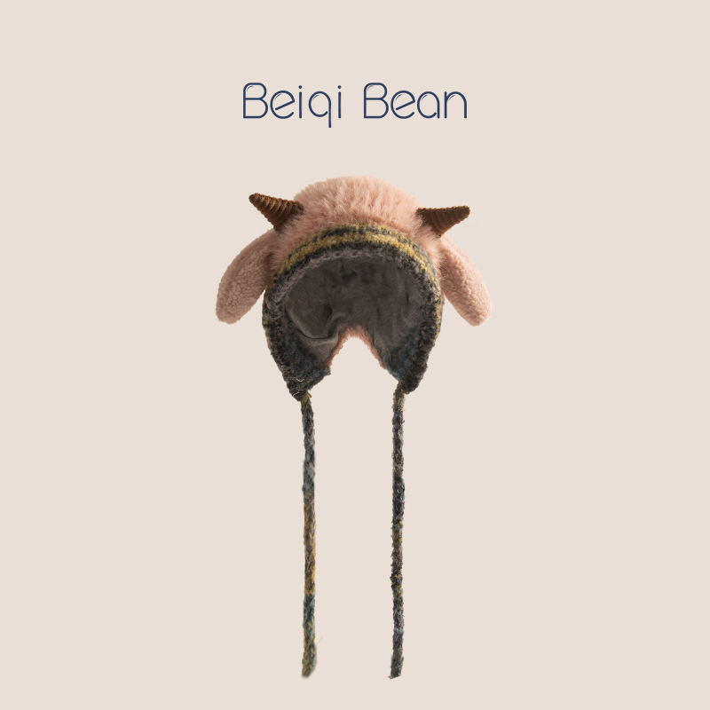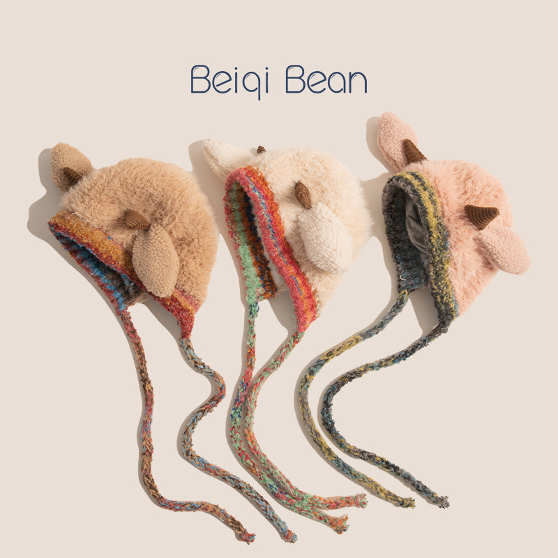 冬季儿童帽子时尚毛绒可爱小羊毛绒帽女童护耳洋气加厚保暖毛线帽
