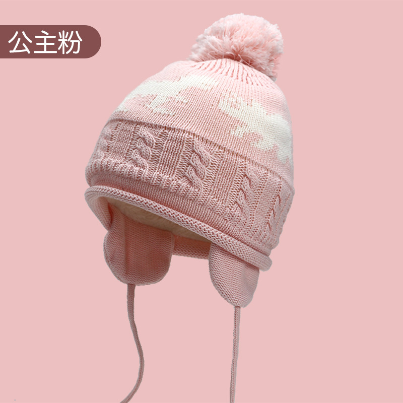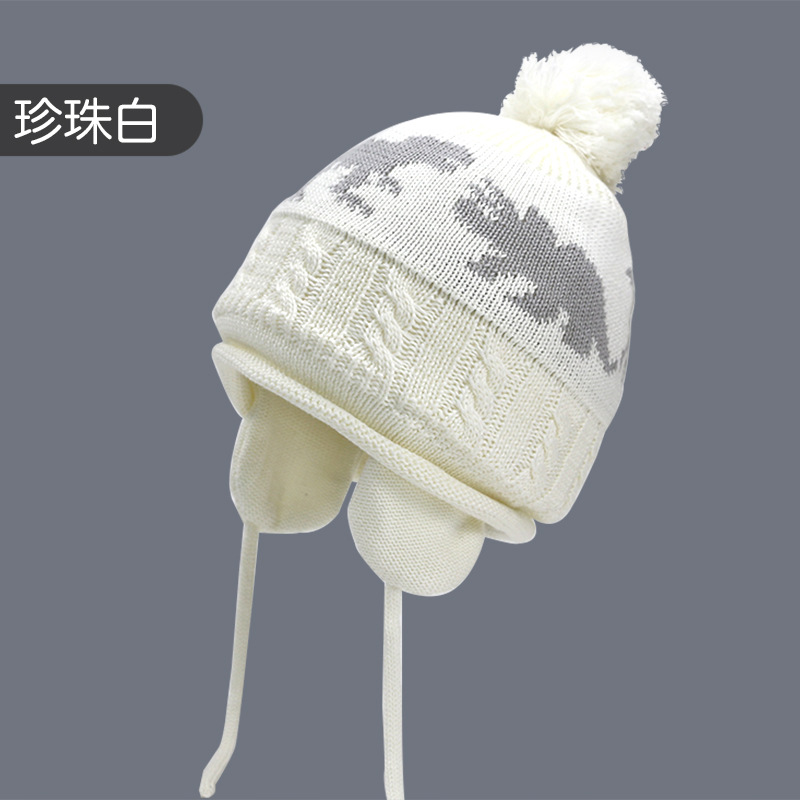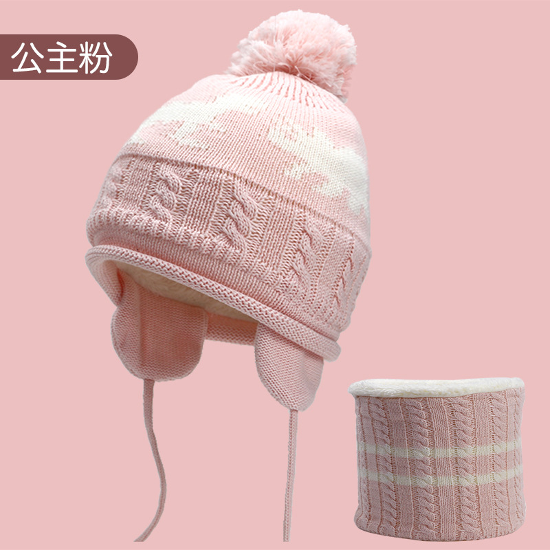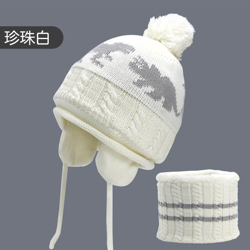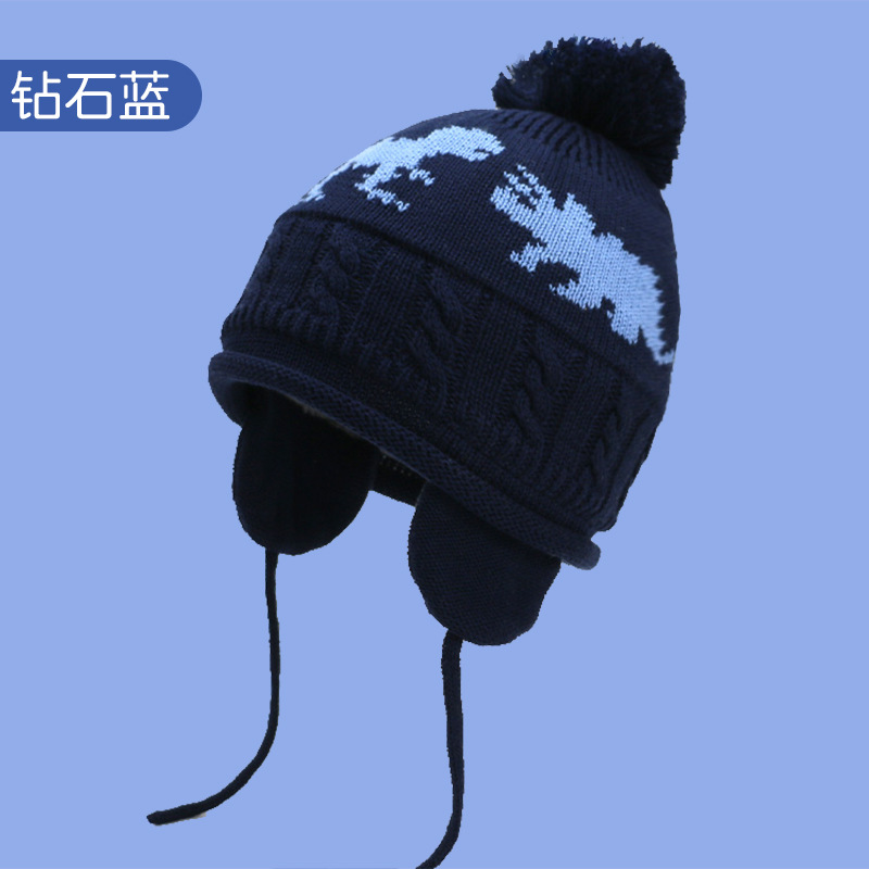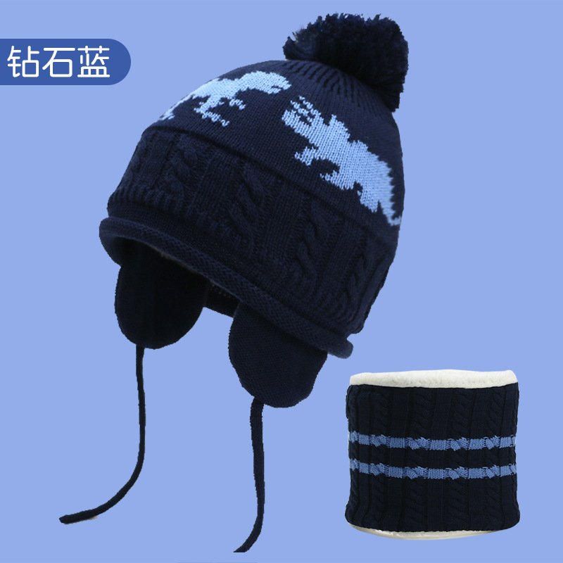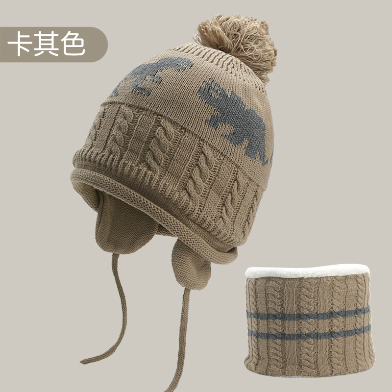 儿童针织帽新款宝宝护耳帽卡通图案男孩套头帽加绒加厚帽子围脖套