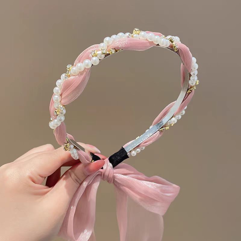 田园风碎花麻花辫发捆发箍女士高级感飘带蝴蝶结编发带齿头饰批发