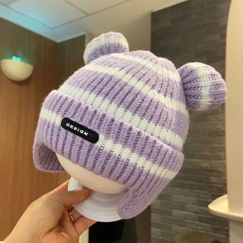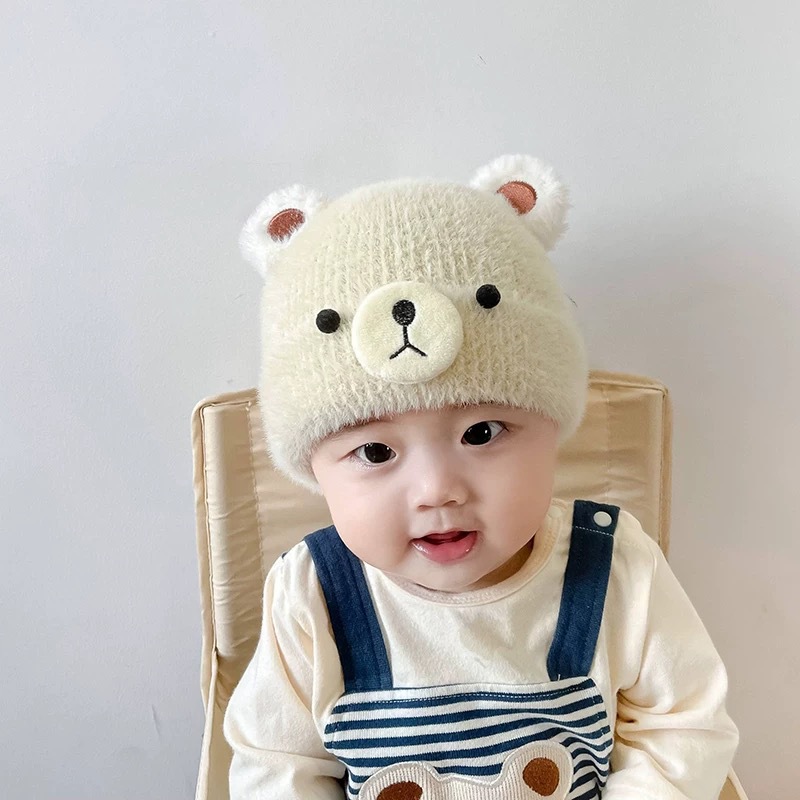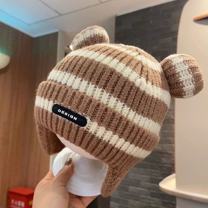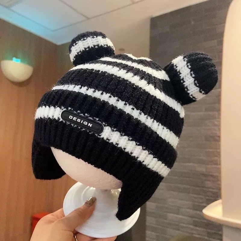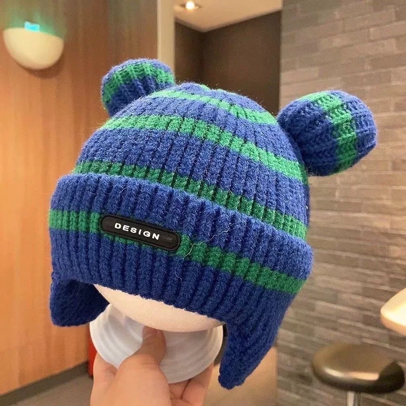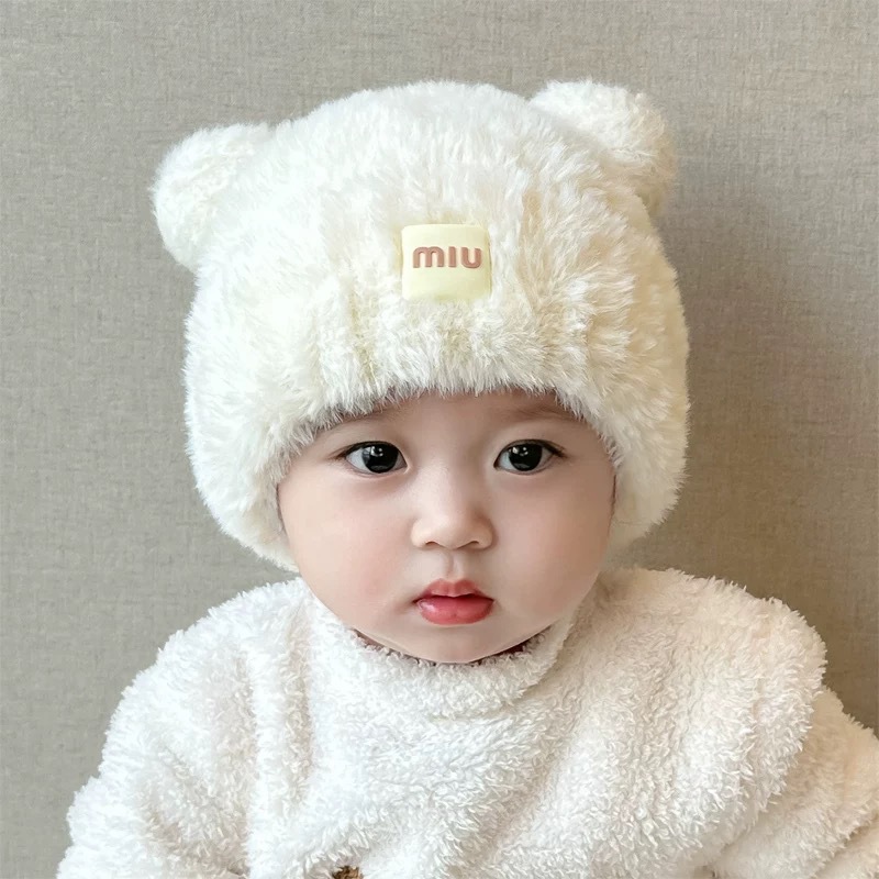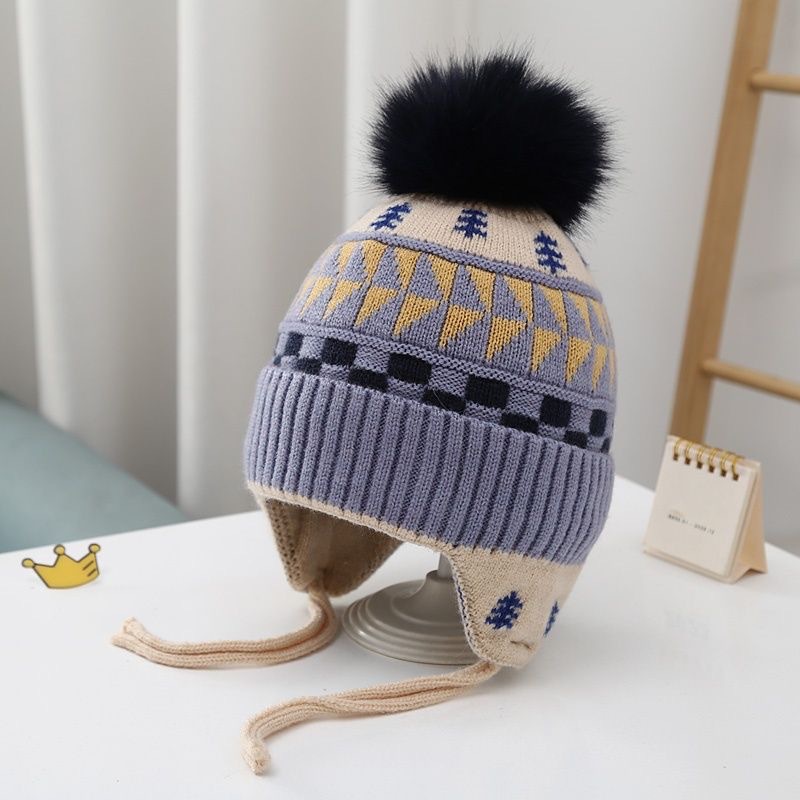 宝宝帽子秋冬款时尚毛球款护耳针织帽冬季男童女孩加厚保暖毛线帽