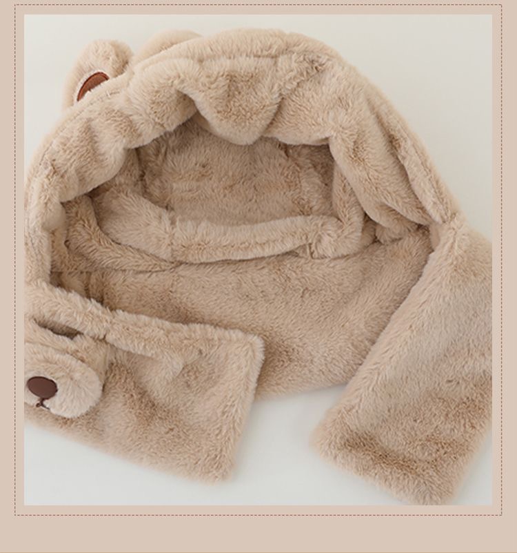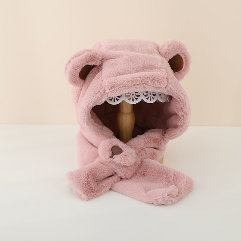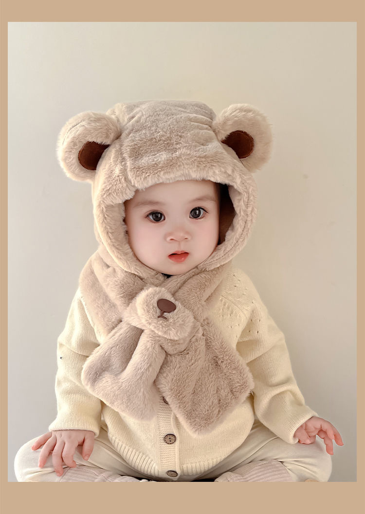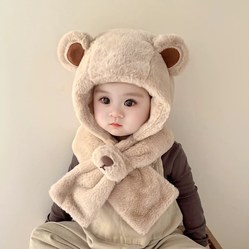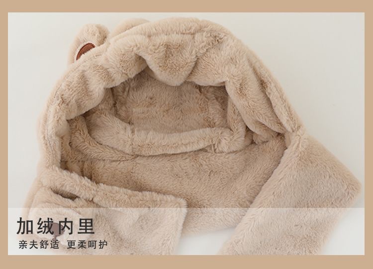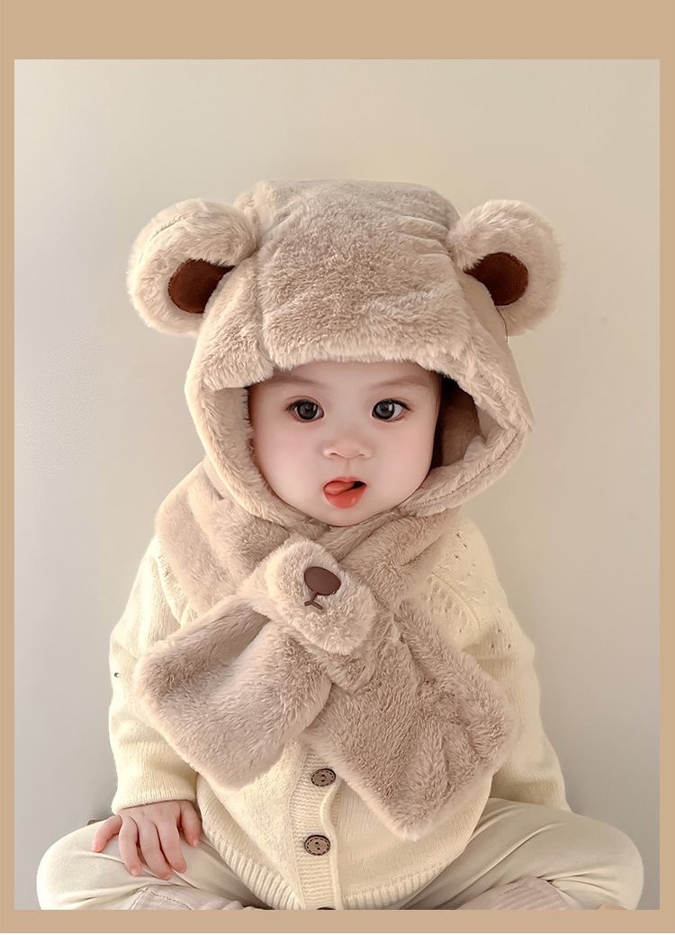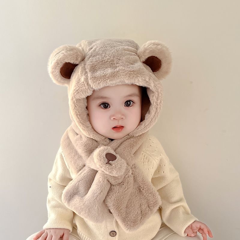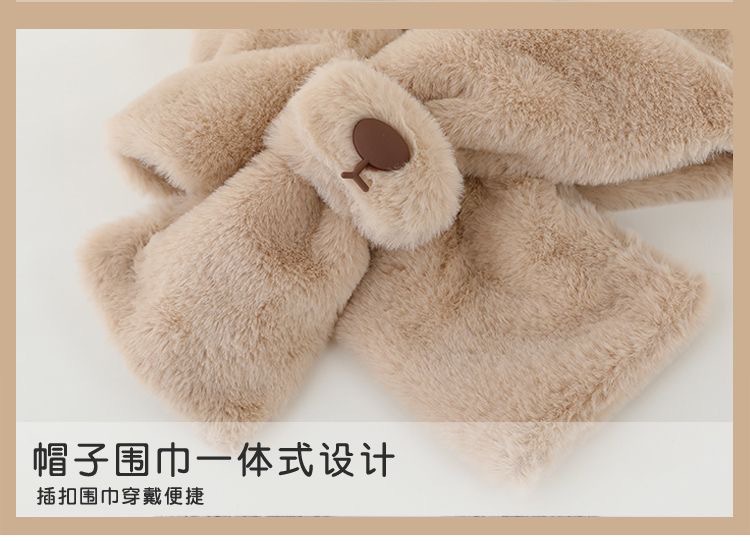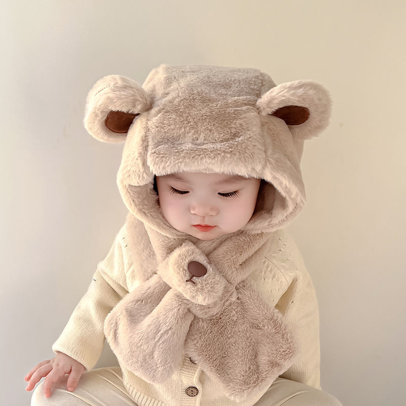 儿童帽子围巾一体秋冬季加绒加厚男女宝宝护耳毛绒帽婴儿保暖围脖
