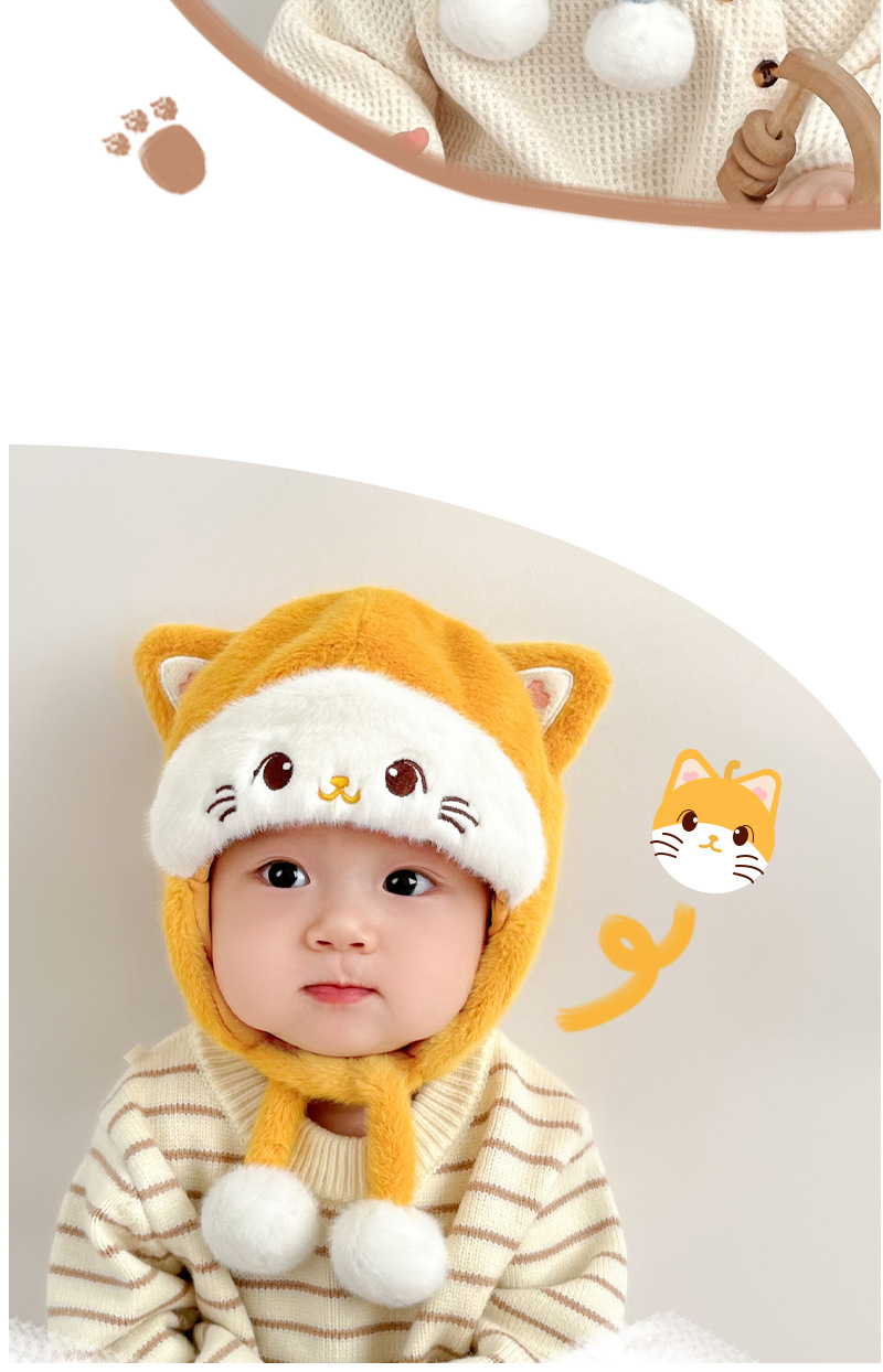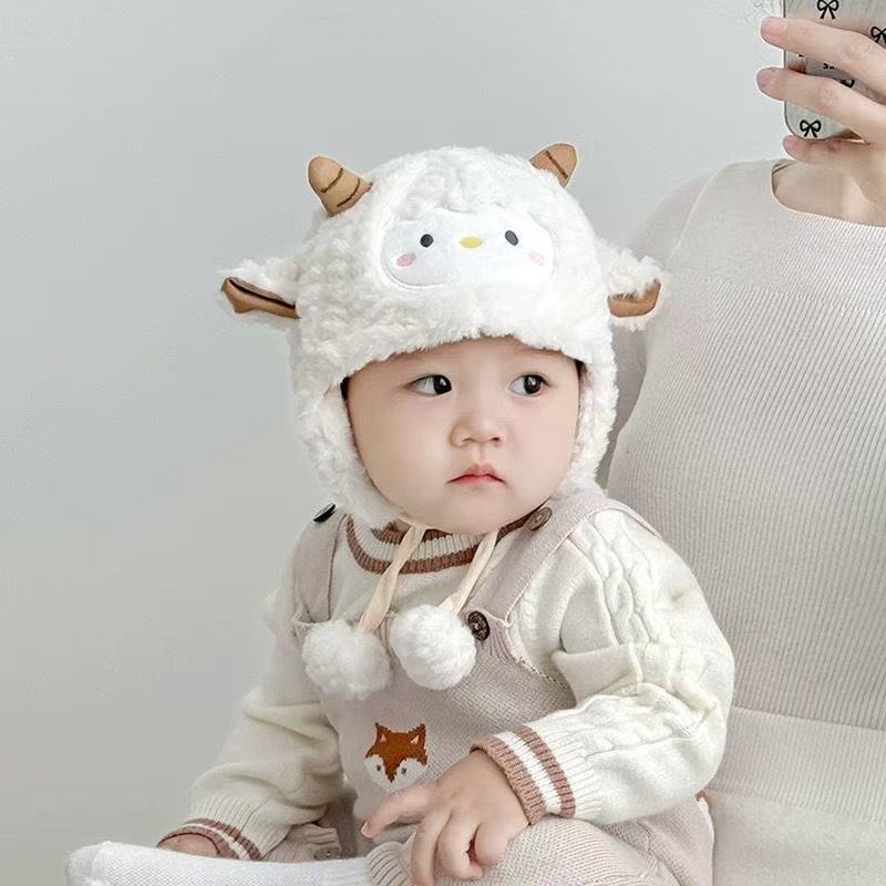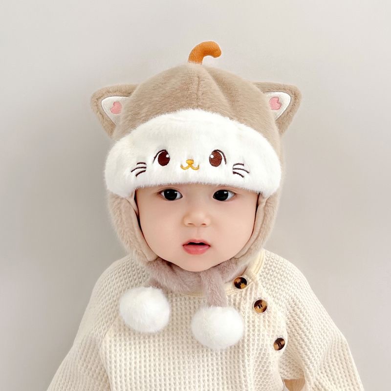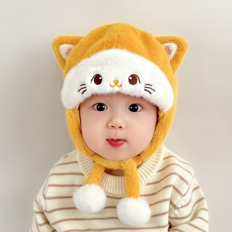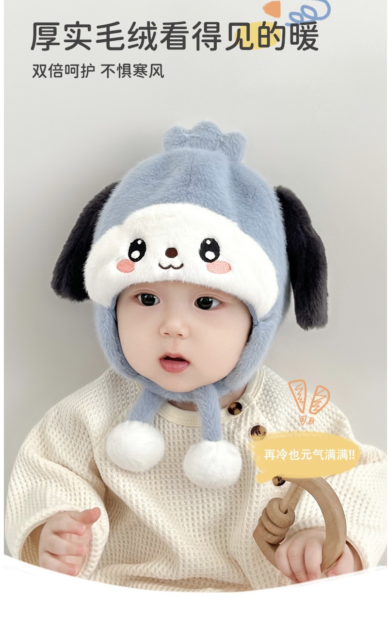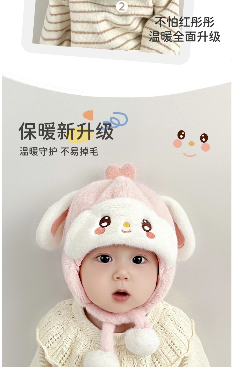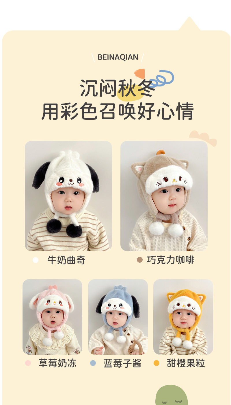 婴儿帽子秋冬季宝宝护耳毛绒帽婴幼儿可爱毛线帽冬帽加厚保暖冬季