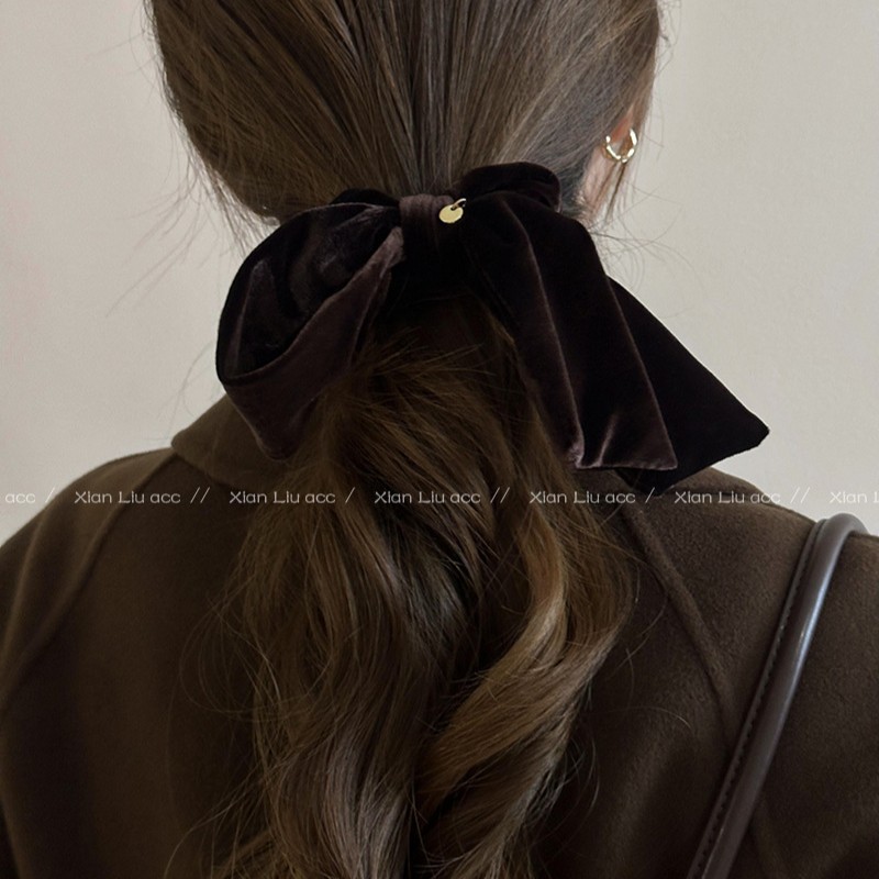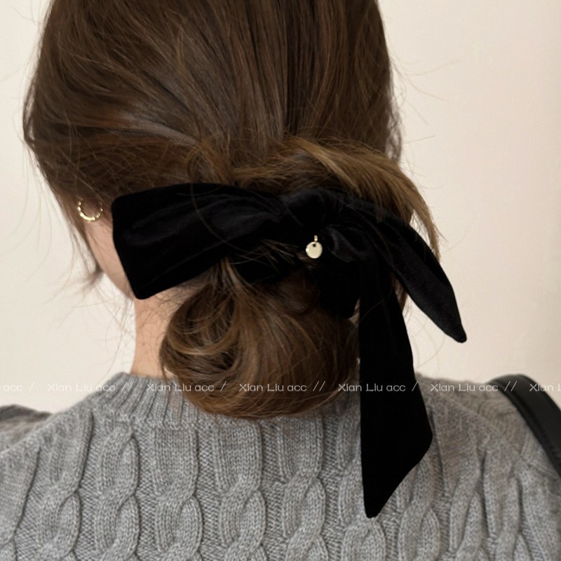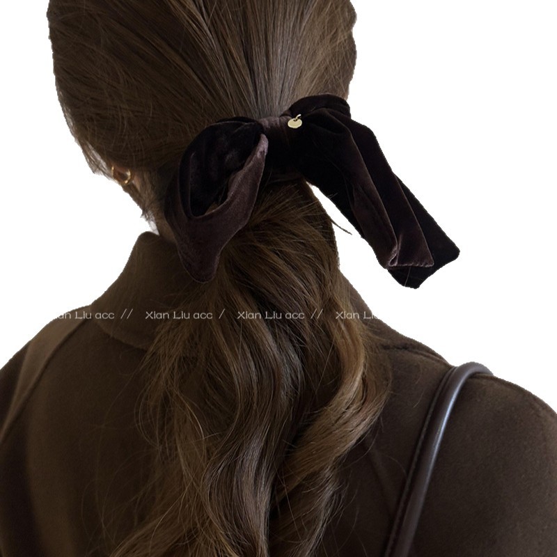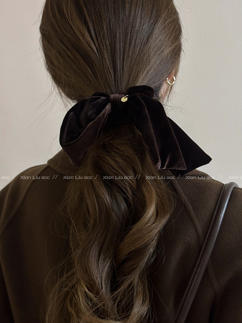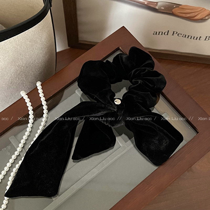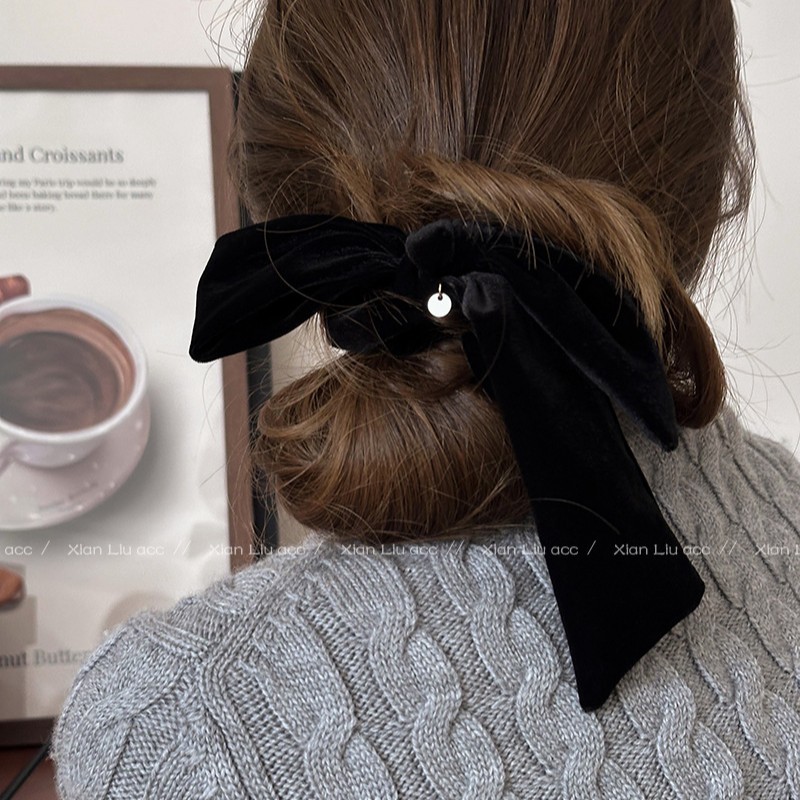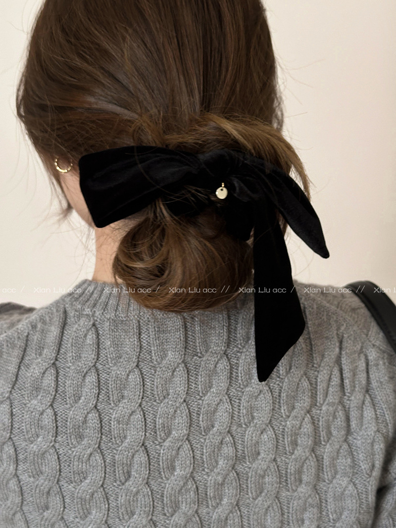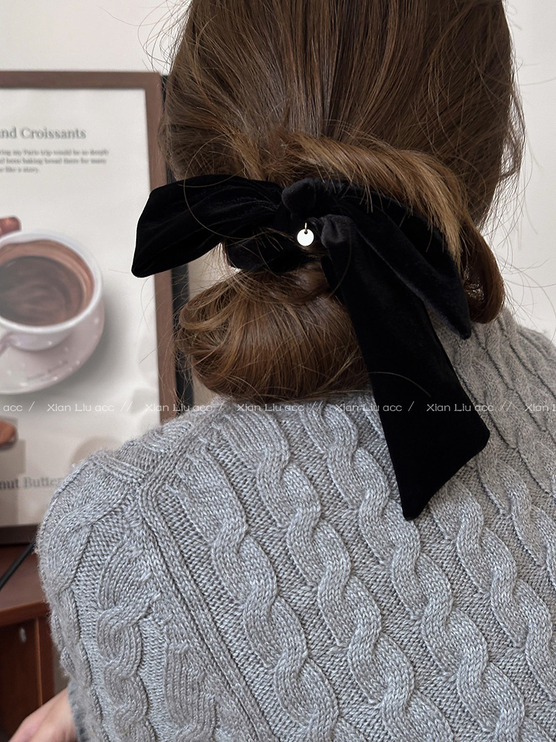 简约气质丝绒黑色蝴蝶结发圈女2025新款高级感头花头绳扎头发皮筋