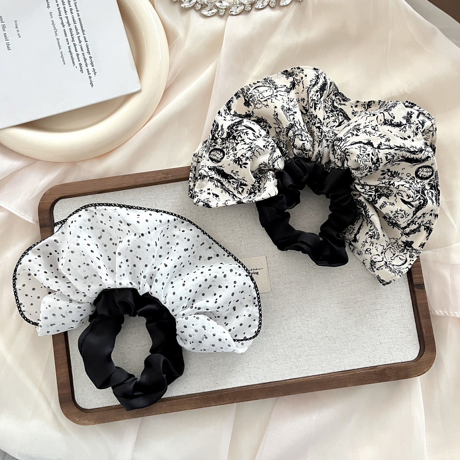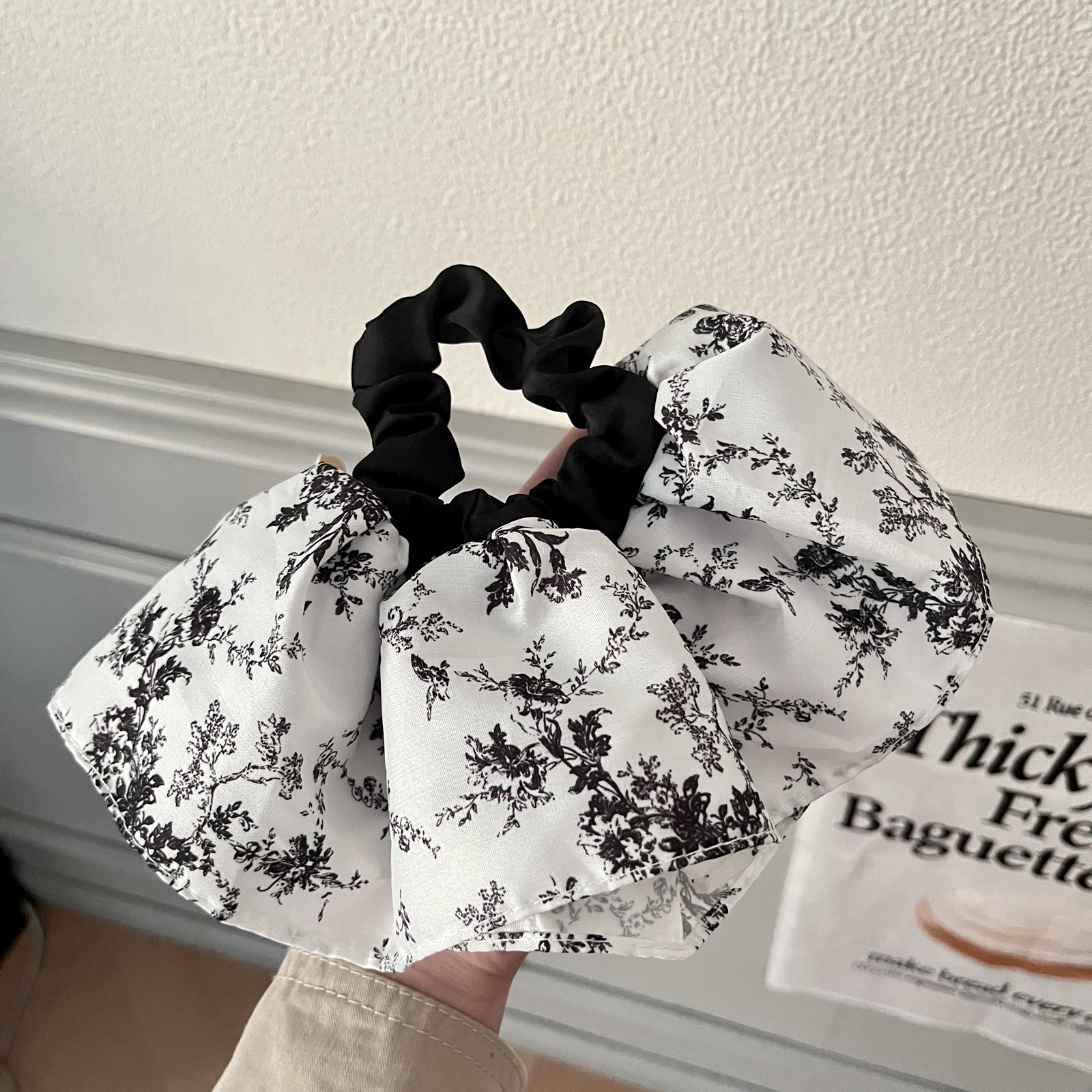 水墨画印花气质褶皱感发圈精致丸子头肠圈发饰氛围百搭高级感头花