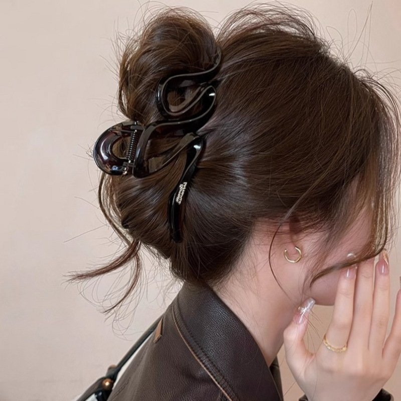 高级感大号早秋波浪抓夹女2024新款发夹后脑勺鲨鱼夹盘发夹子头饰