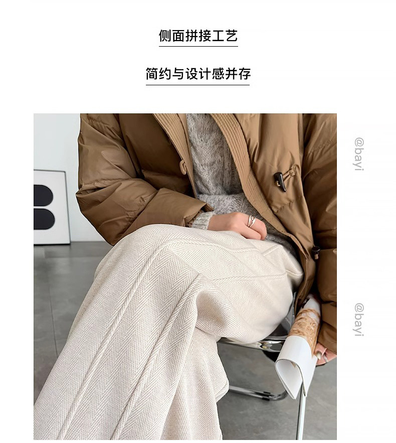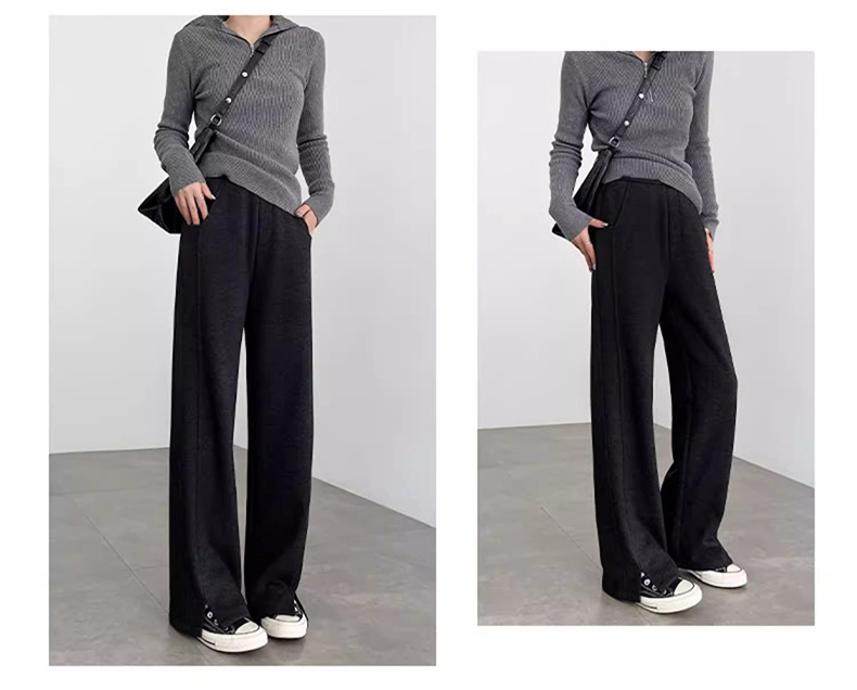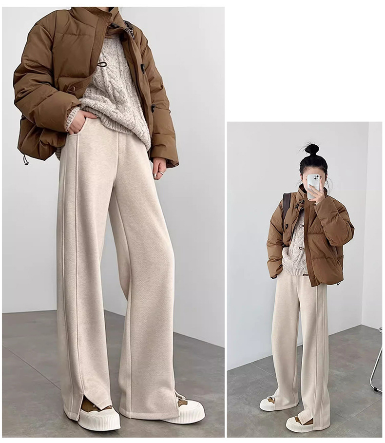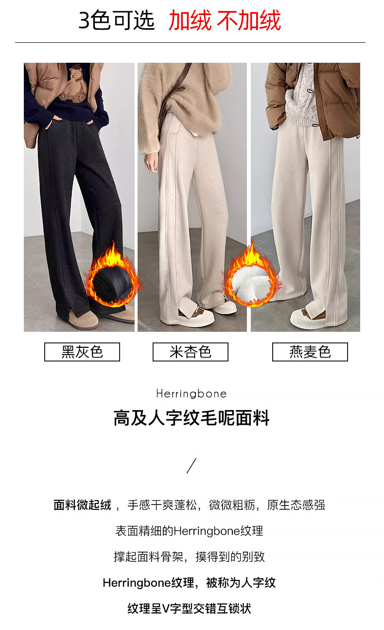 2471】棉羊绒服装裤子女秋冬新款高腰直筒女装加厚开叉加绒阔腿裤
