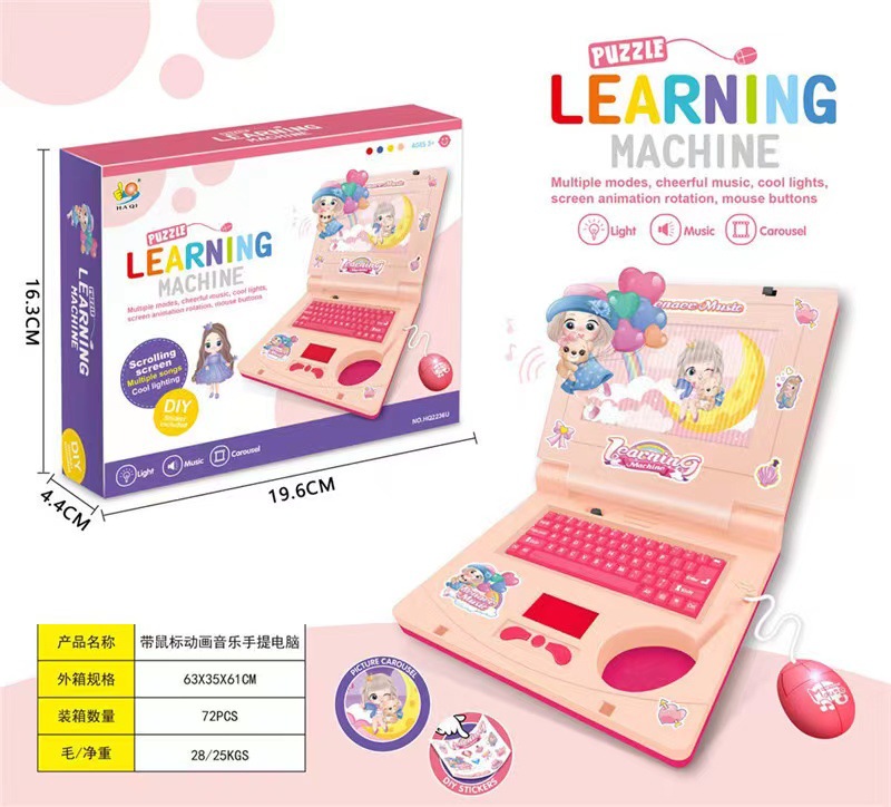 外贸投影学习机鼠标迷你仿真笔记本灯光音乐早教益智儿童电脑玩具