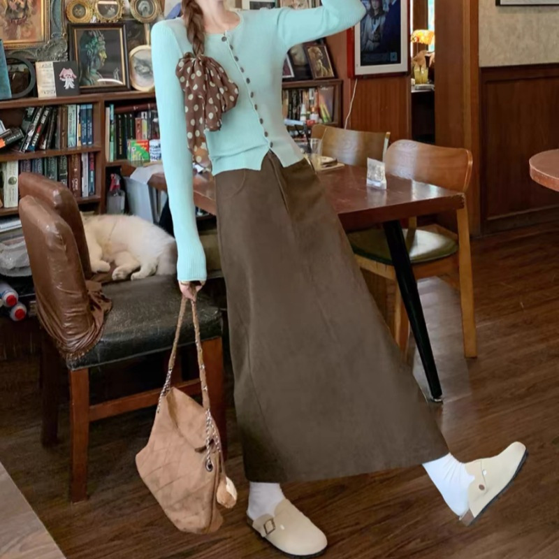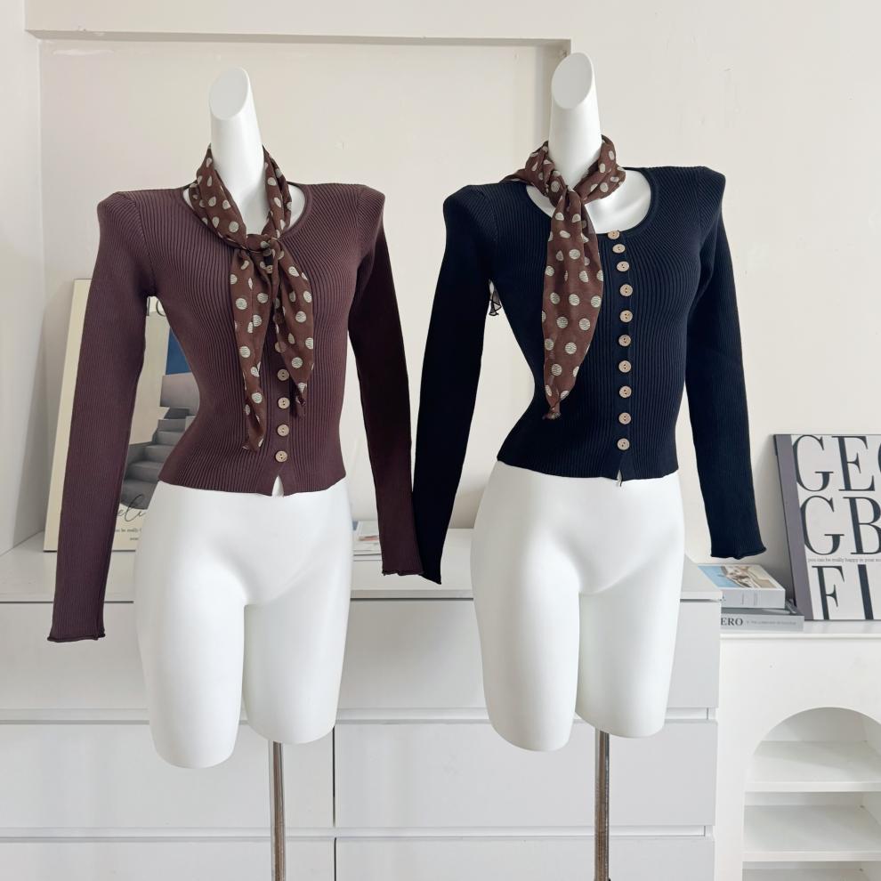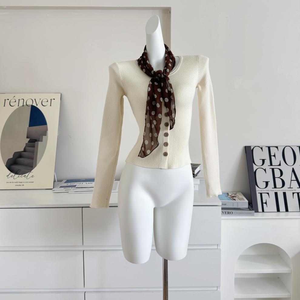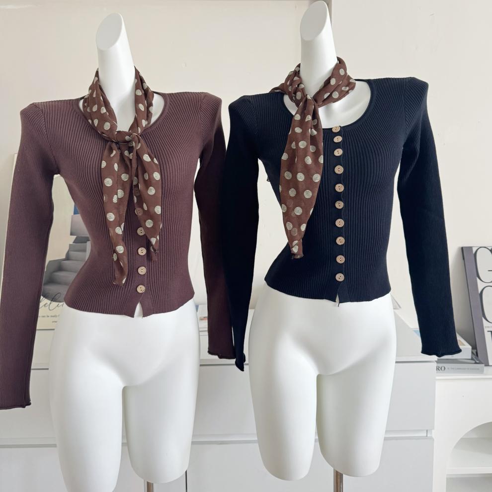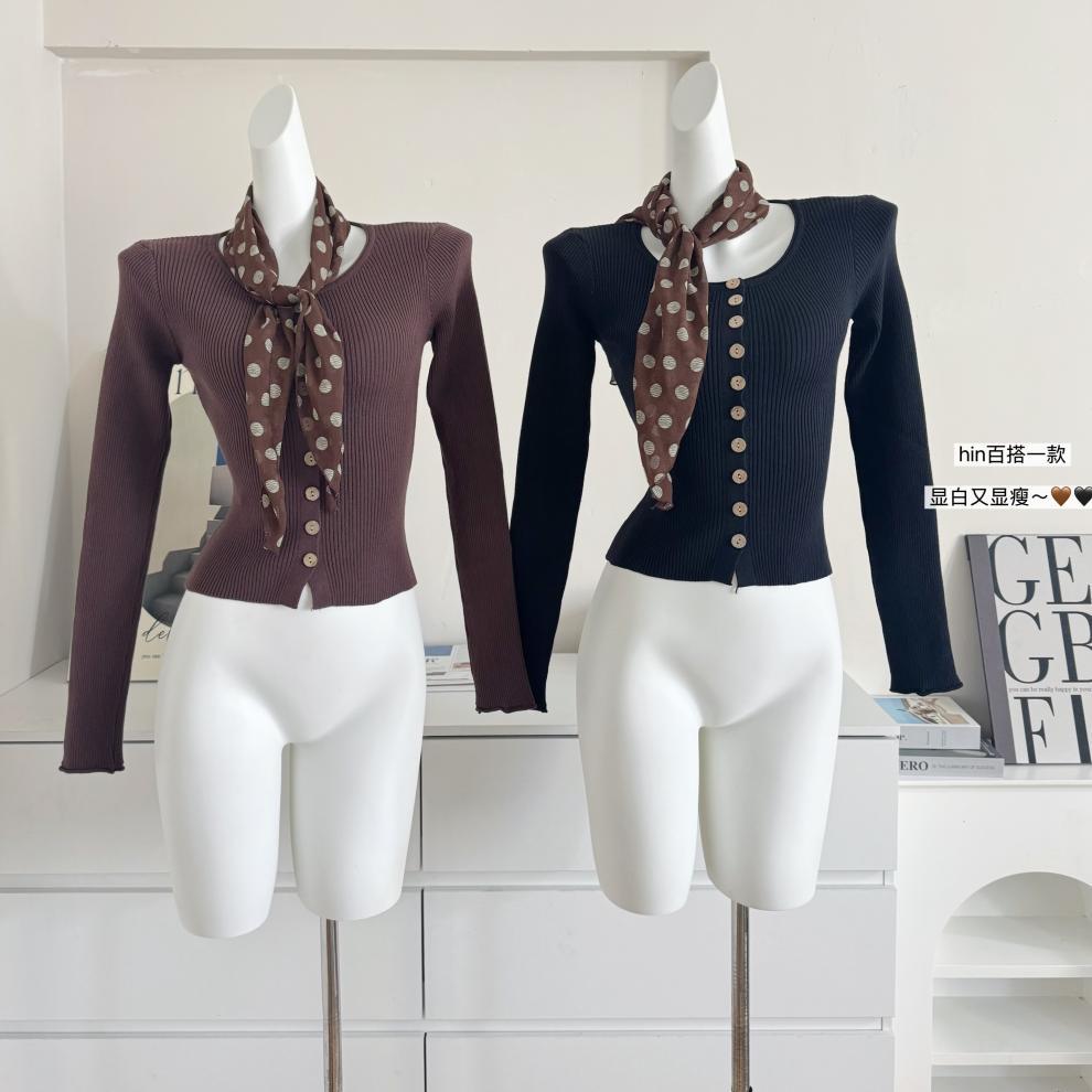 韩系绿色短款长袖针织衫女早秋修身薄款毛衣开衫单穿上衣
