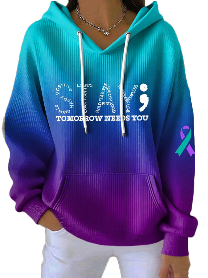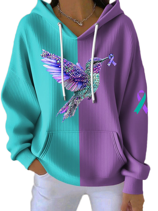 连帽长袖女士卫衣跨境外贸2025新款条纹面料卡通数码印花可D制批