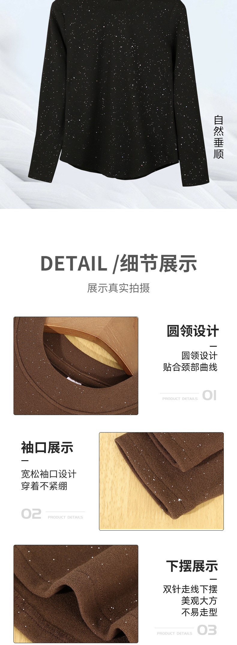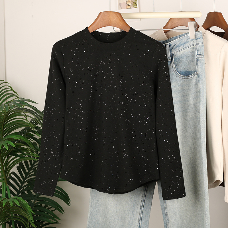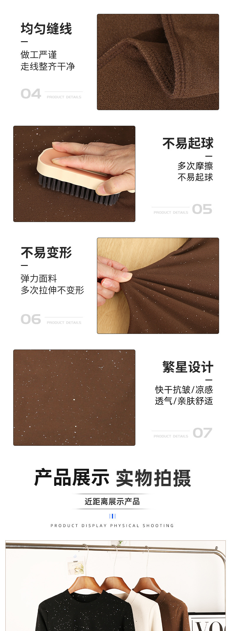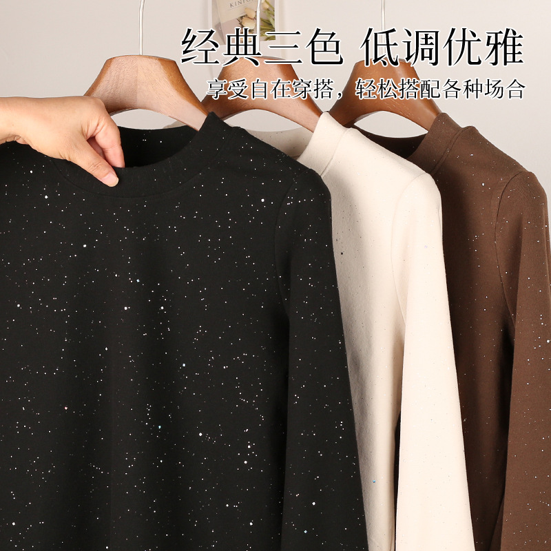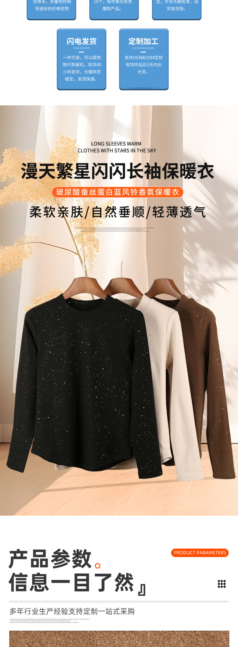 秋季新款设计感修身内搭打底衫女 圆领亮闪闪星空长袖T恤保暖衣