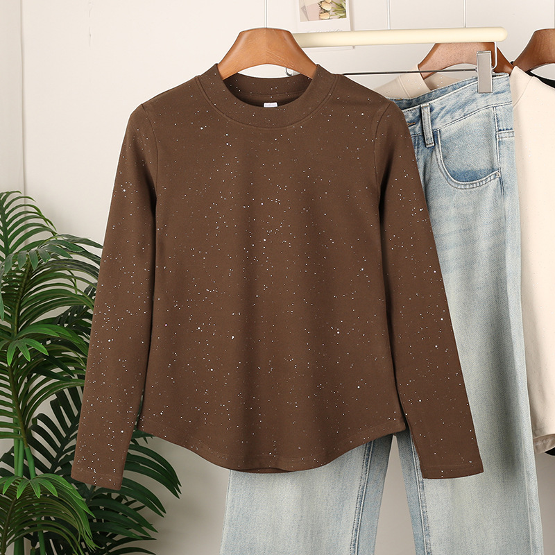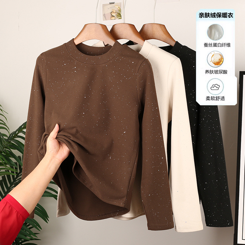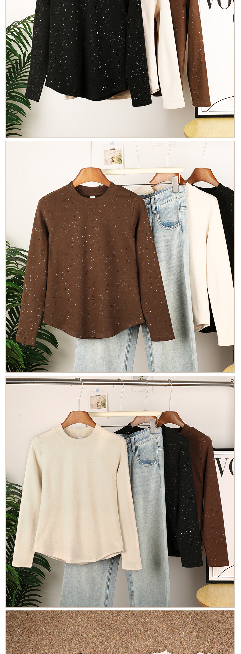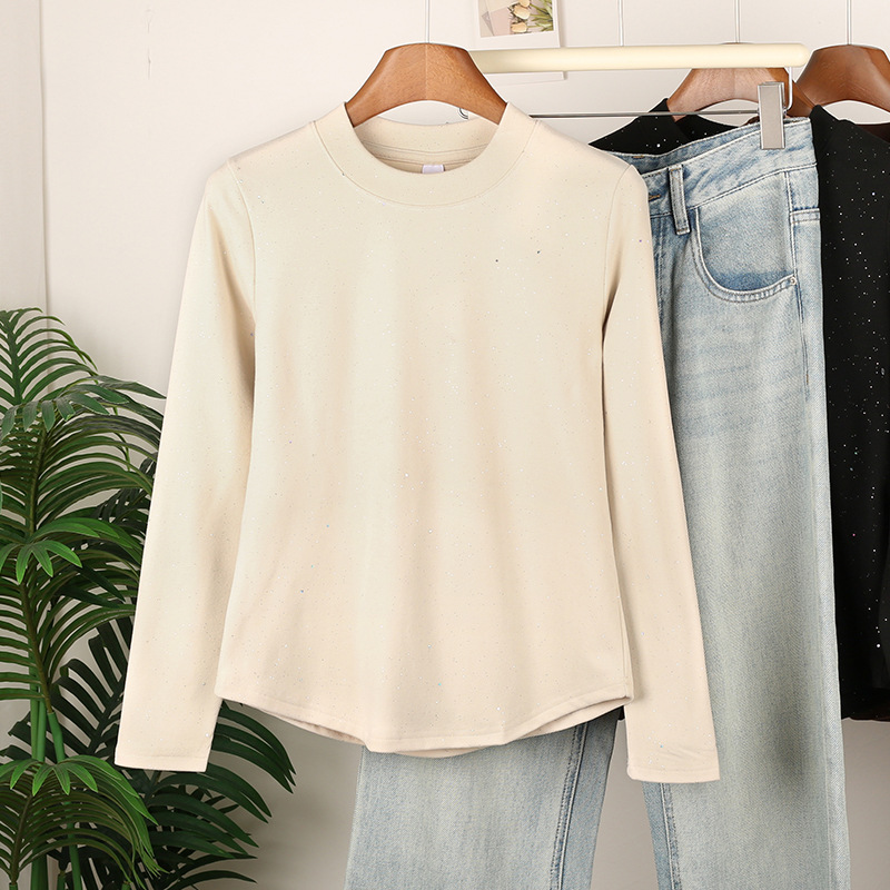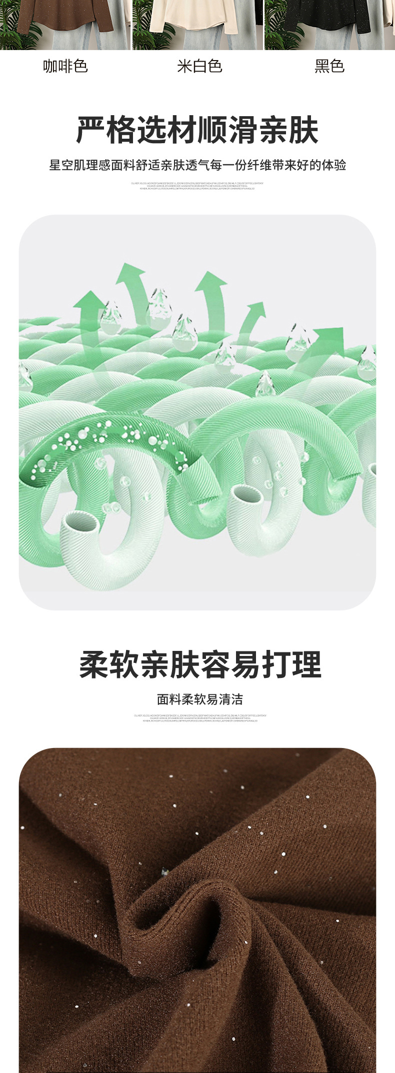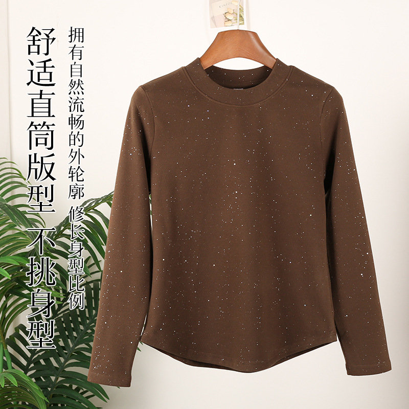 秋季新款设计感修身内搭打底衫女 圆领亮闪闪星空长袖T恤保暖衣