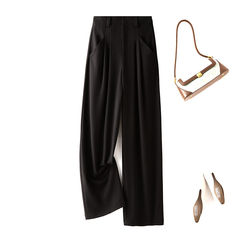 设计感裤子女2025春秋新款休闲西装裤宽松直筒阔腿裤拖地长裤女