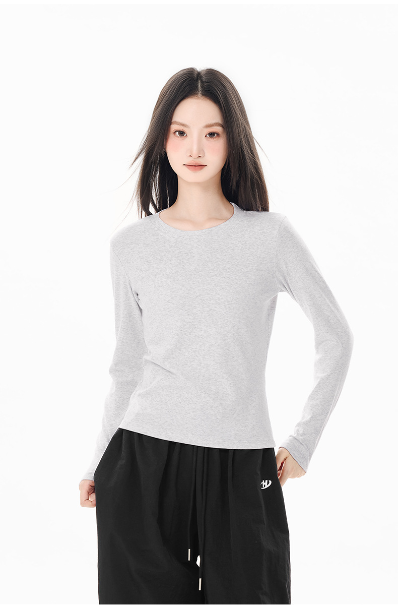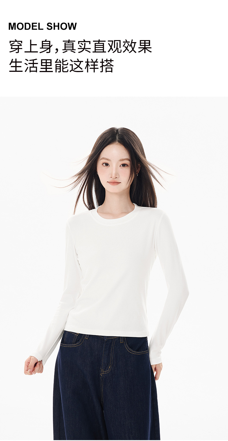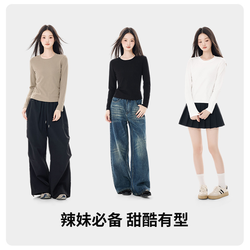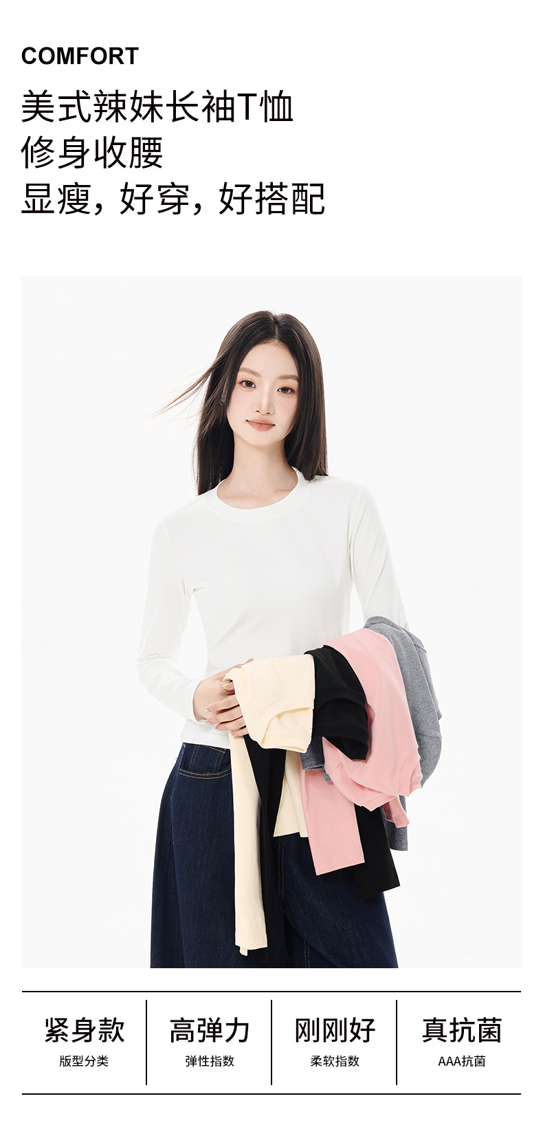 辣妹修身正肩长袖t恤女秋季新款弹力修身显瘦纯色打底内搭女上衣