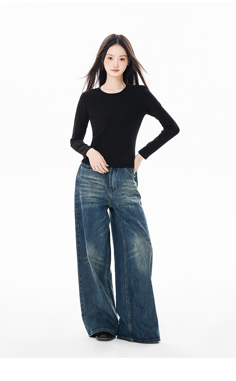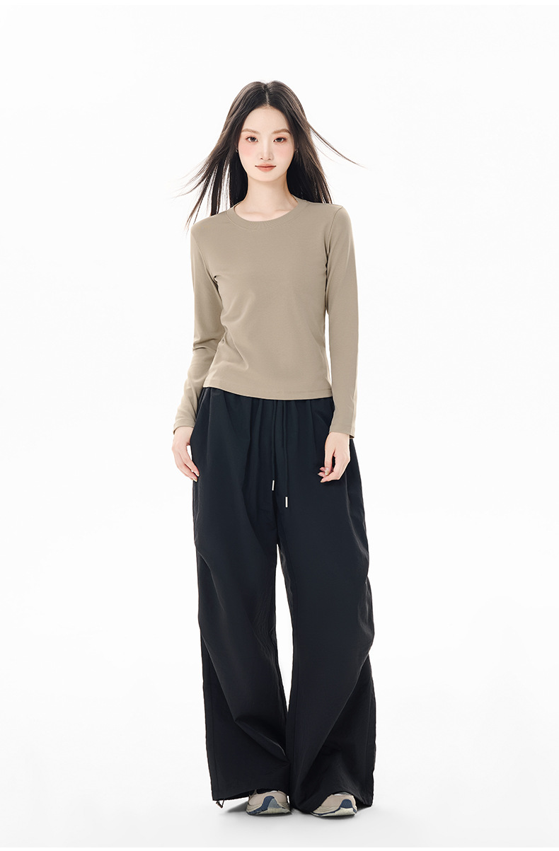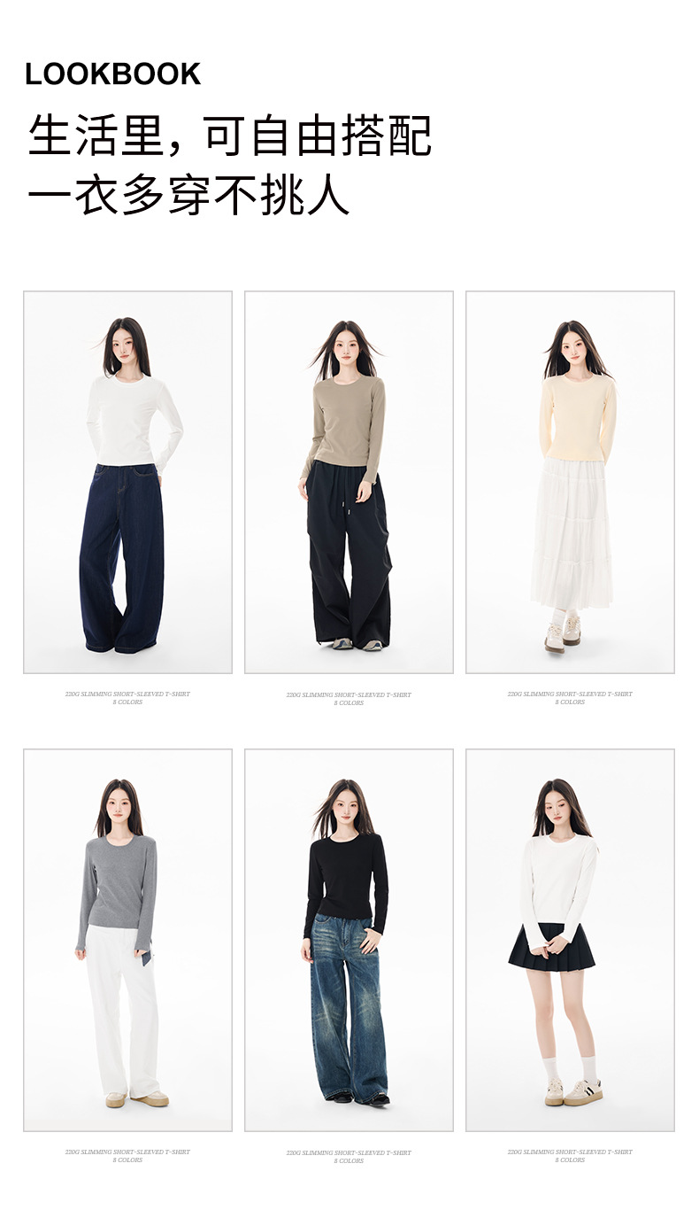 辣妹修身正肩长袖t恤女秋季新款弹力修身显瘦纯色打底内搭女上衣