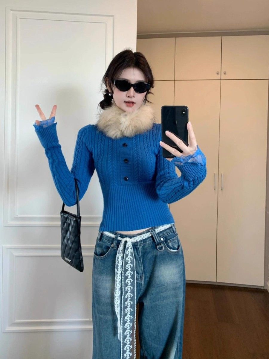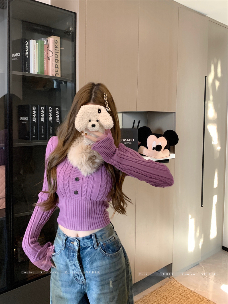2025新款秋冬辣妹修身麻花内搭收腰短款针织毛衣女