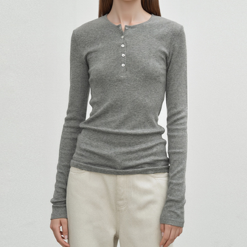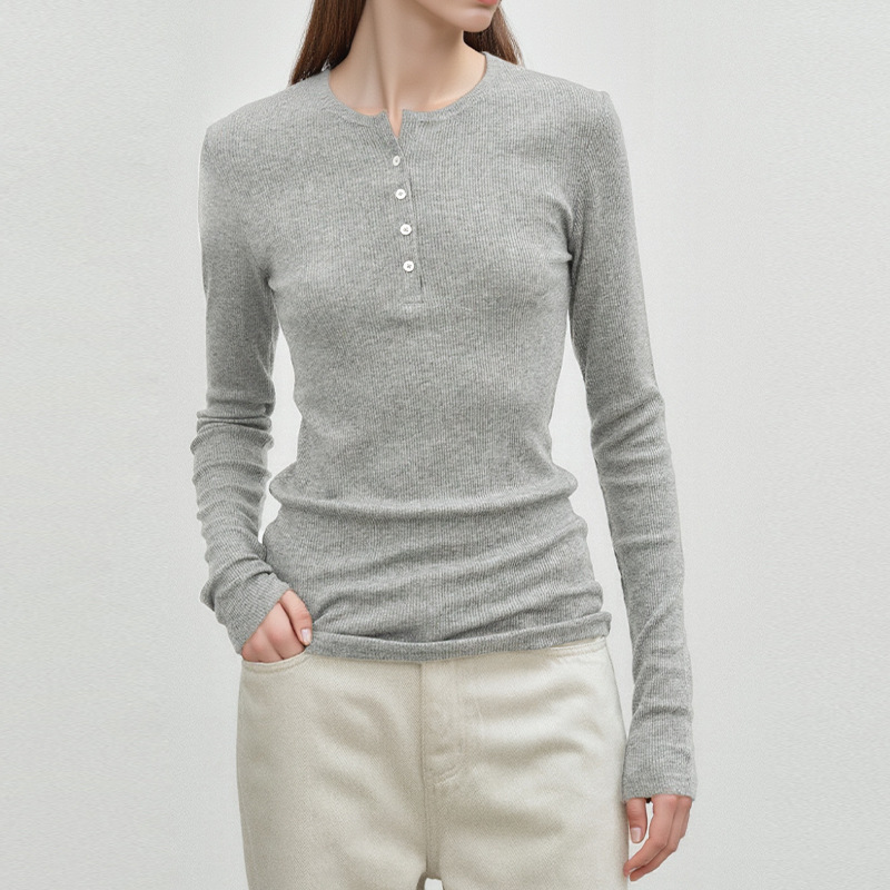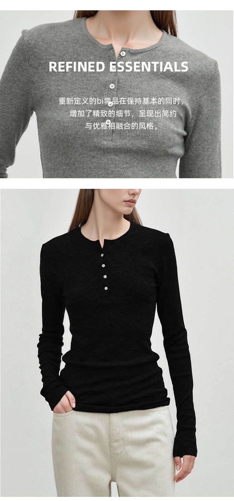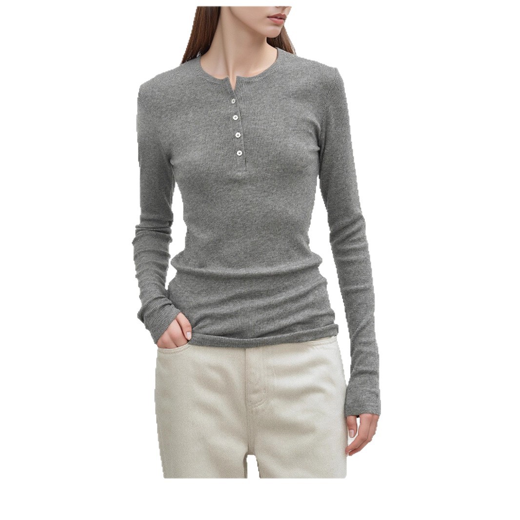 秋冬新品混纺圆领日韩系t恤上衣女柔软显瘦长袖内搭罗纹打底衫T恤