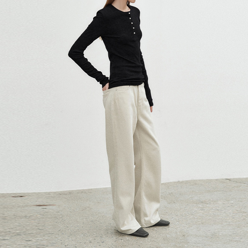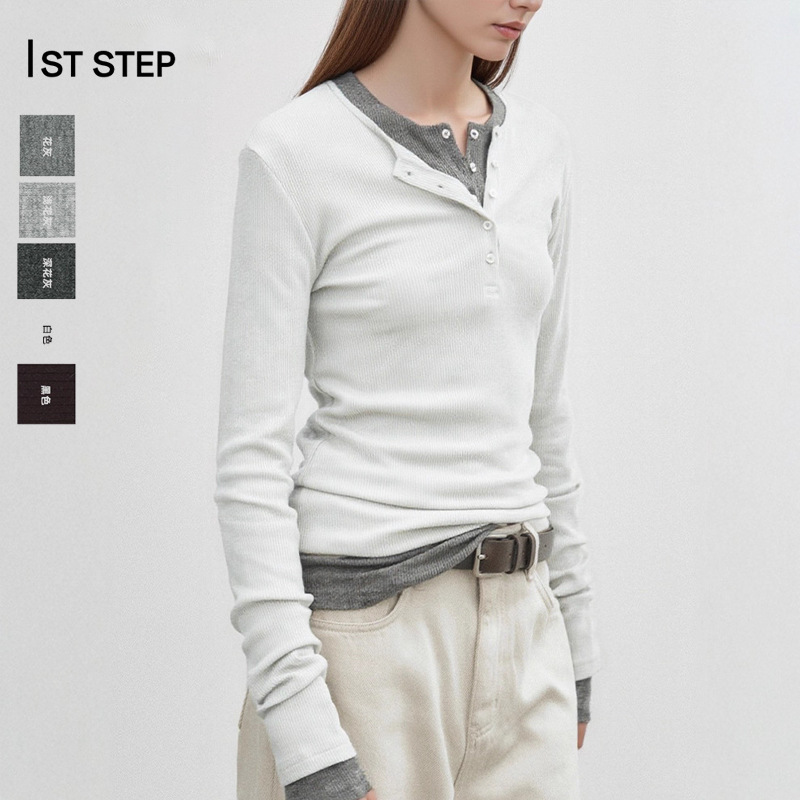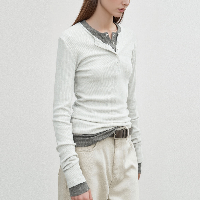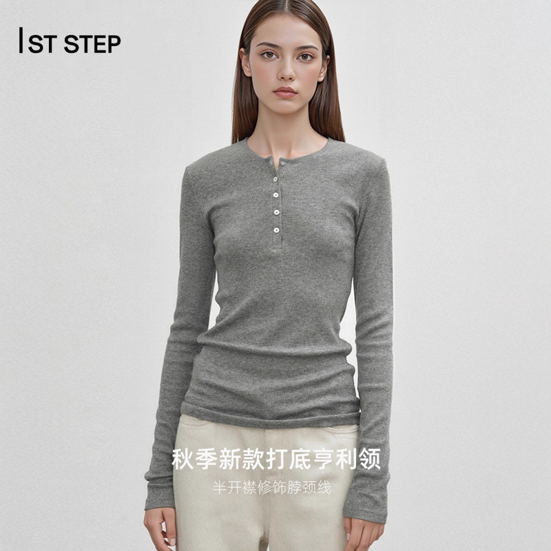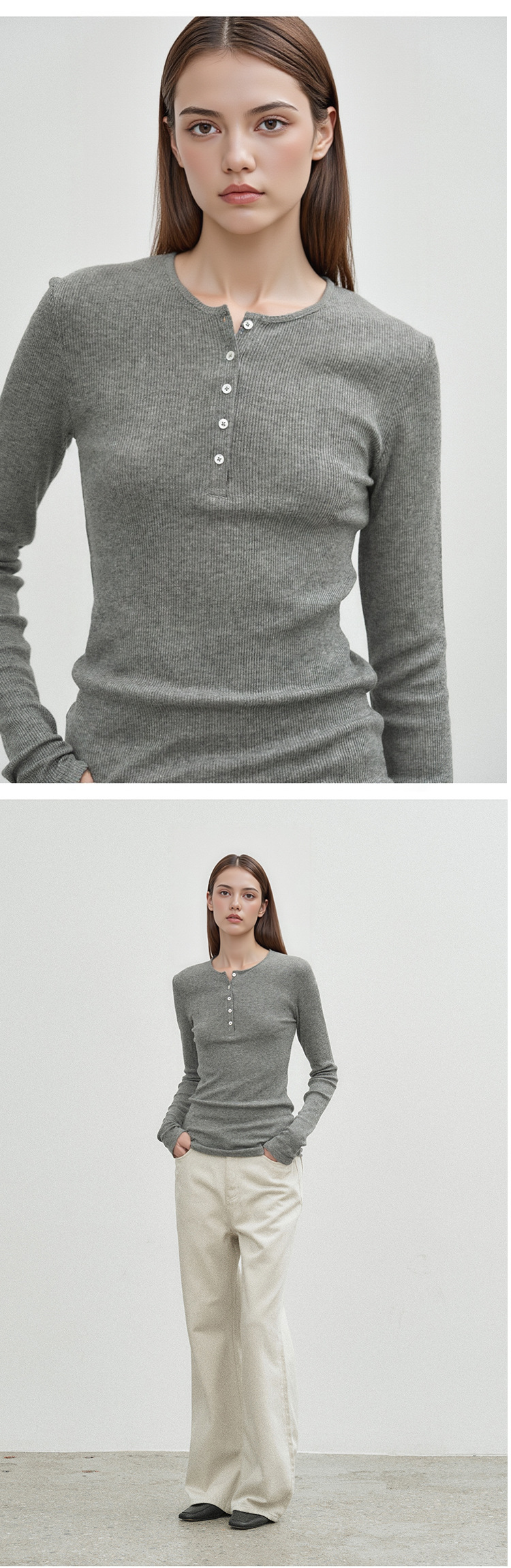 秋冬新品混纺圆领日韩系t恤上衣女柔软显瘦长袖内搭罗纹打底衫T恤