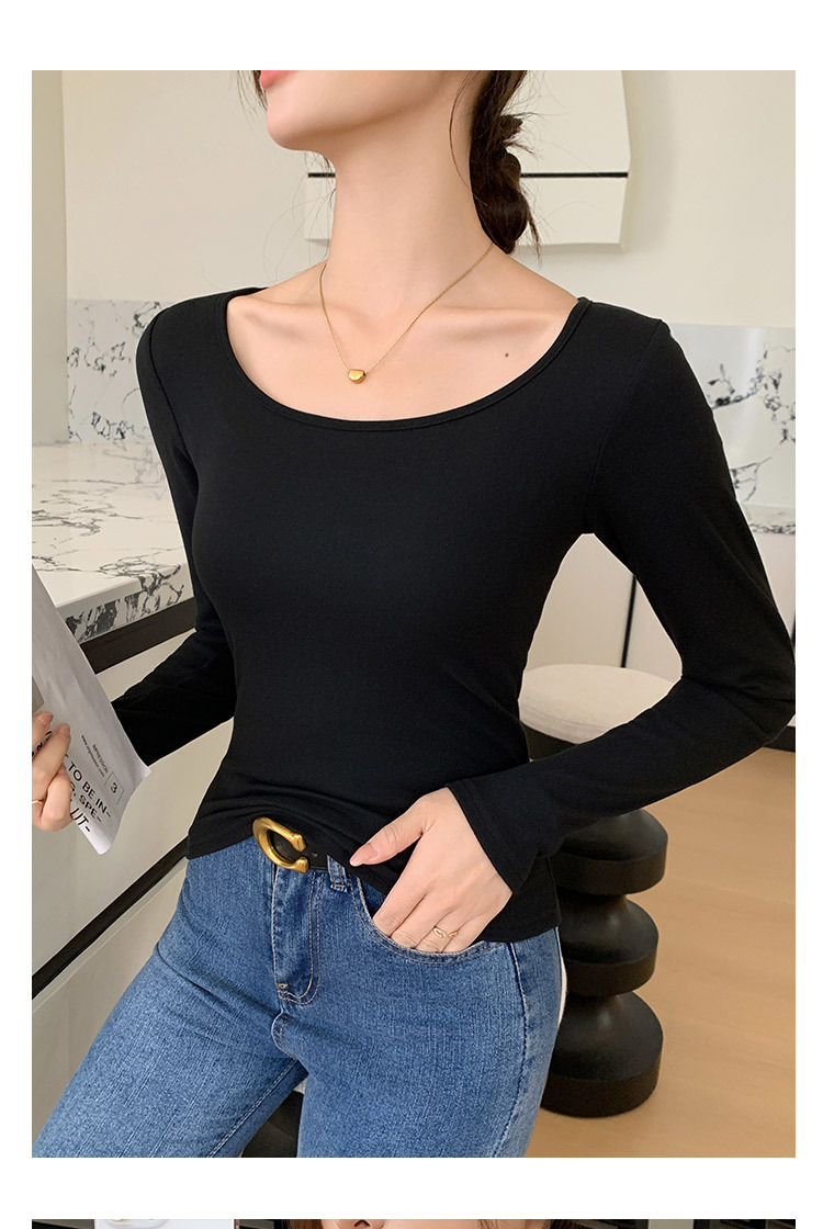 H186带胸垫秋装上衣女打底衫新款内搭长袖修身大圆领女装厂家批发