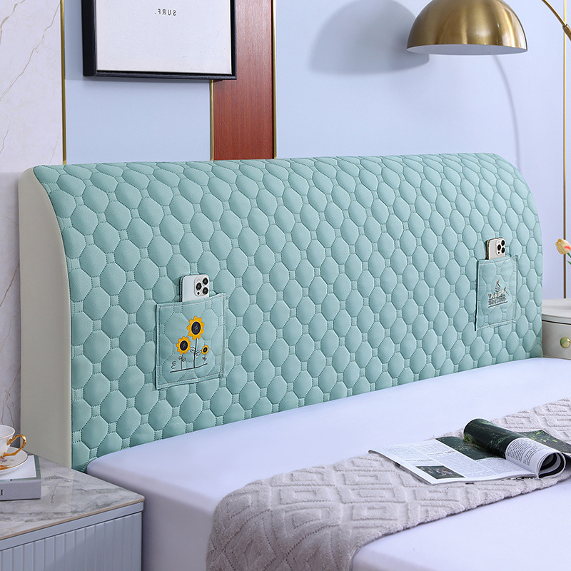 全包加厚床头罩套简约现代软包床头罩套欧式弧形皮床靠背罩防尘罩