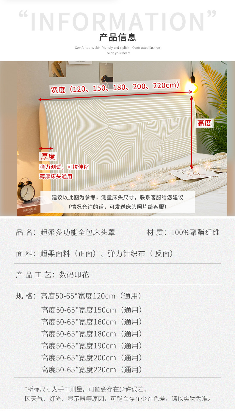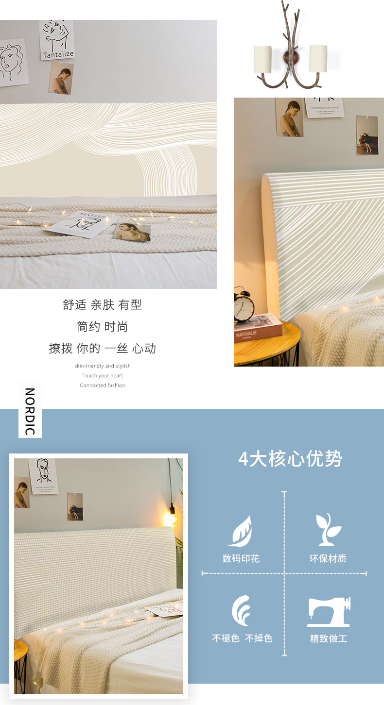 2023新款现代简约防尘床头罩软包通用可拆洗1.5米1.8米万能床头套