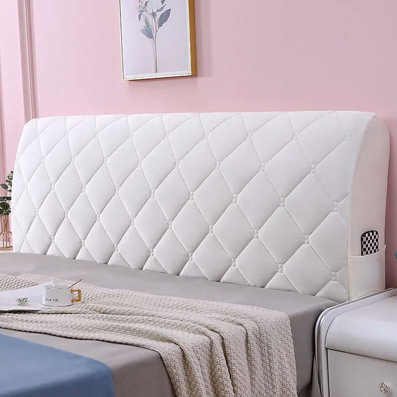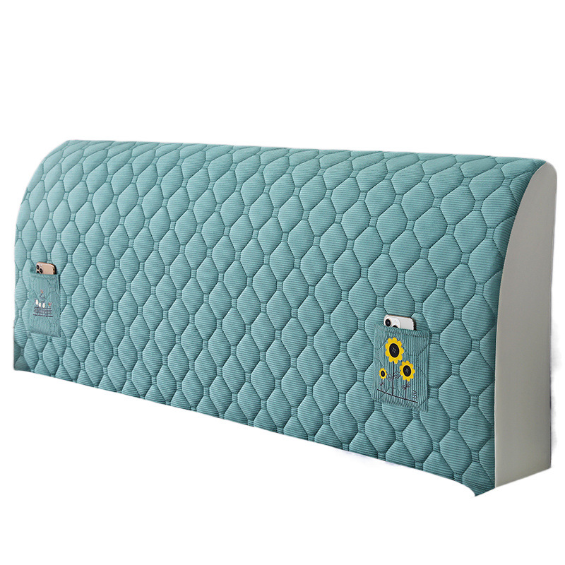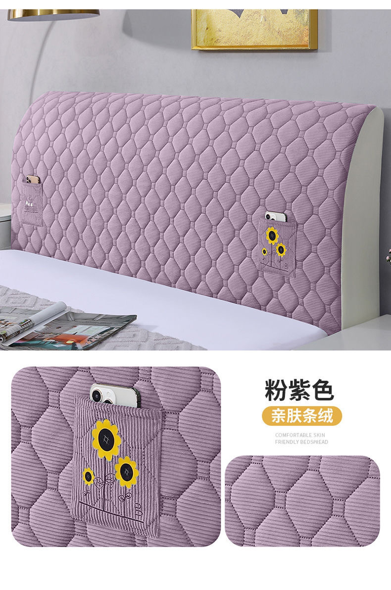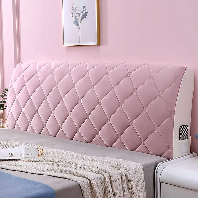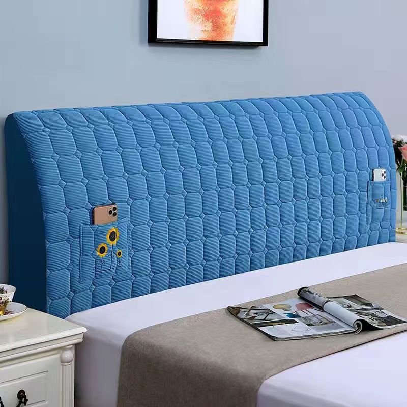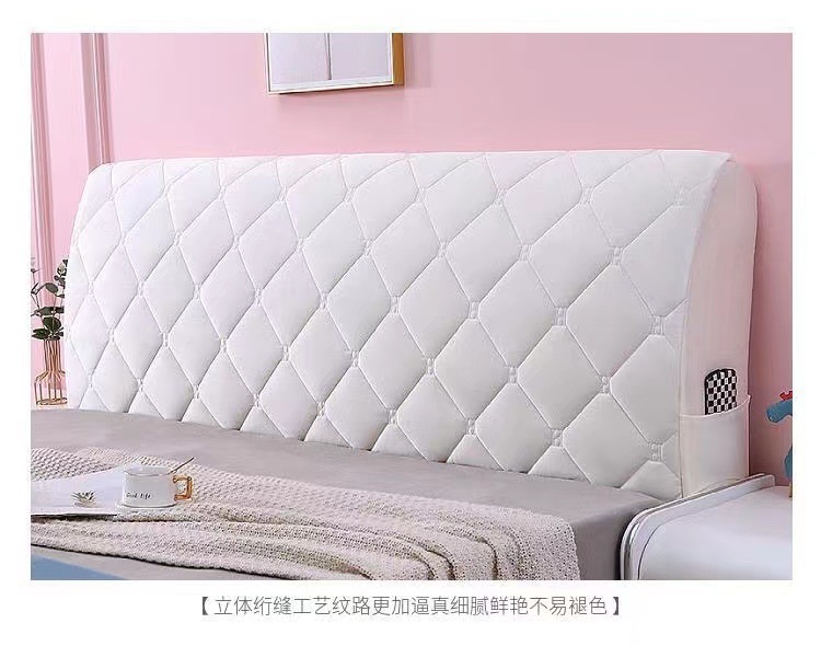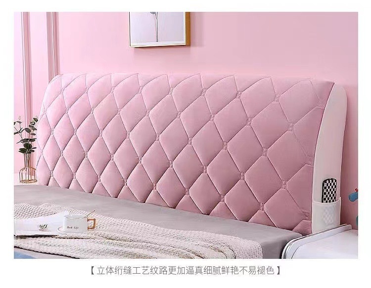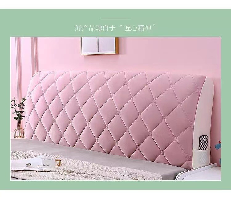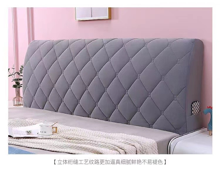 新款绒料加厚夹棉床头靠垫现代简约床头罩纯色绗缝布艺床头套