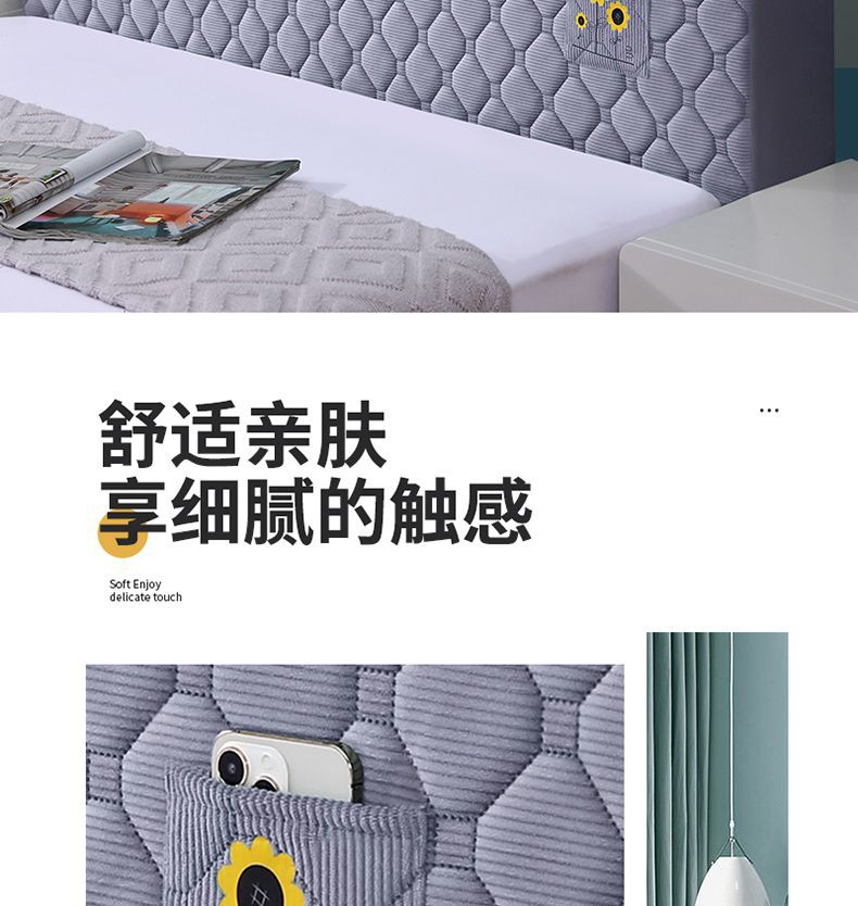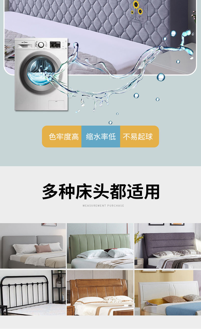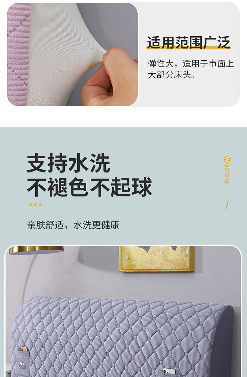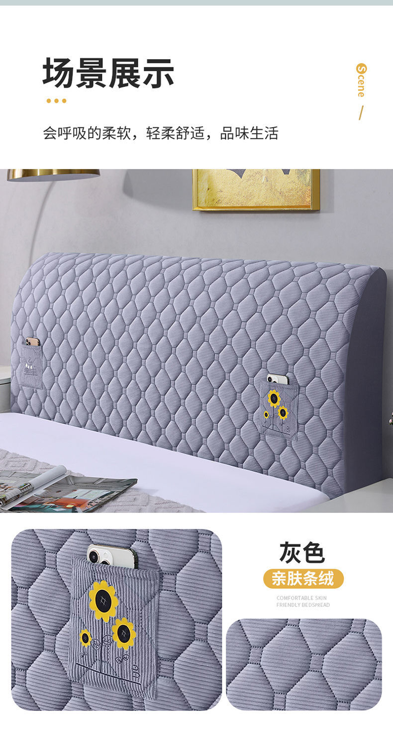 新款绒料加厚夹棉床头罩现代简约防尘罩布艺床头罩纯色绗缝全包罩