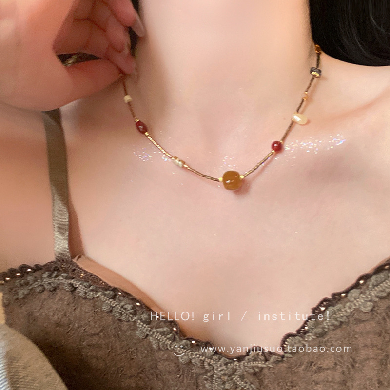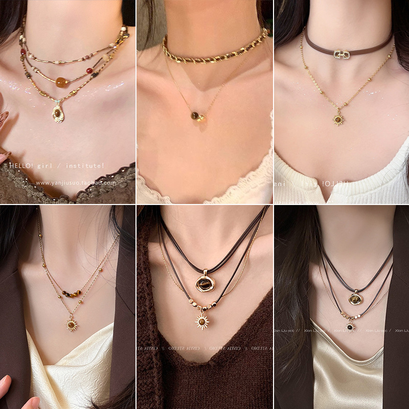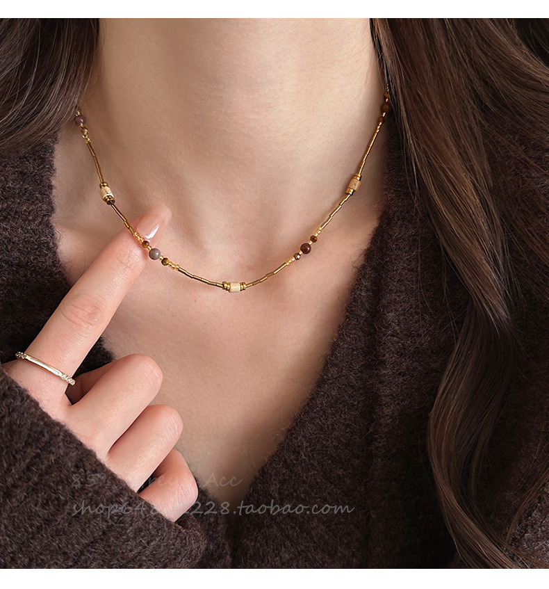 美拉德穿搭虎眼石串珠项链女高端配饰2025新款轻奢小众百搭毛衣链