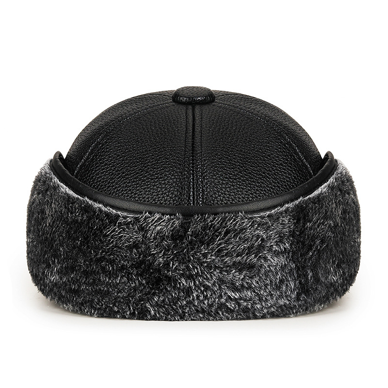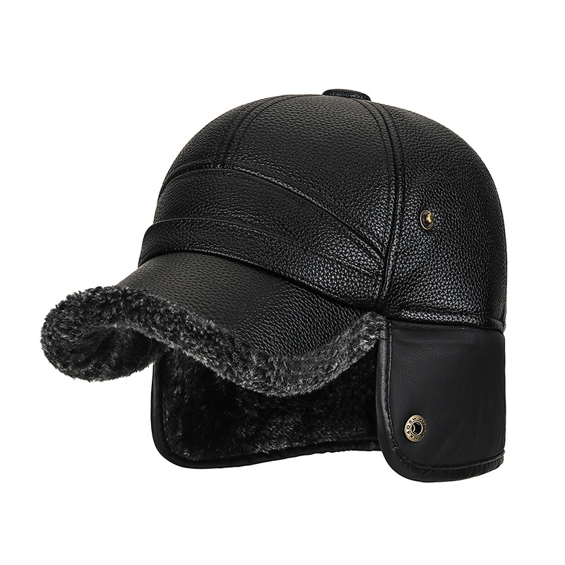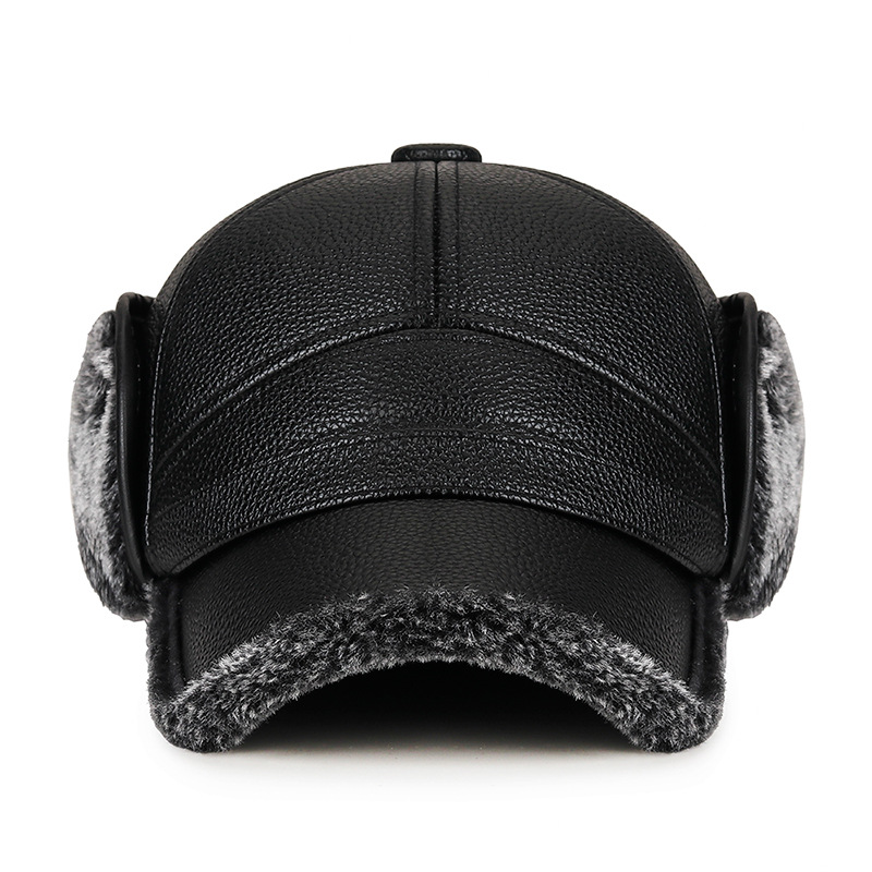 冬季中老年人荔枝纹皮帽男保暖老头护耳雷锋帽爸爸加绒防风棒球帽