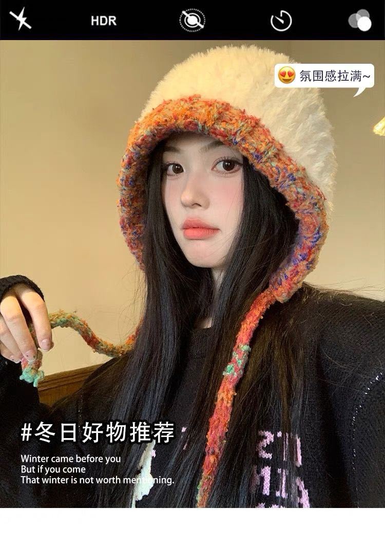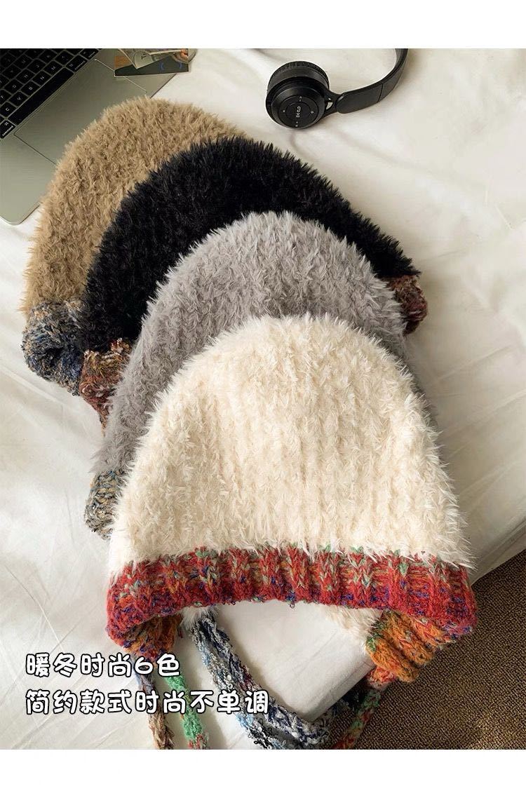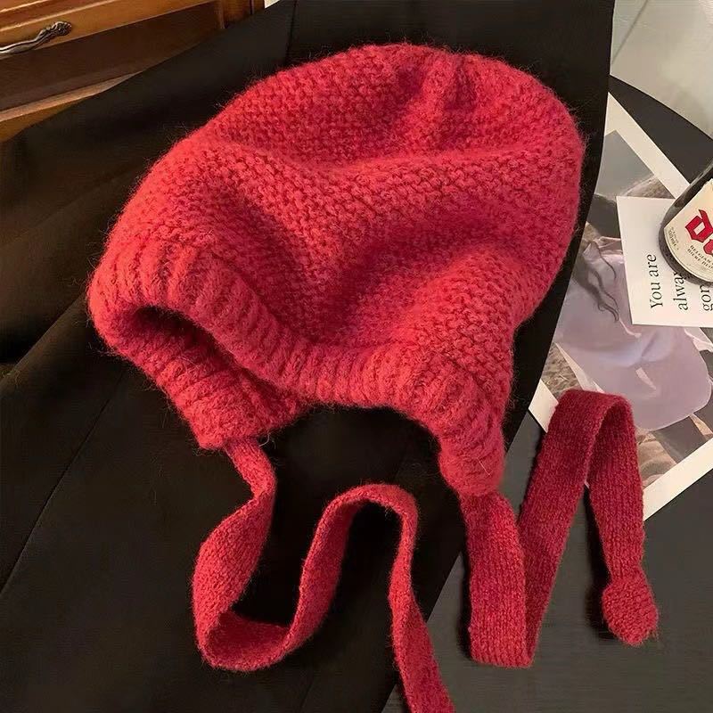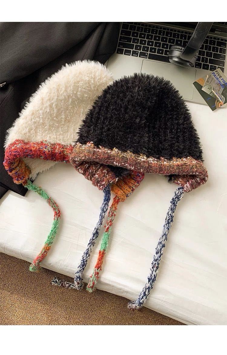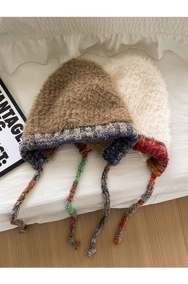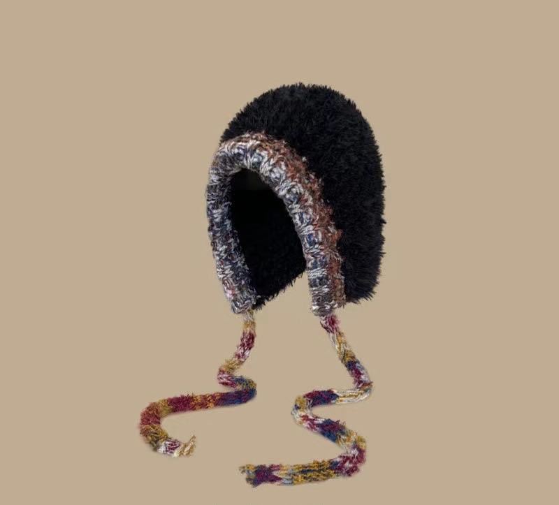 韩版韩式大头围加厚长带子民族风毛线帽防寒保暖护耳帽雷锋帽针织