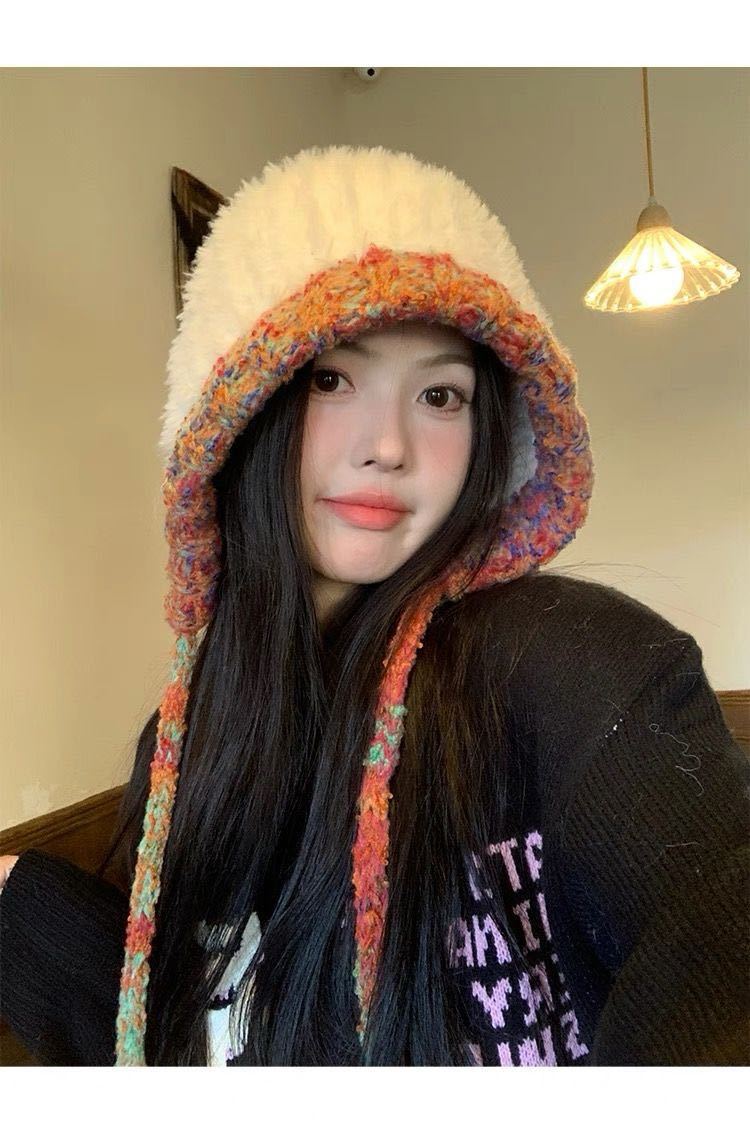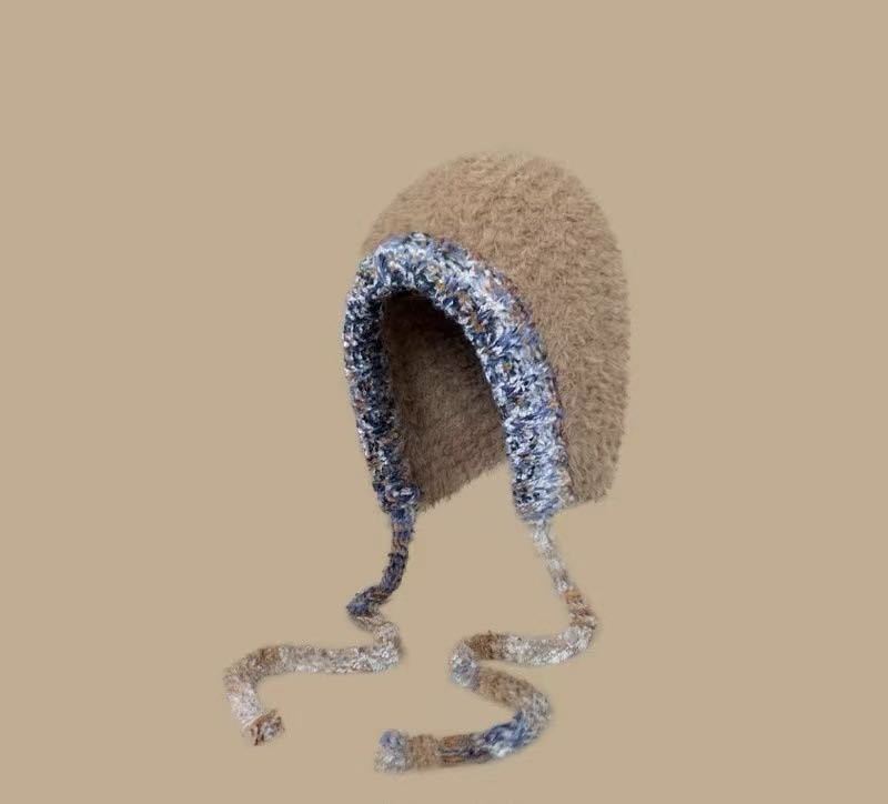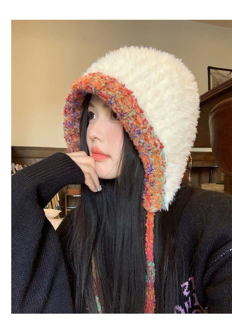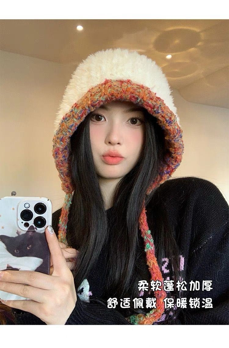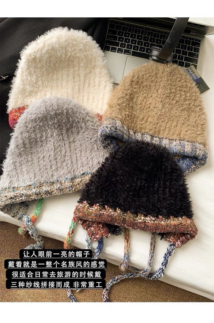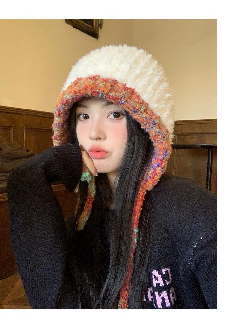 韩版韩式大头围加厚长带子民族风毛线帽防寒保暖护耳帽雷锋帽针织