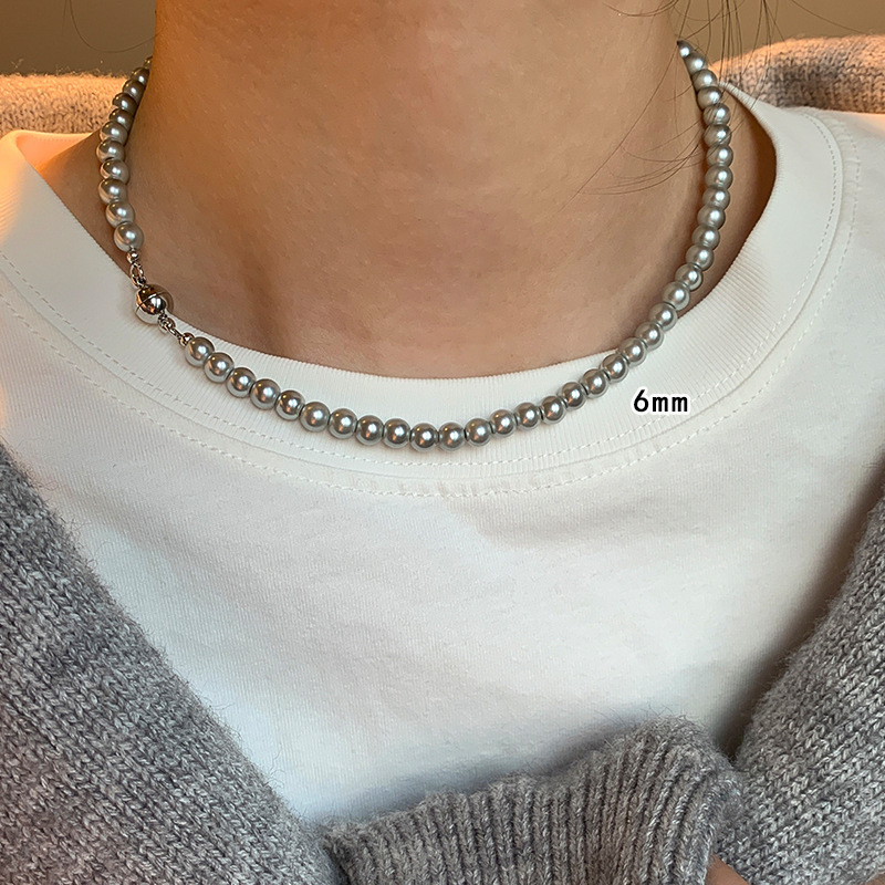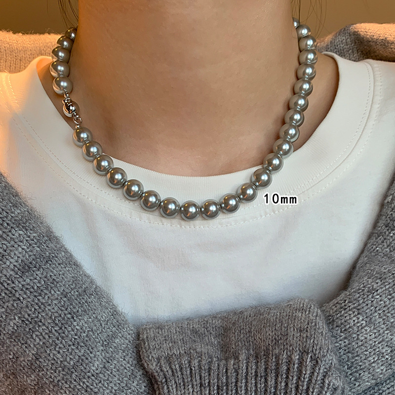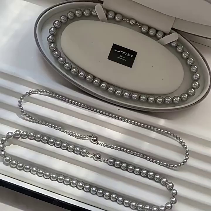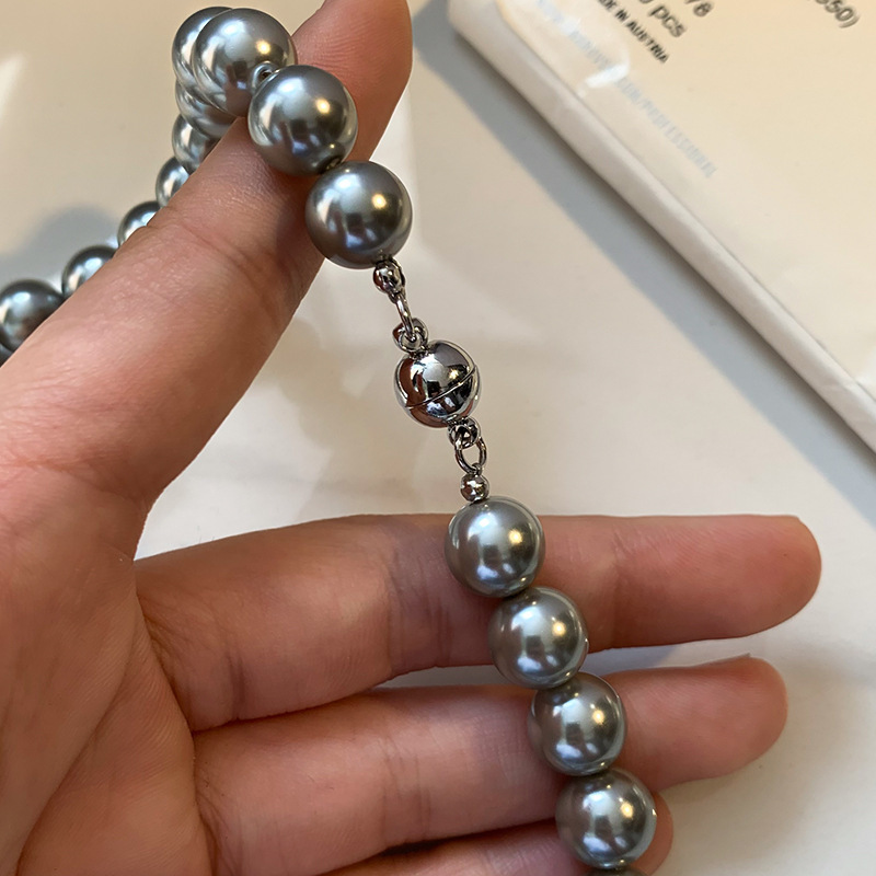 饰品气质高级感毛衣链磁吸扣颈链S家真多麻铂金银灰色珍珠项链女