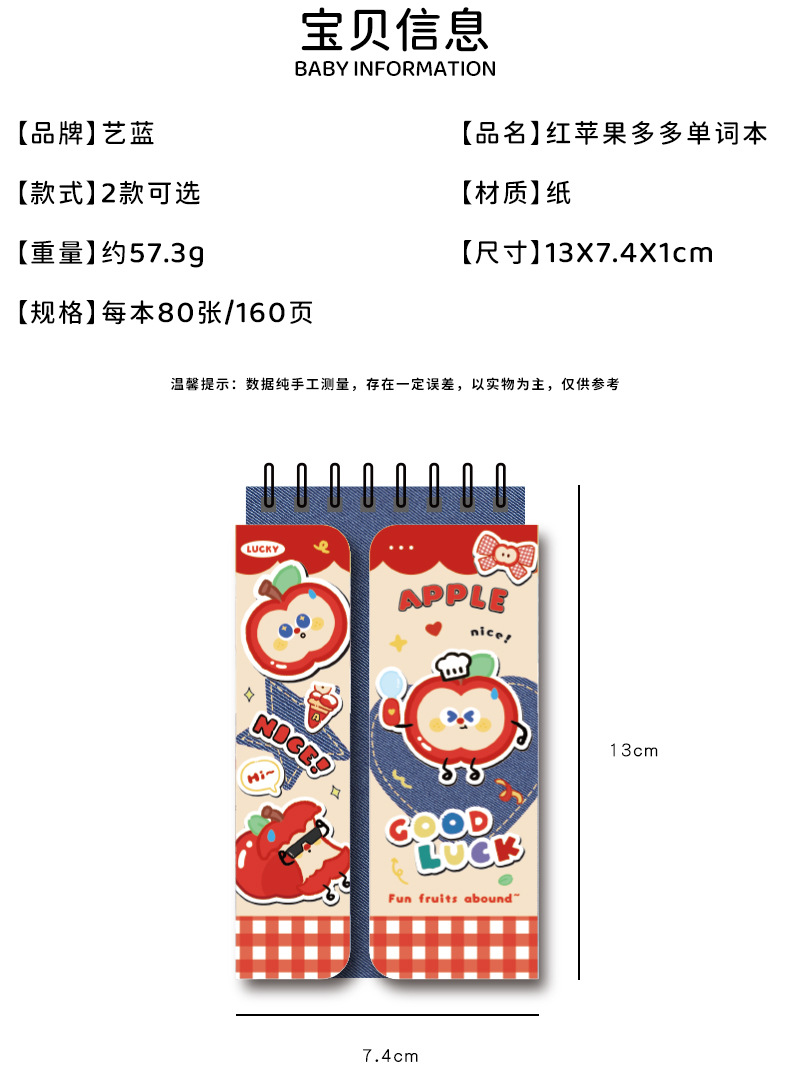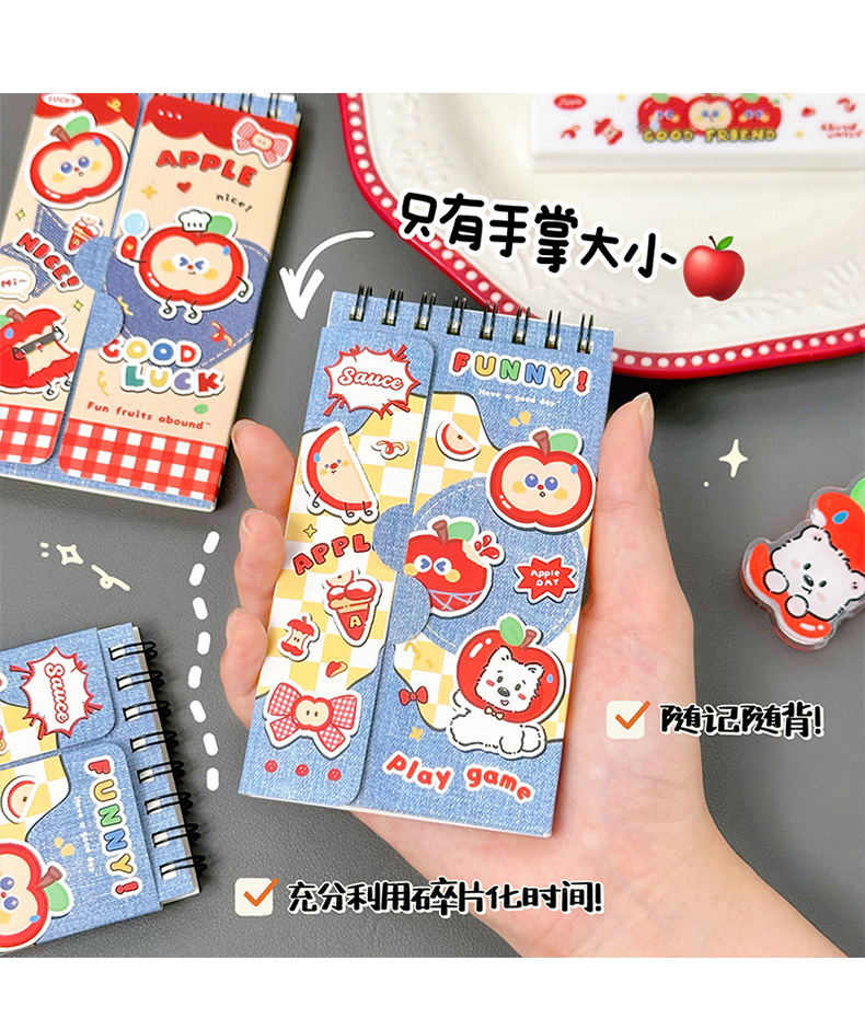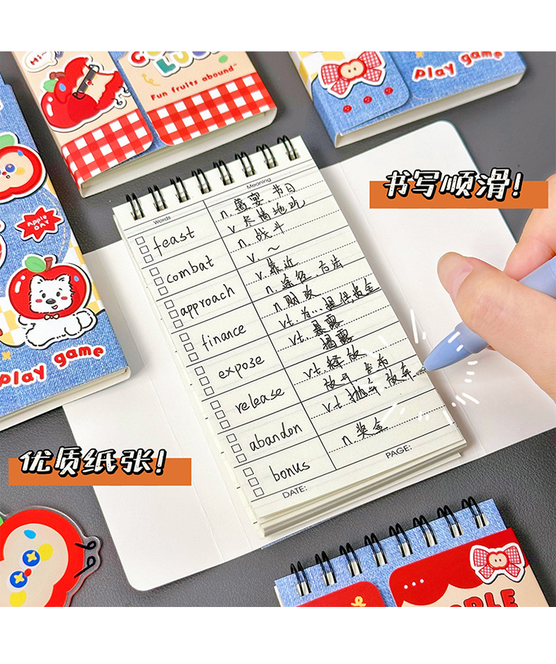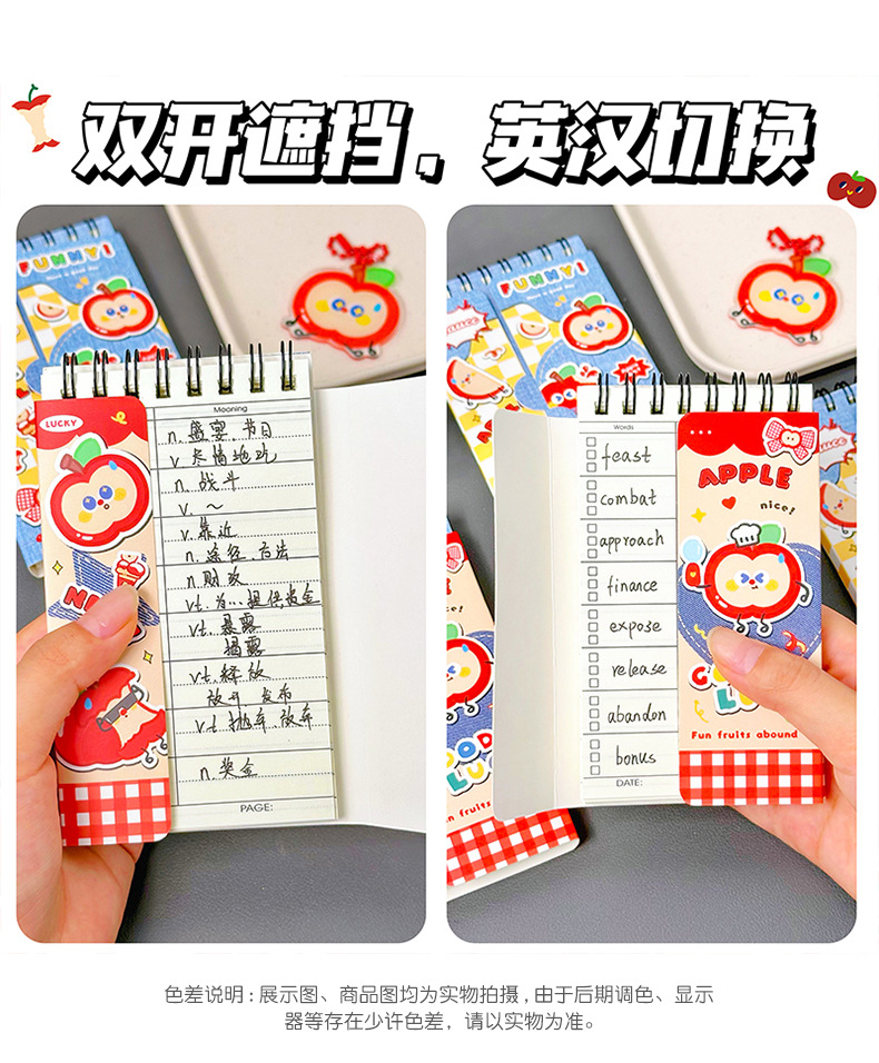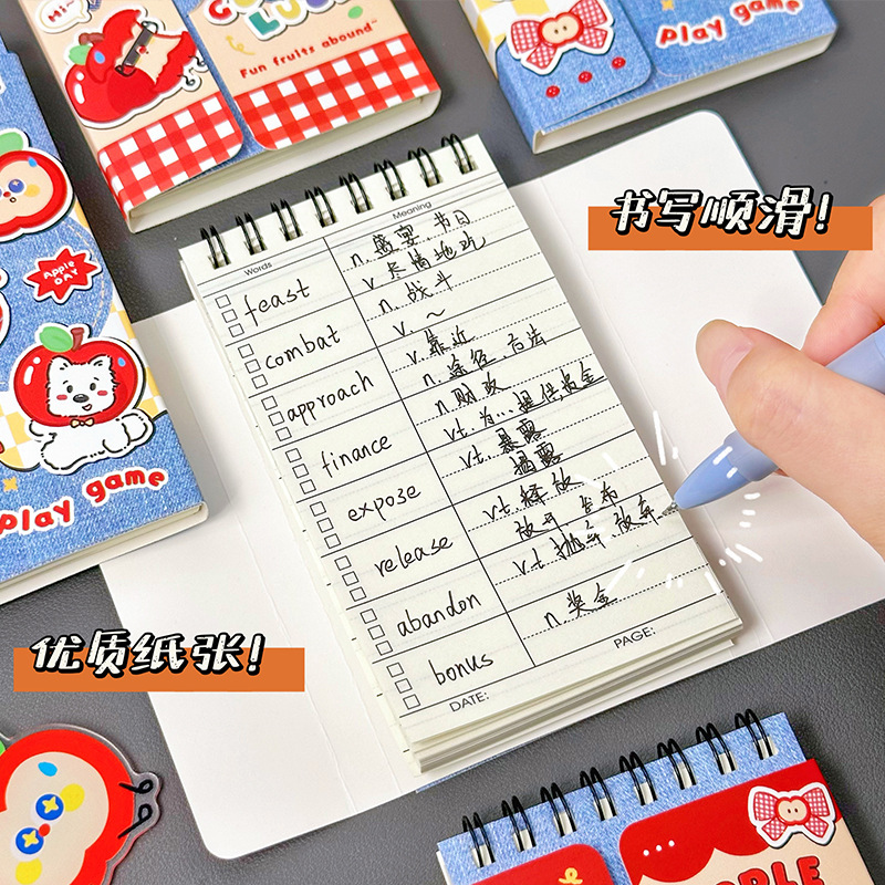 苹果多多单词本卡通中小学生背单词记忆可爱可遮挡口袋线圈笔记本