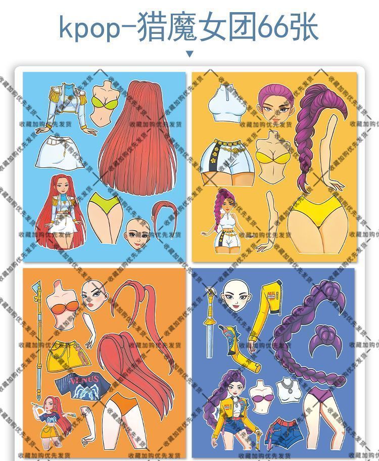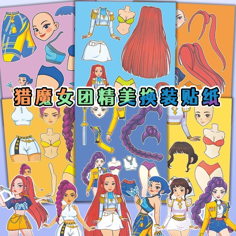 kpop猎魔女团换装贴纸卡通儿童手工趣味免裁剪diy贴画