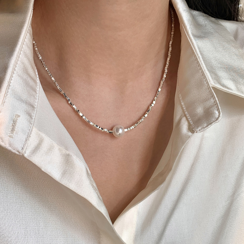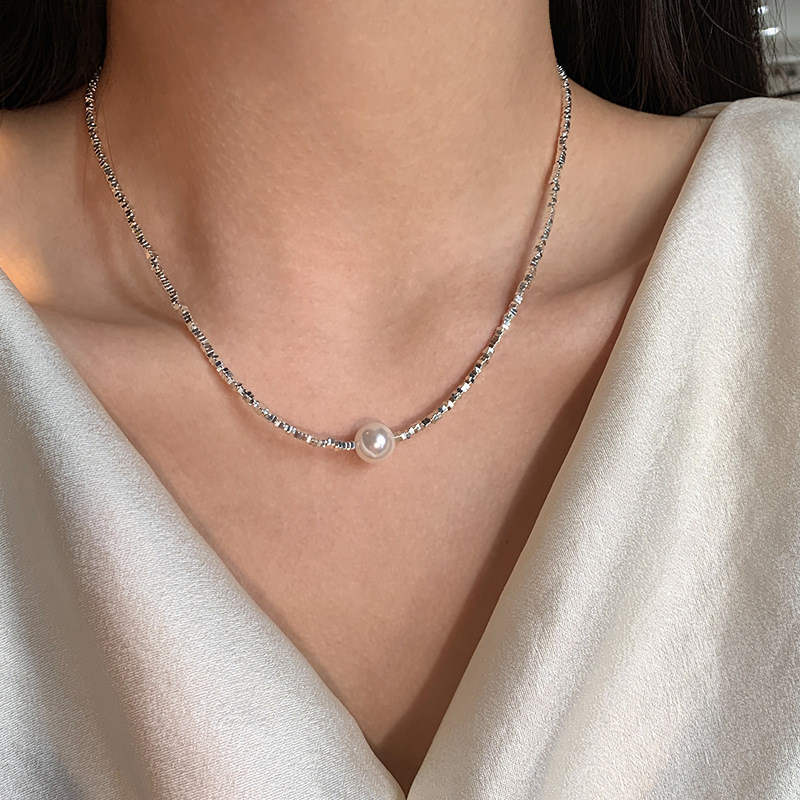 饰品项链高端轻奢小众高级感大气颈链碎银子珍珠毛衣链项链配饰女